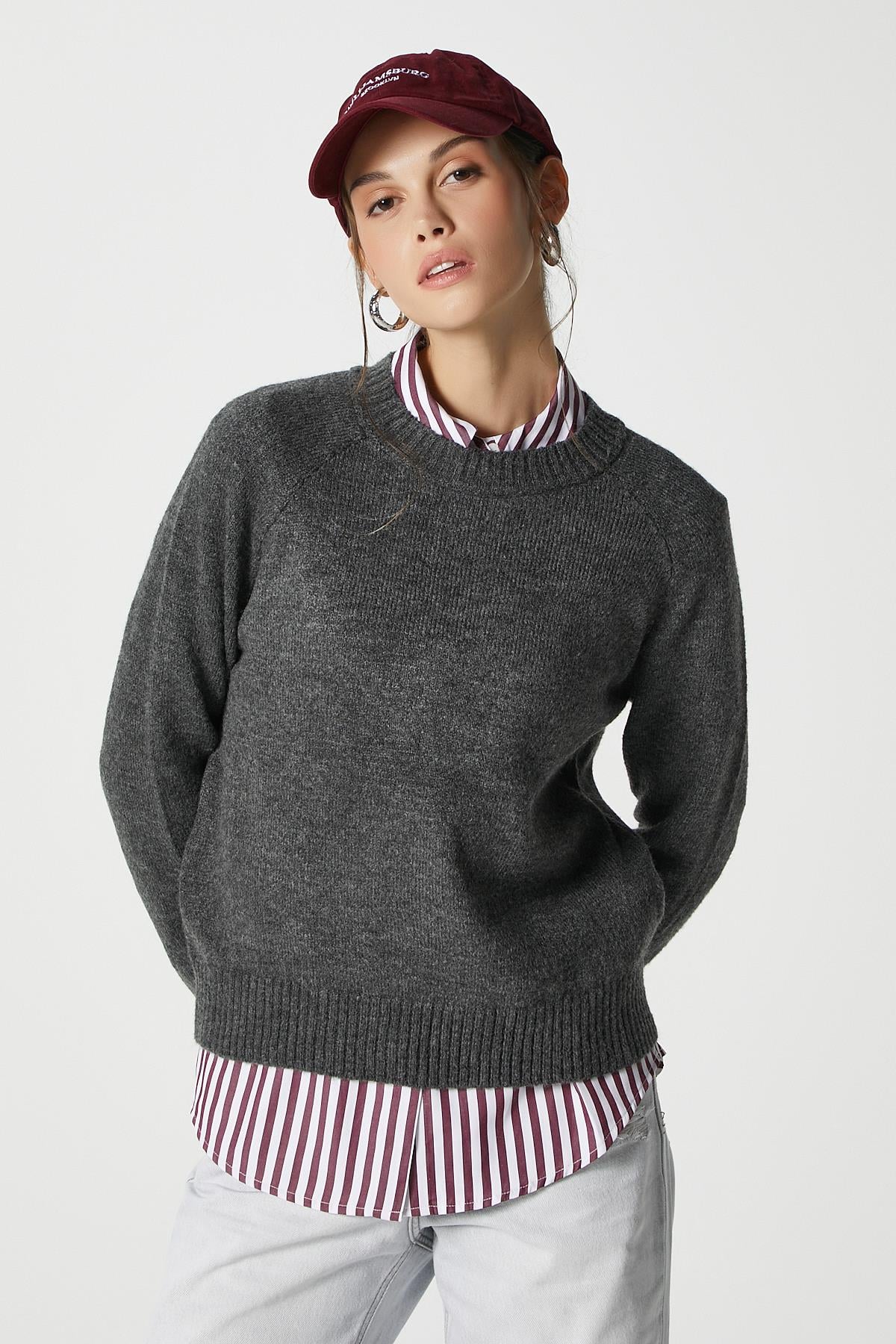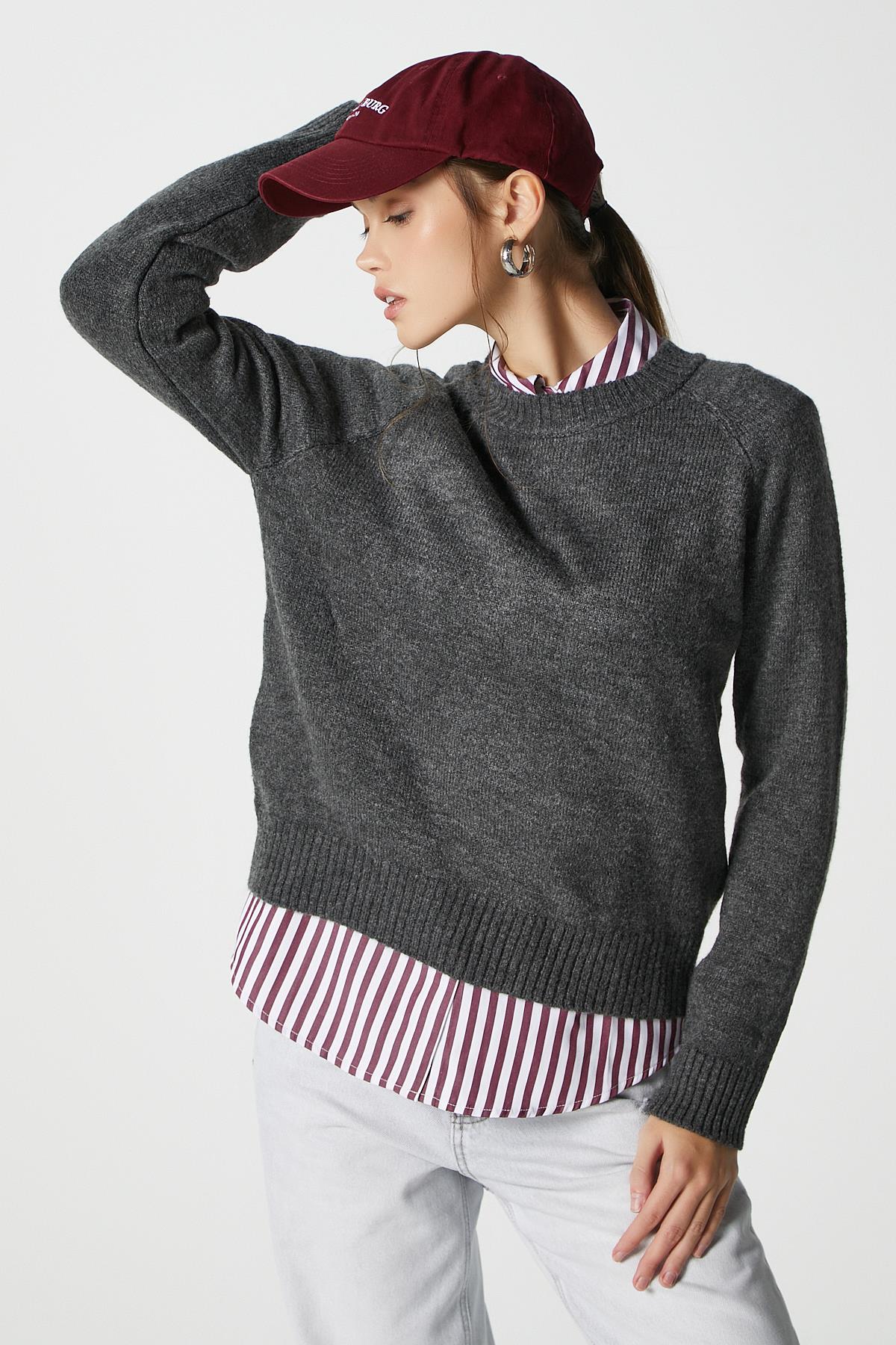 Mushy Antrasit Basic Triko Kazak,