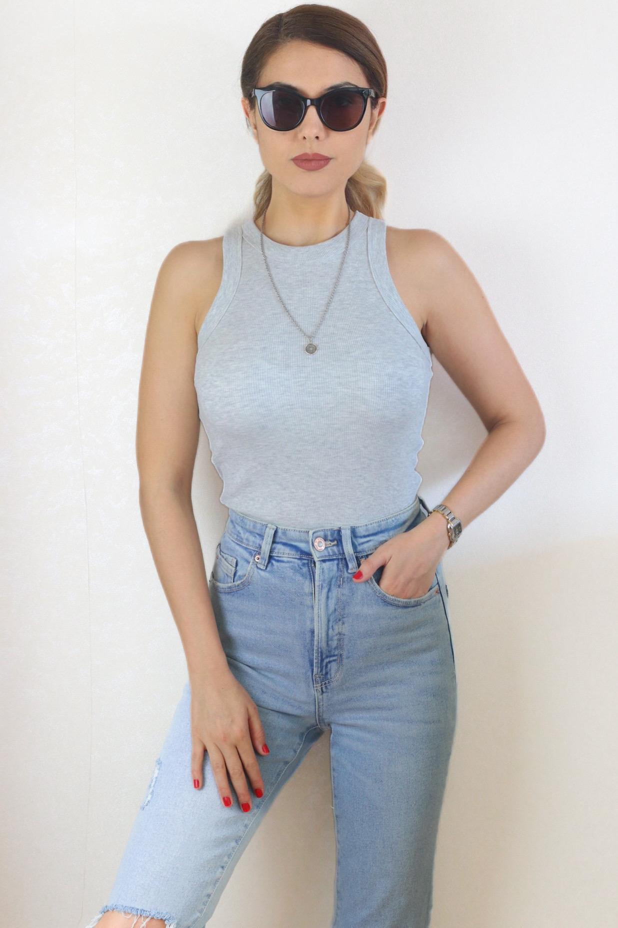 Kadın 2’li Premium Pamuklu Beyaz, Gri Atlet