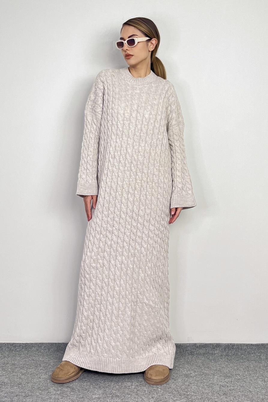 Kadın Ashley Taş Saç Örgülü Triko Uzun Elbise