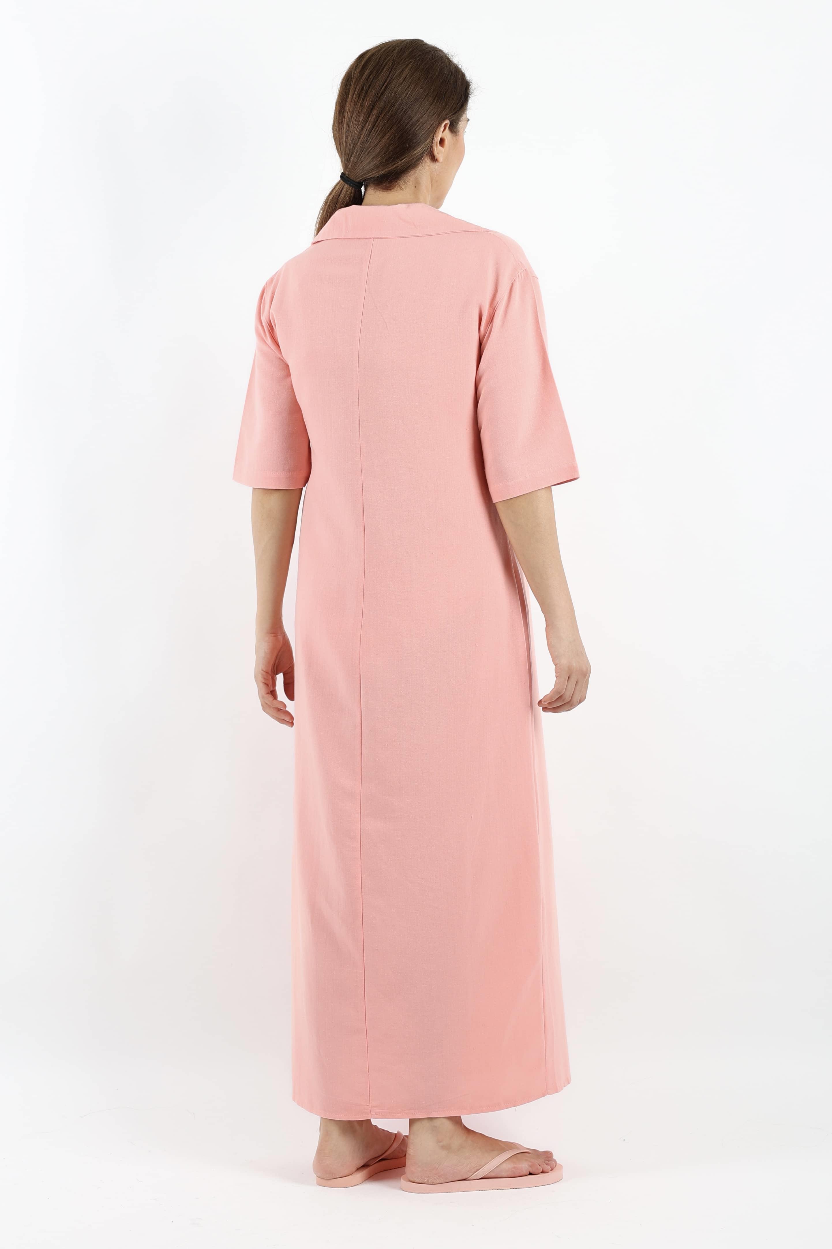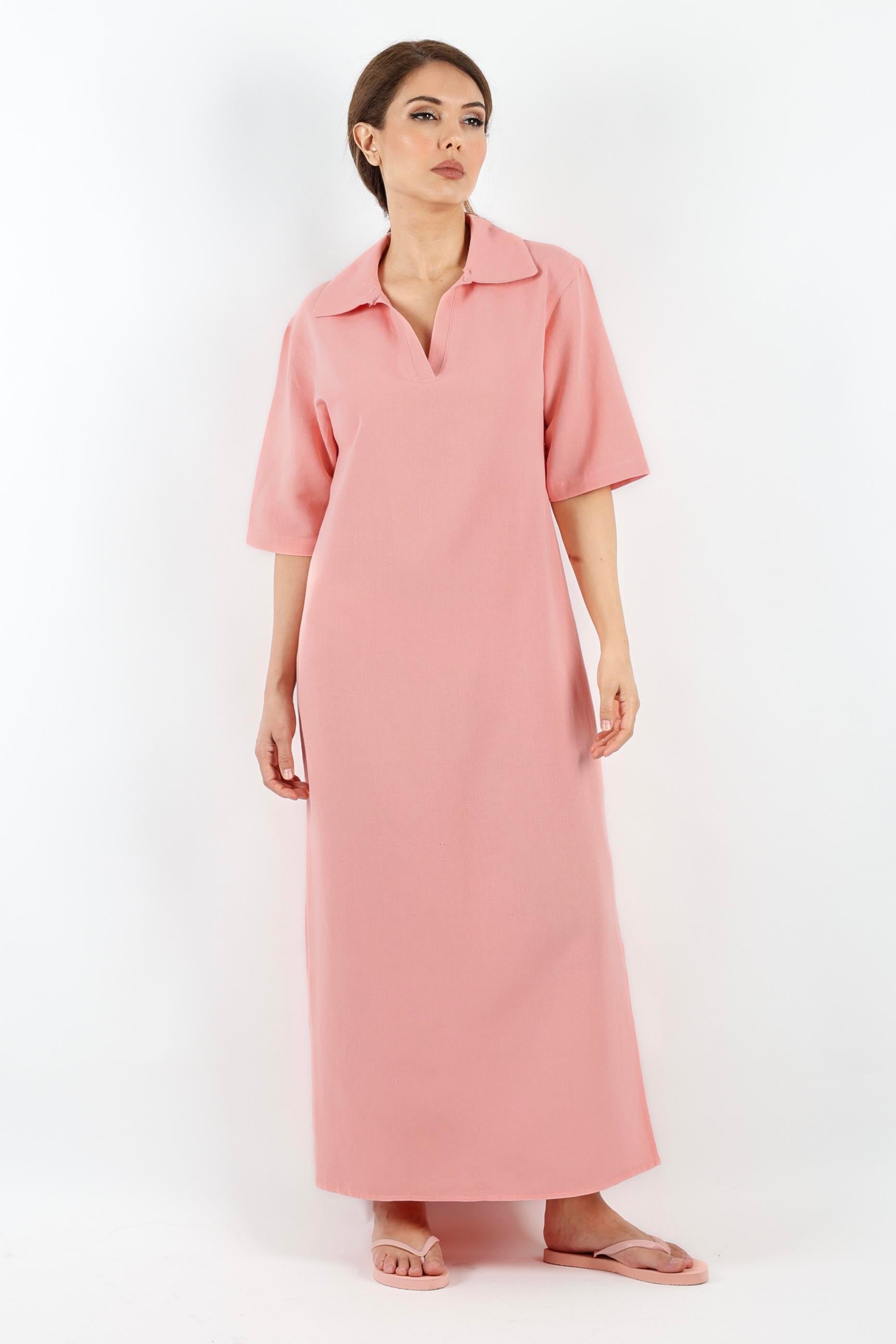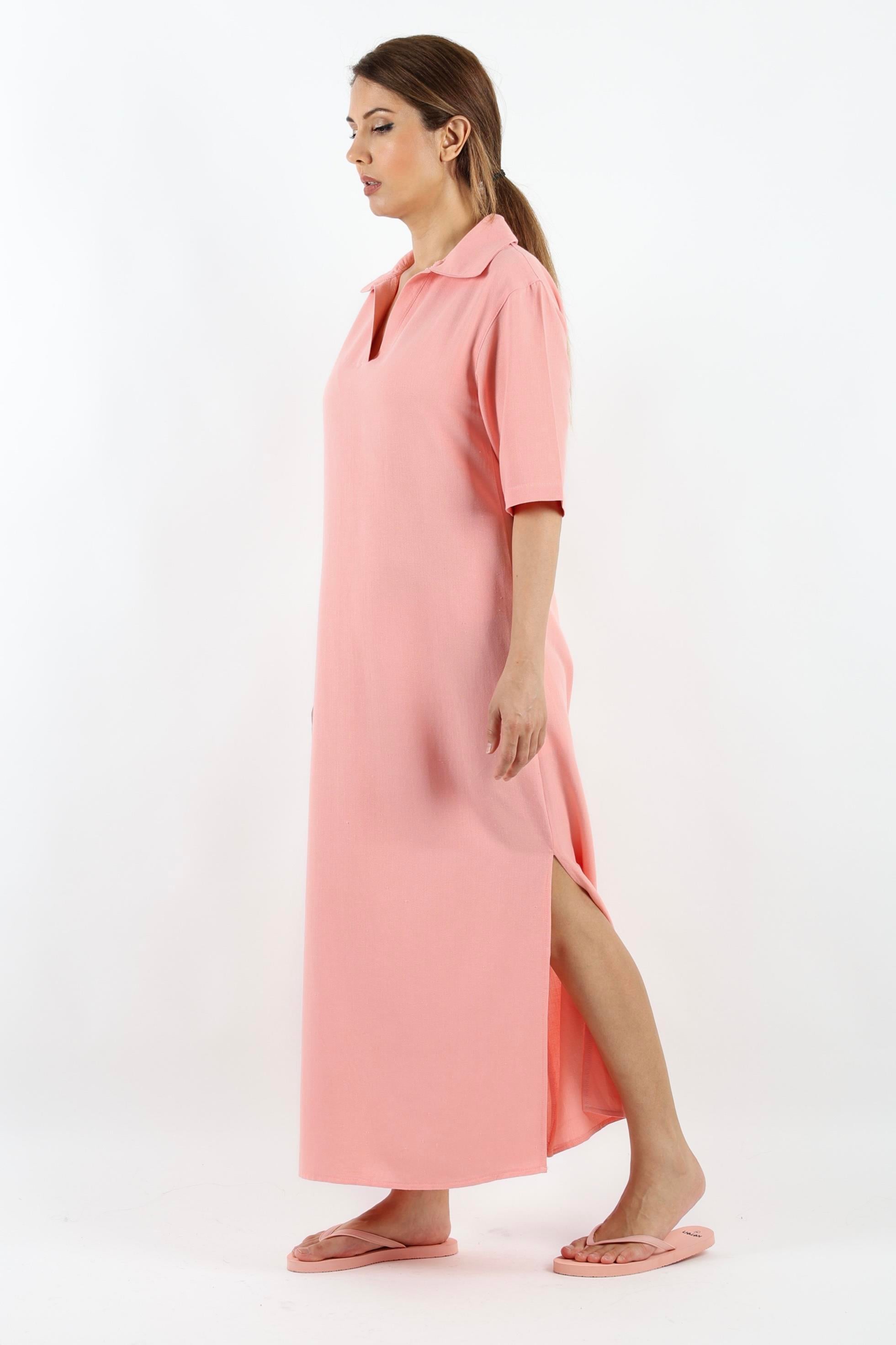Kadın Basic Somon Polo Yaka Yırtmaçlı Elbise