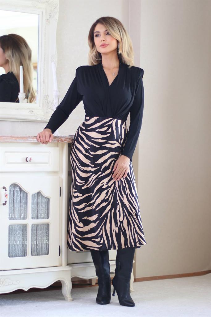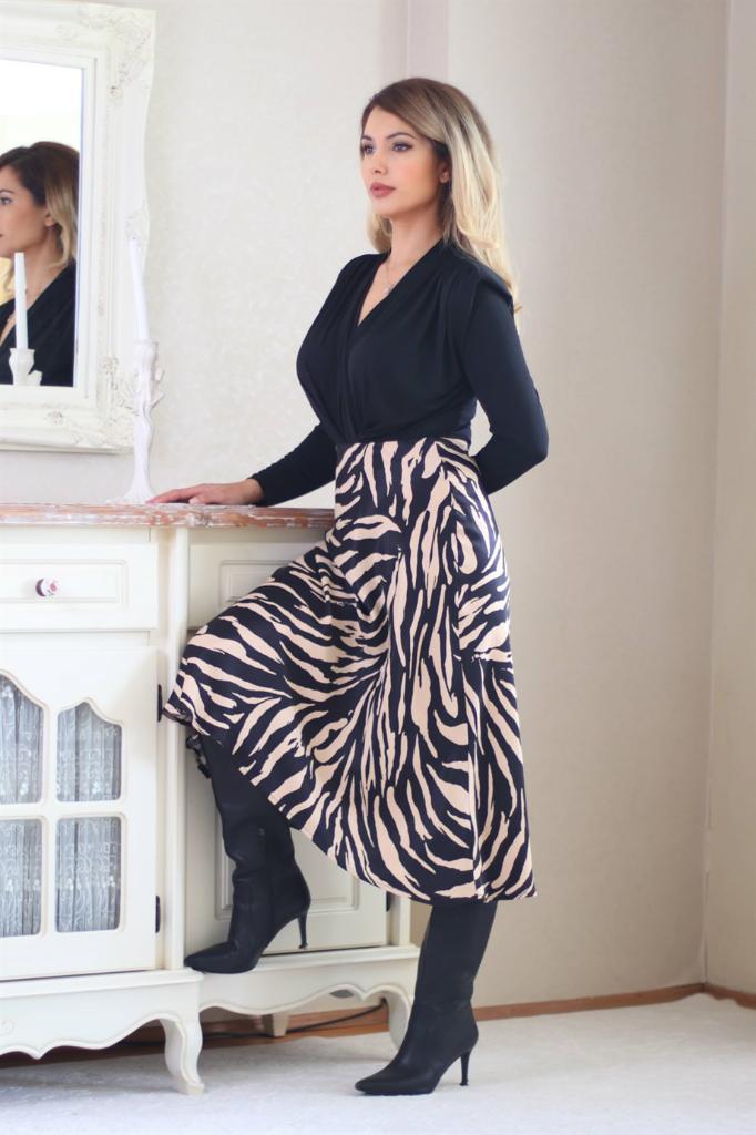 Kadın Leopar Desenli Midi Boy Saten Etek