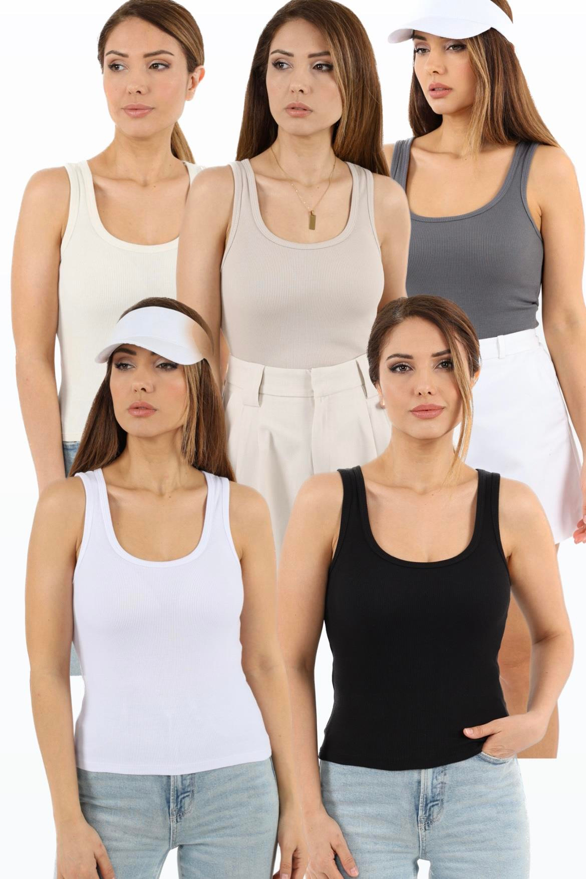 Kadın Cotton Premium 5’li Set Bej, Krem, Beyaz, Antrasit, Siyah Pamuklu Basic Fitilli Atlet