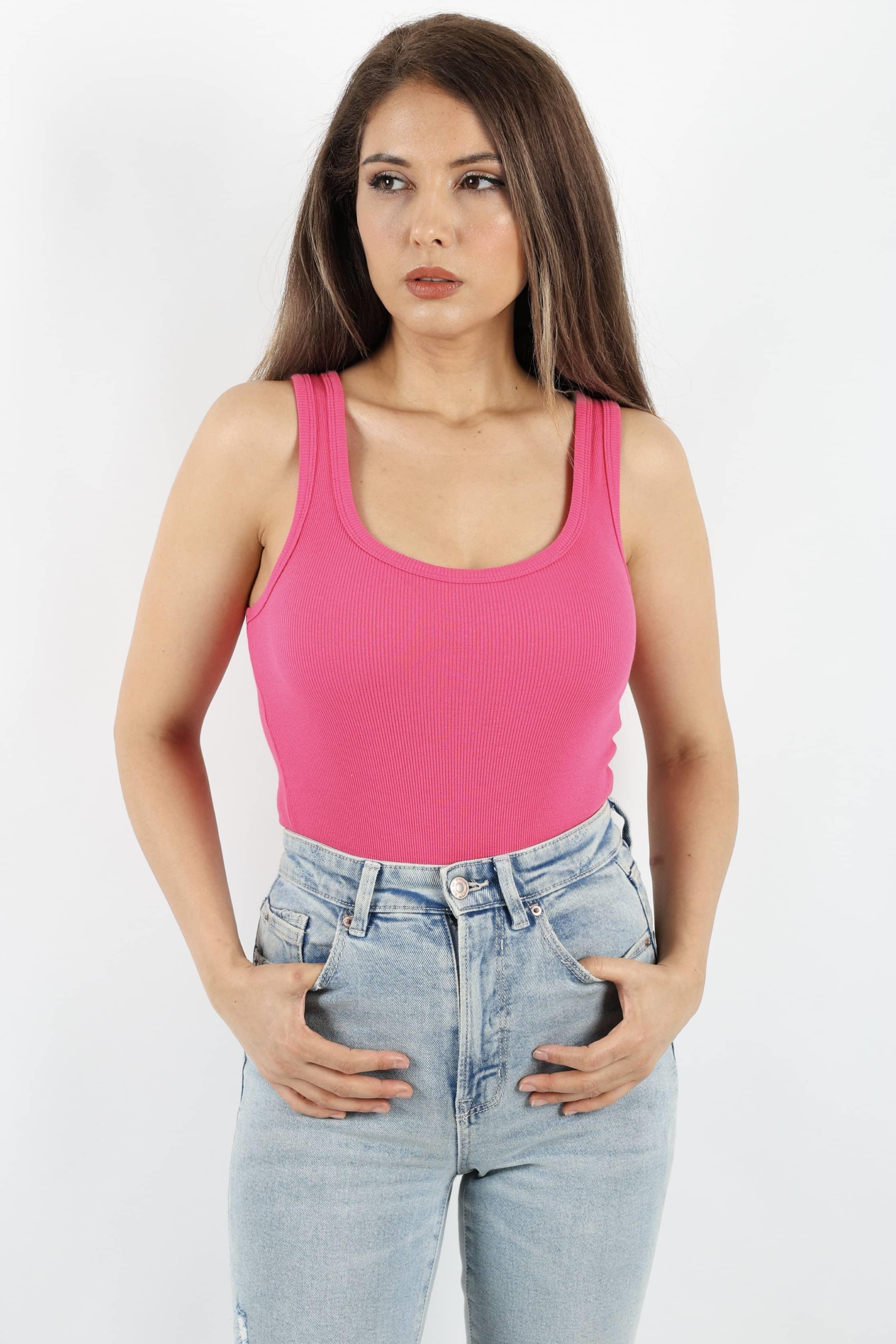 Kadın Cotton Premium Doku Fuşya Pamuklu Basic Fitilli Atlet