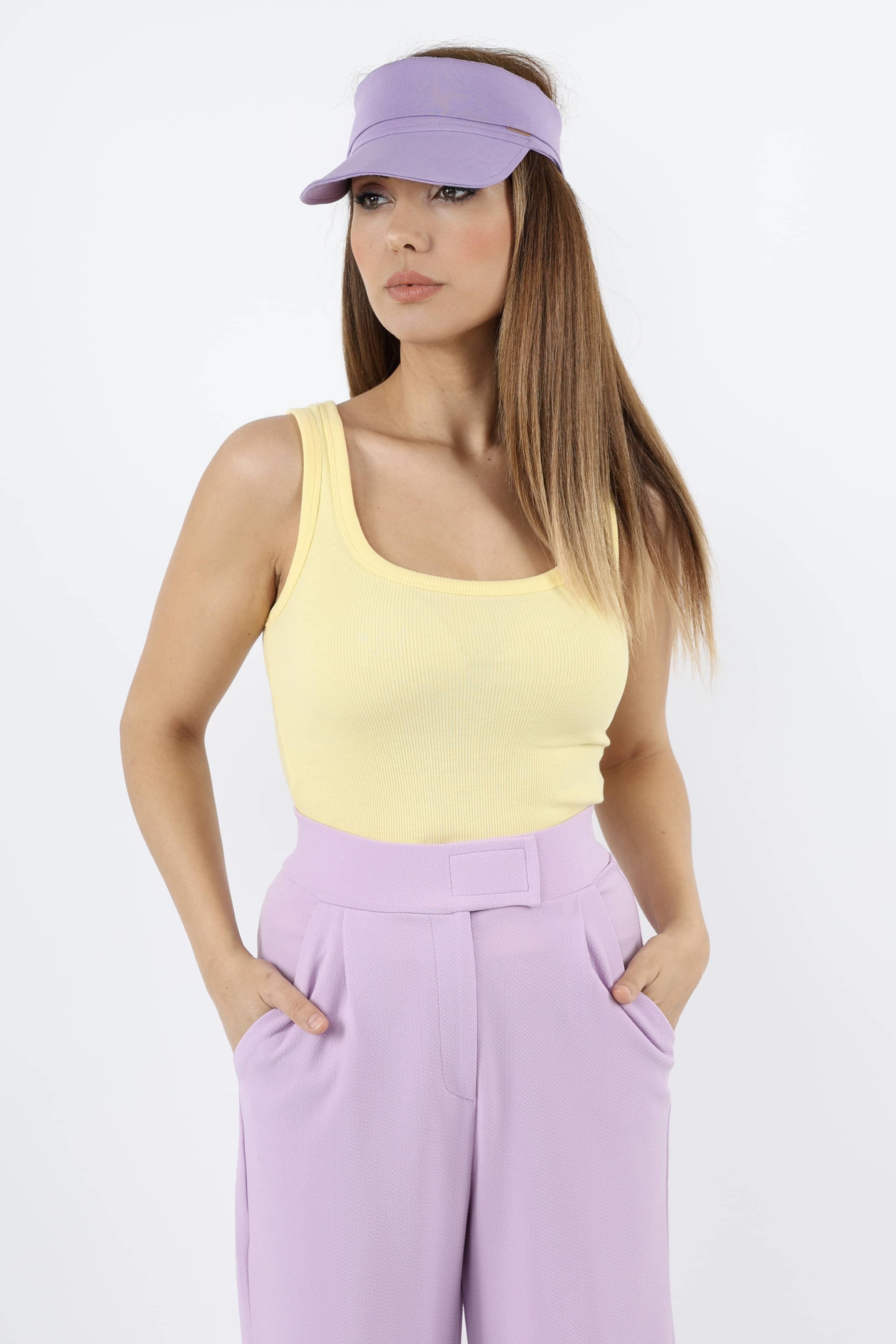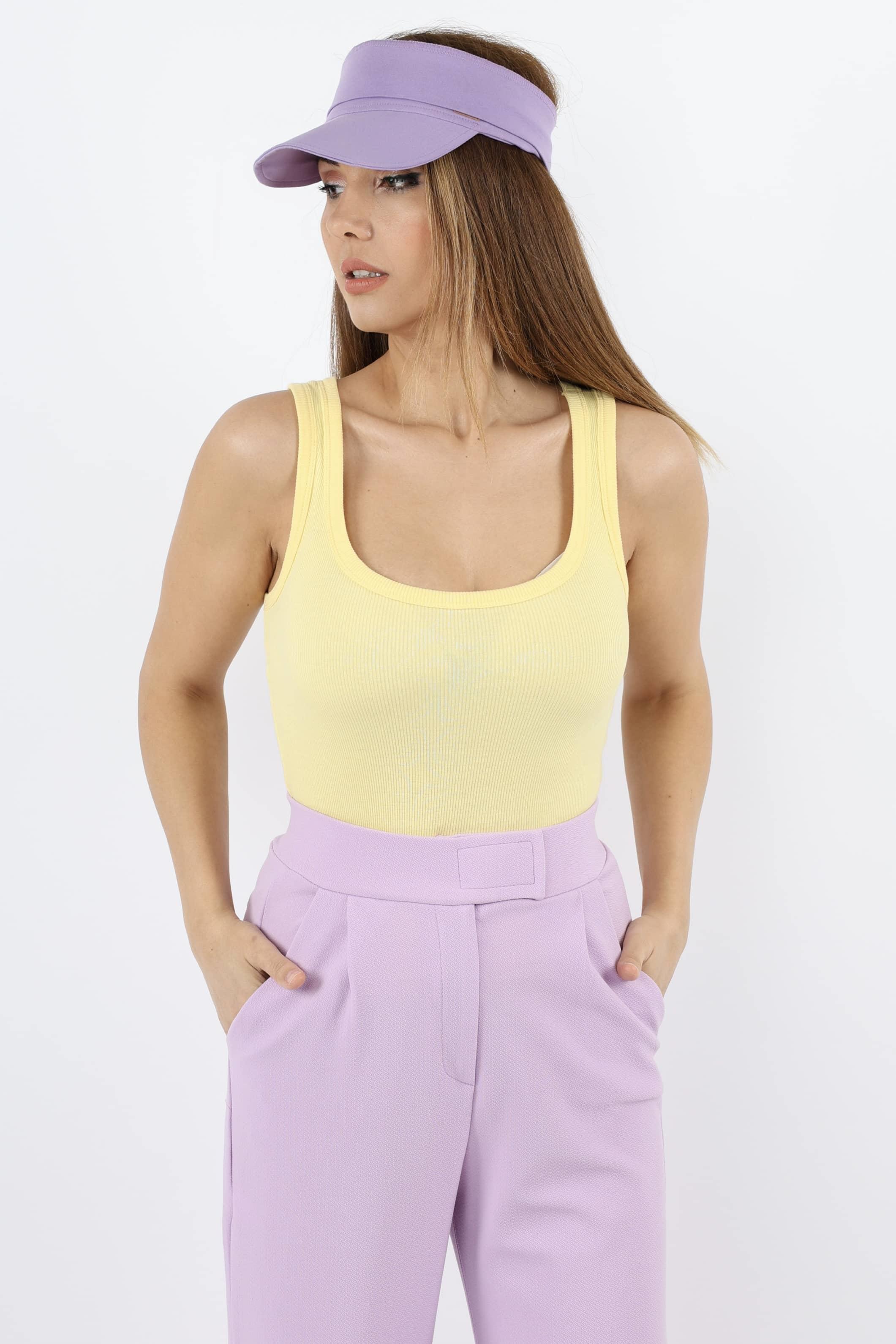 Kadın Cotton Premium Doku Sarı Pamuklu Basic Fitilli Atlet