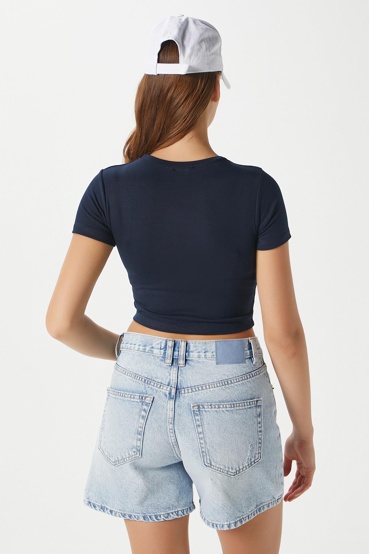 - Yumuşak dokusuyla gün boyu konfor sunan crop bluz, rahatlığı ve şıklığı bir arada yaşamanızı sağlar.