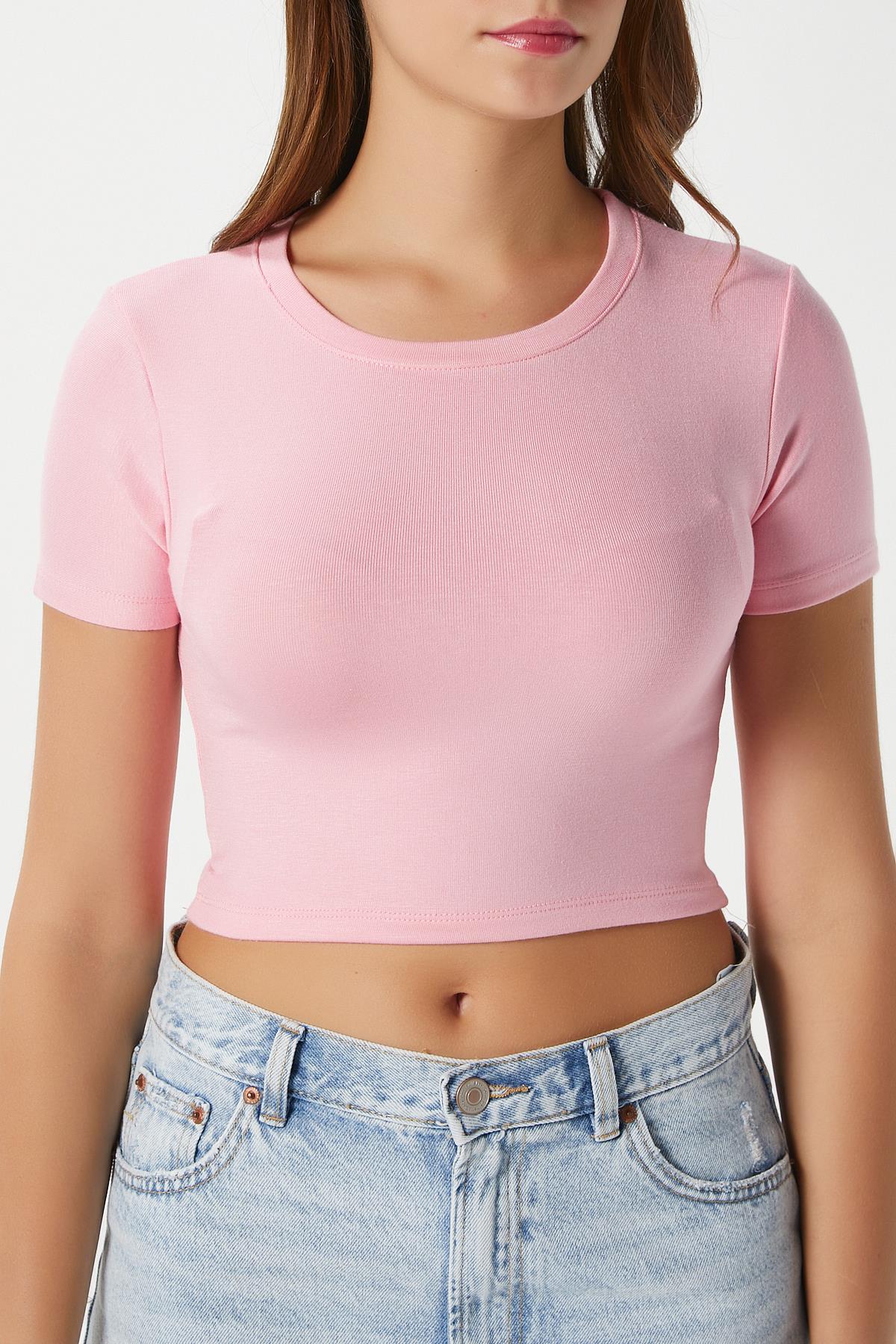 Kadın Deal Lux Touch Yumuşak Doku Crop Pembe Bluz