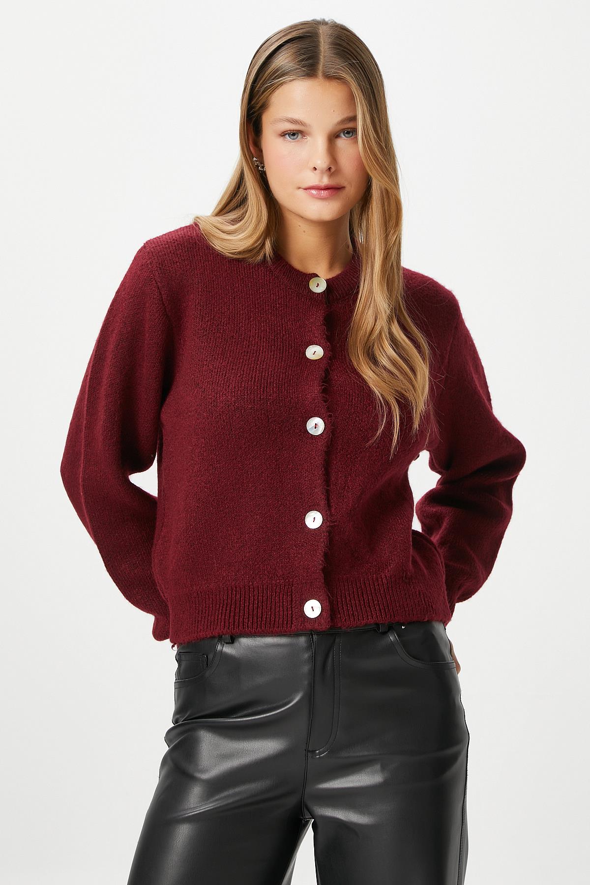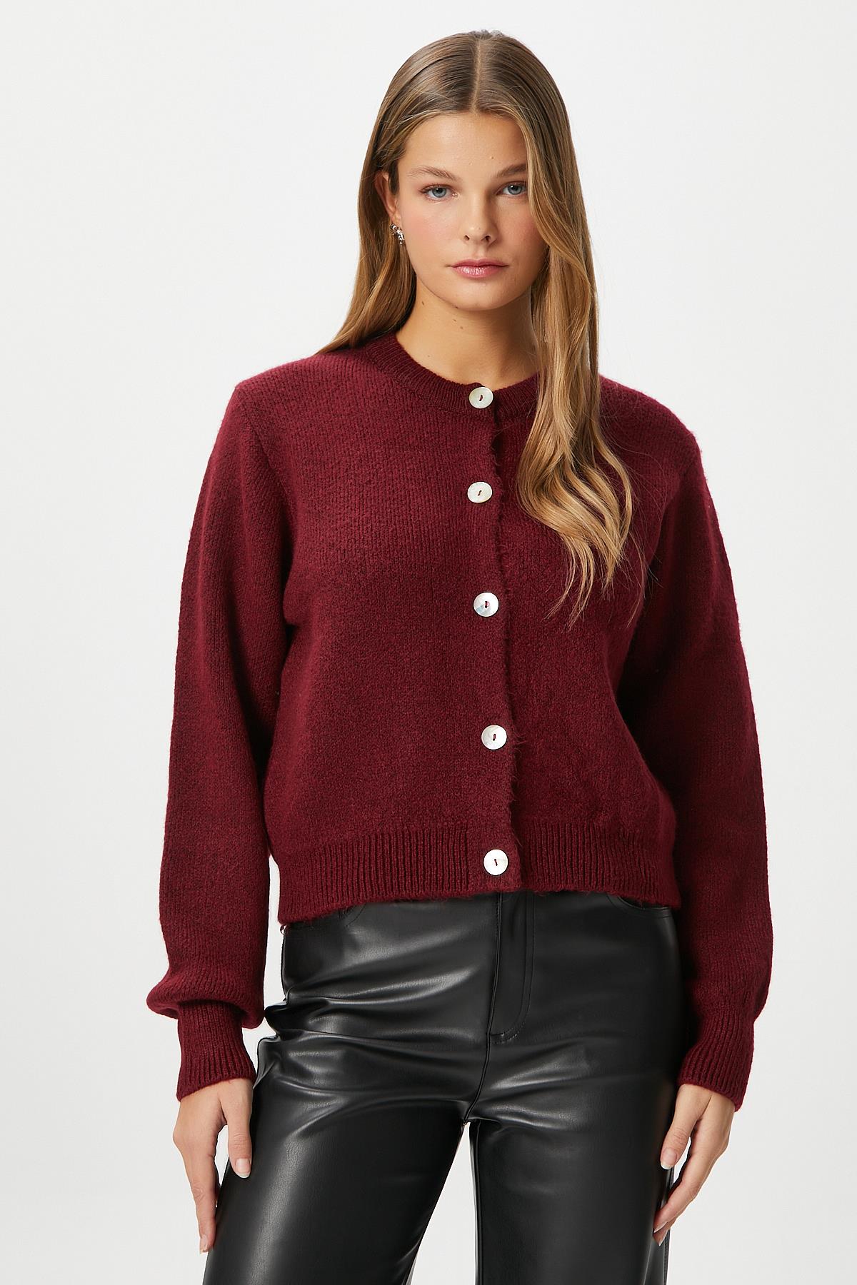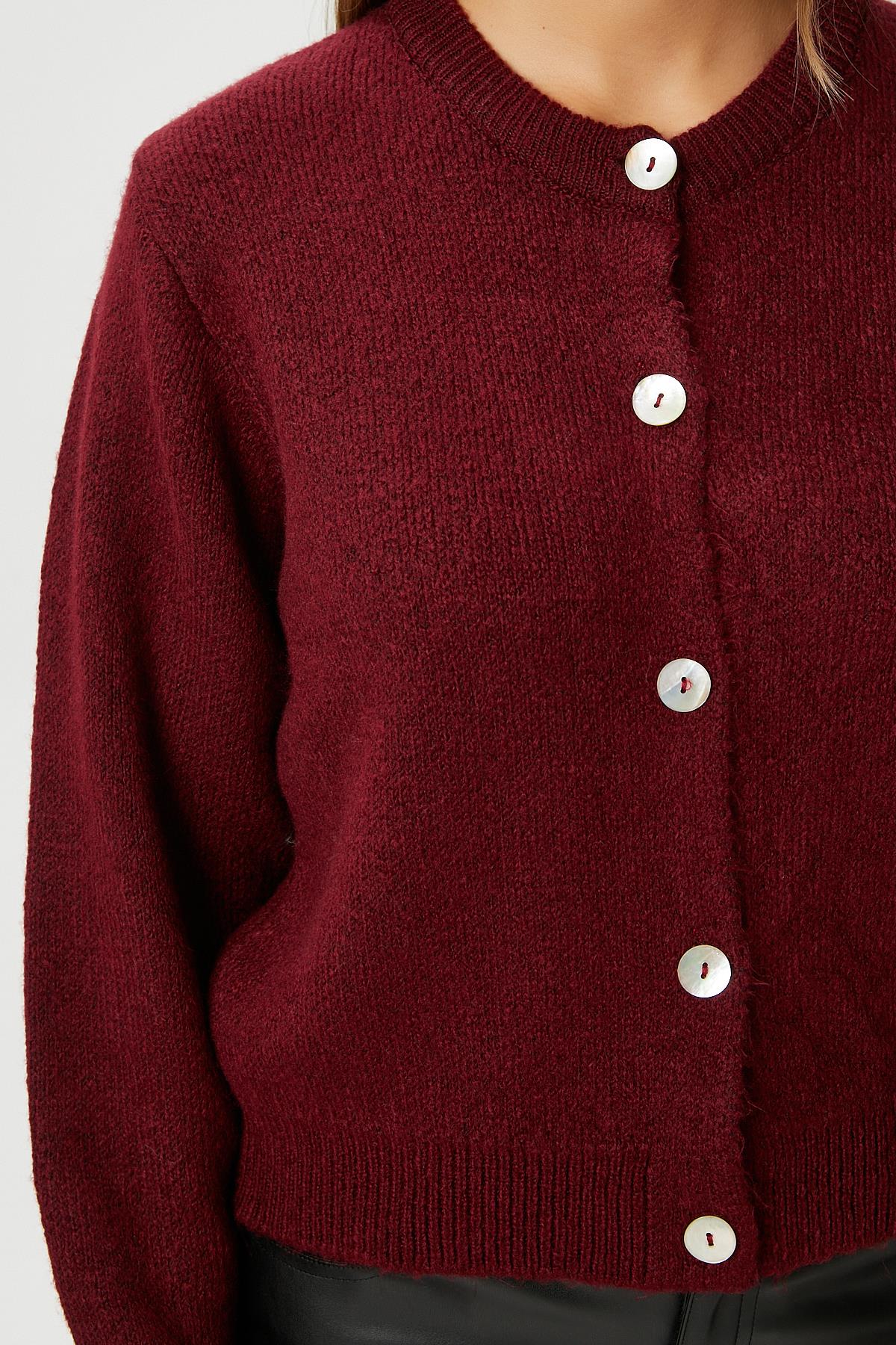 Kadın Demi Basic Yumuşak Doku Bordo Basic Triko Hırka