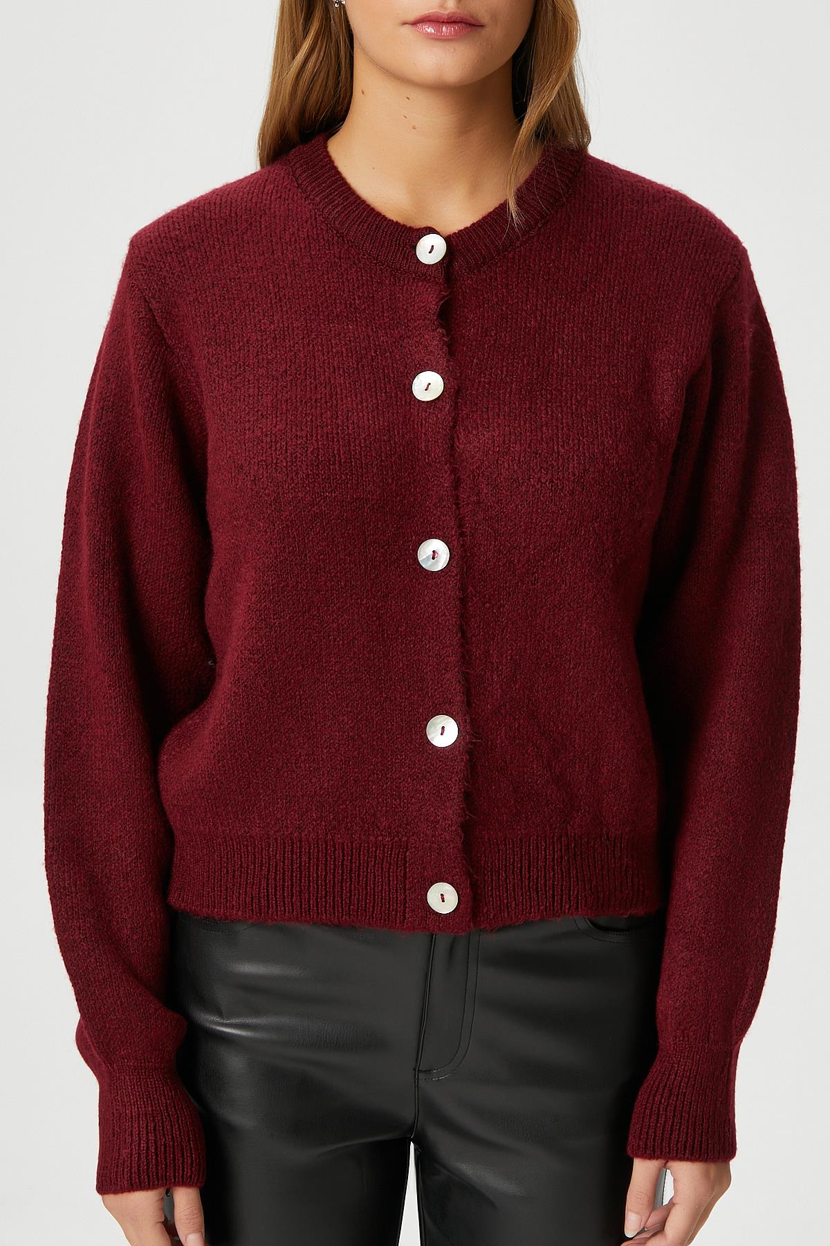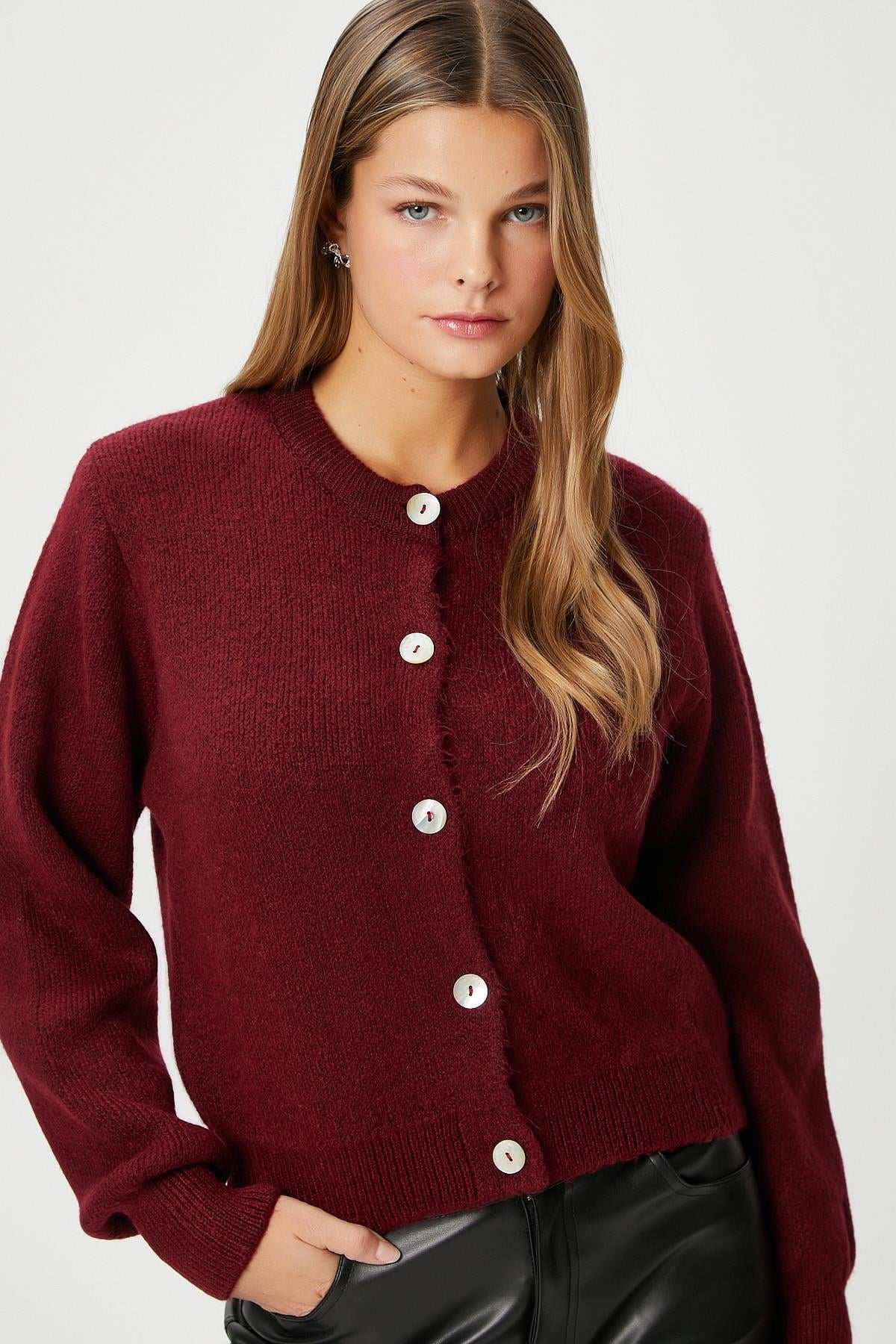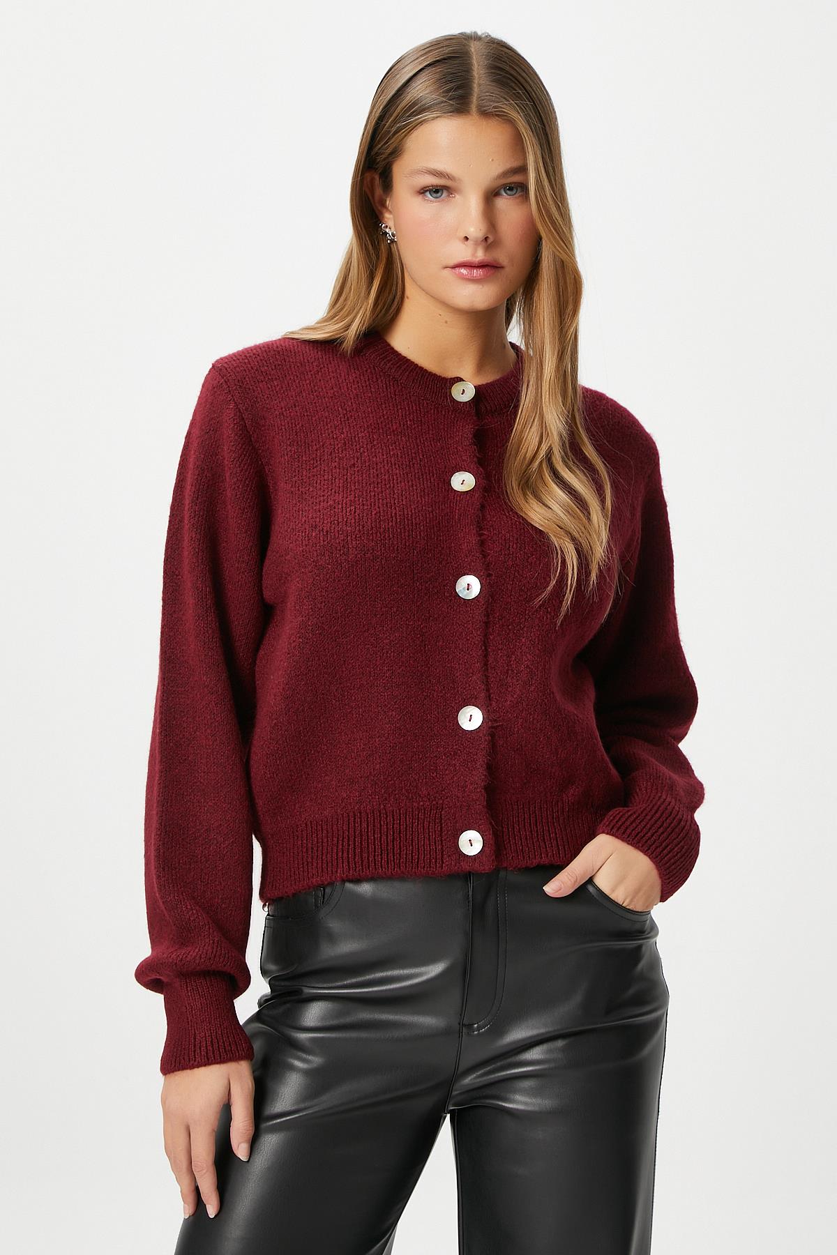 Kadın Demi Basic Yumuşak Doku Bordo Basic Triko Hırka