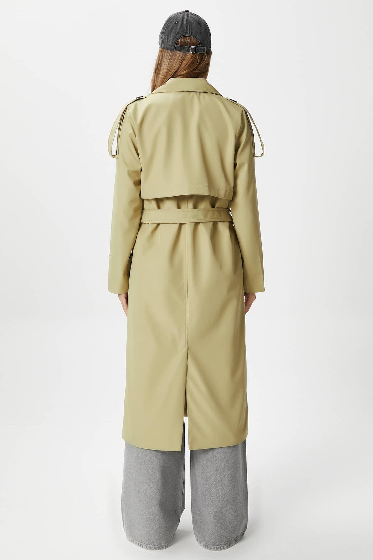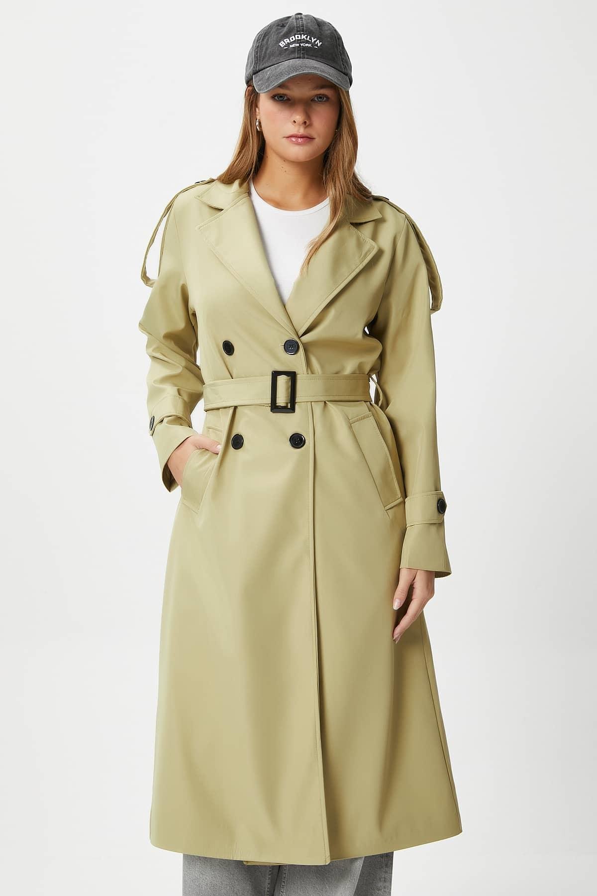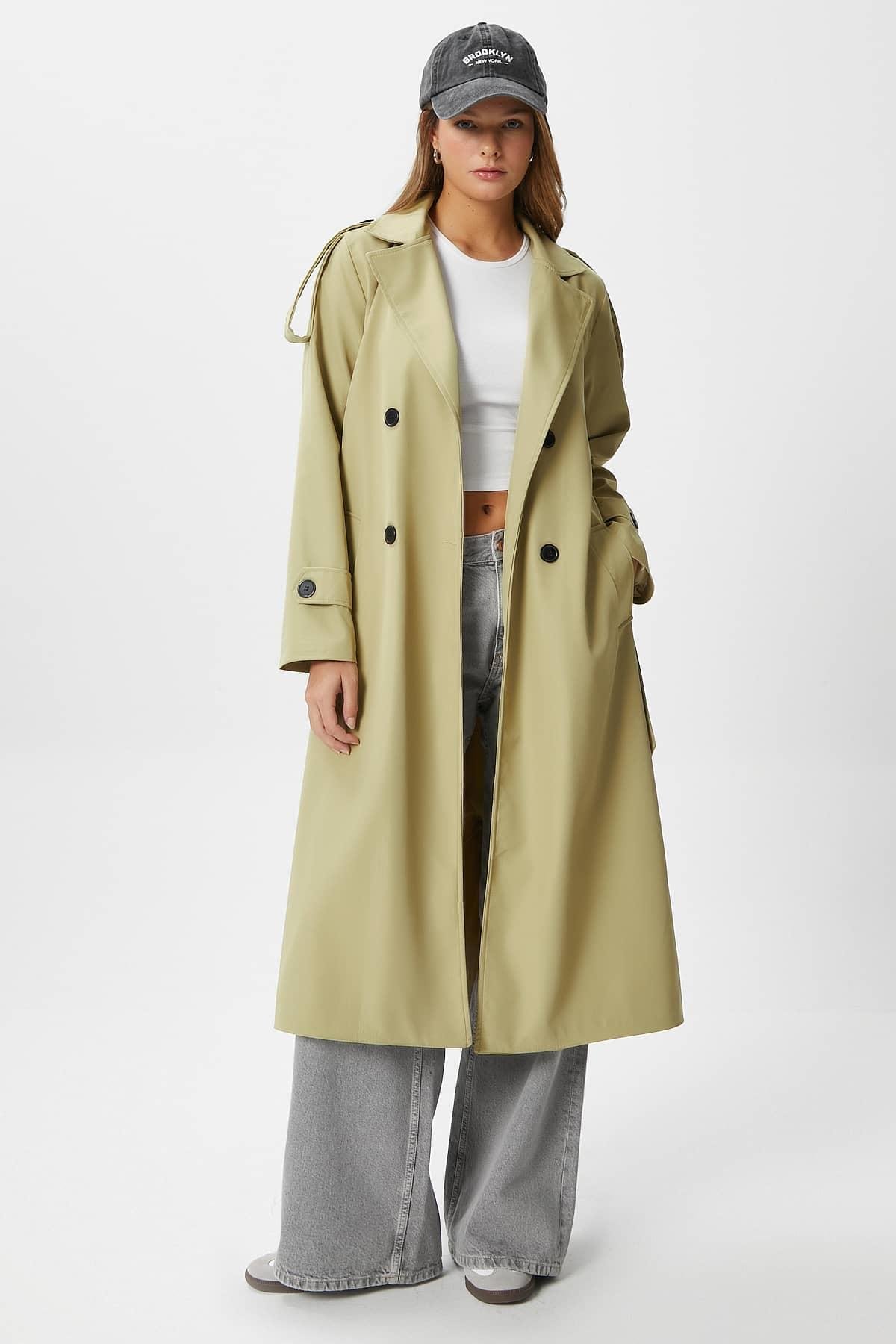 Kadın Detroit Astarlı Apolet Detaylı Uzun Açık Haki Trençkot