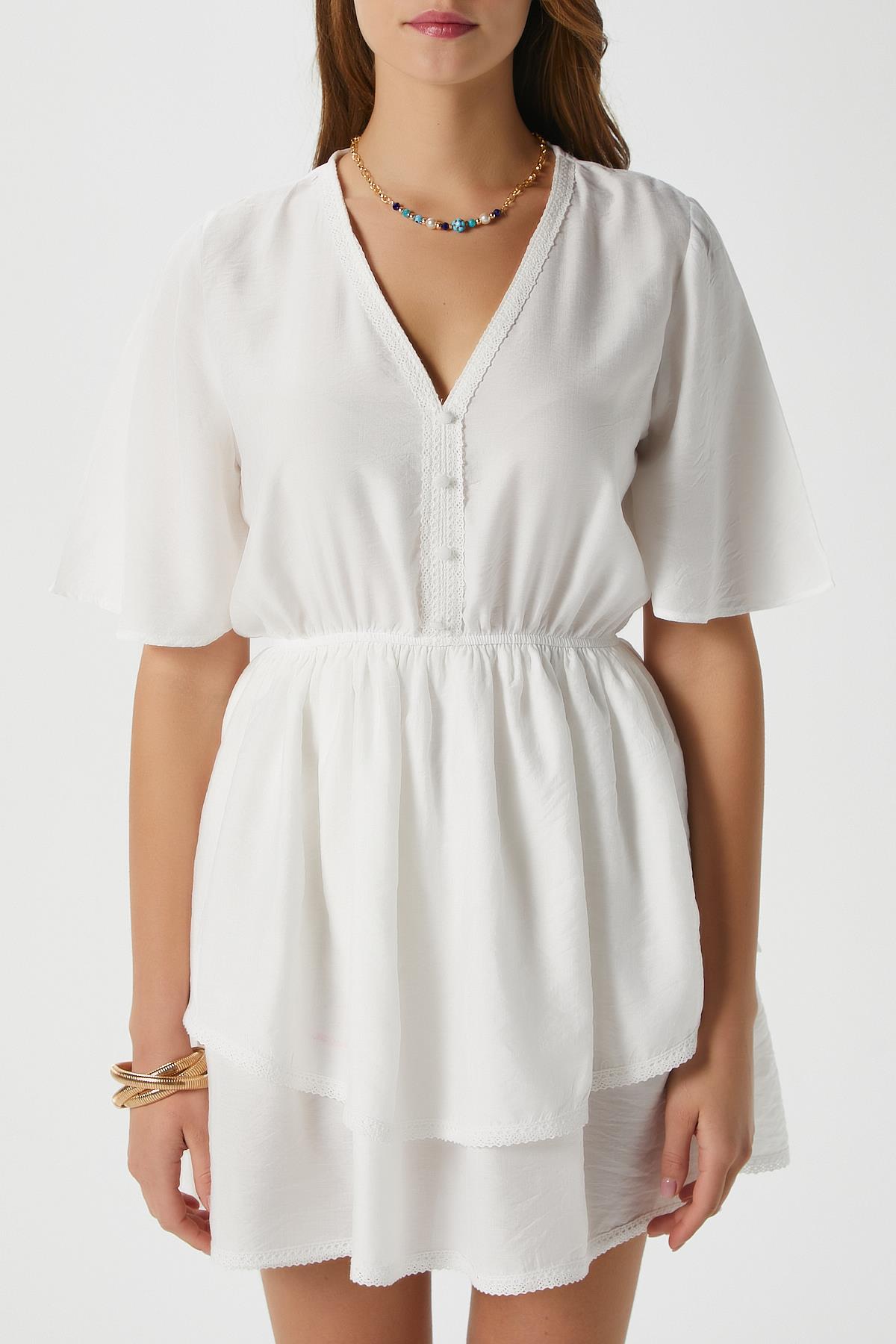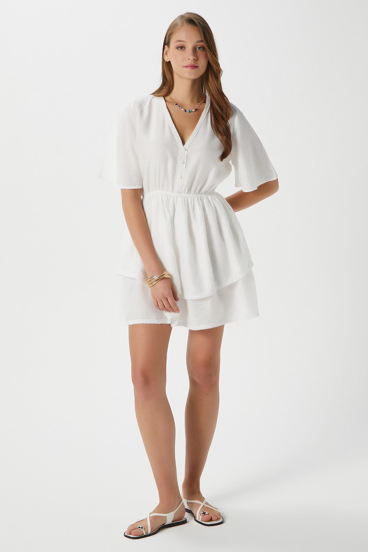 Kadın Devin Ekru Bel Lastikli Katlı Midi Elbise