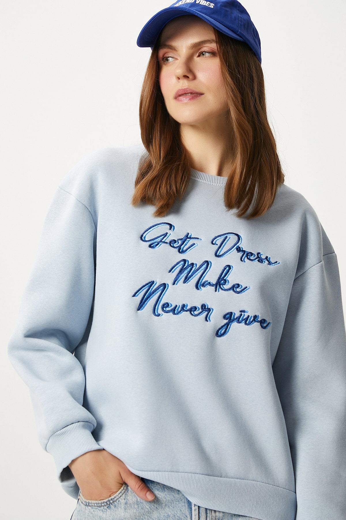 Kadın Dress Nakışlı Mavi Sweatshirt