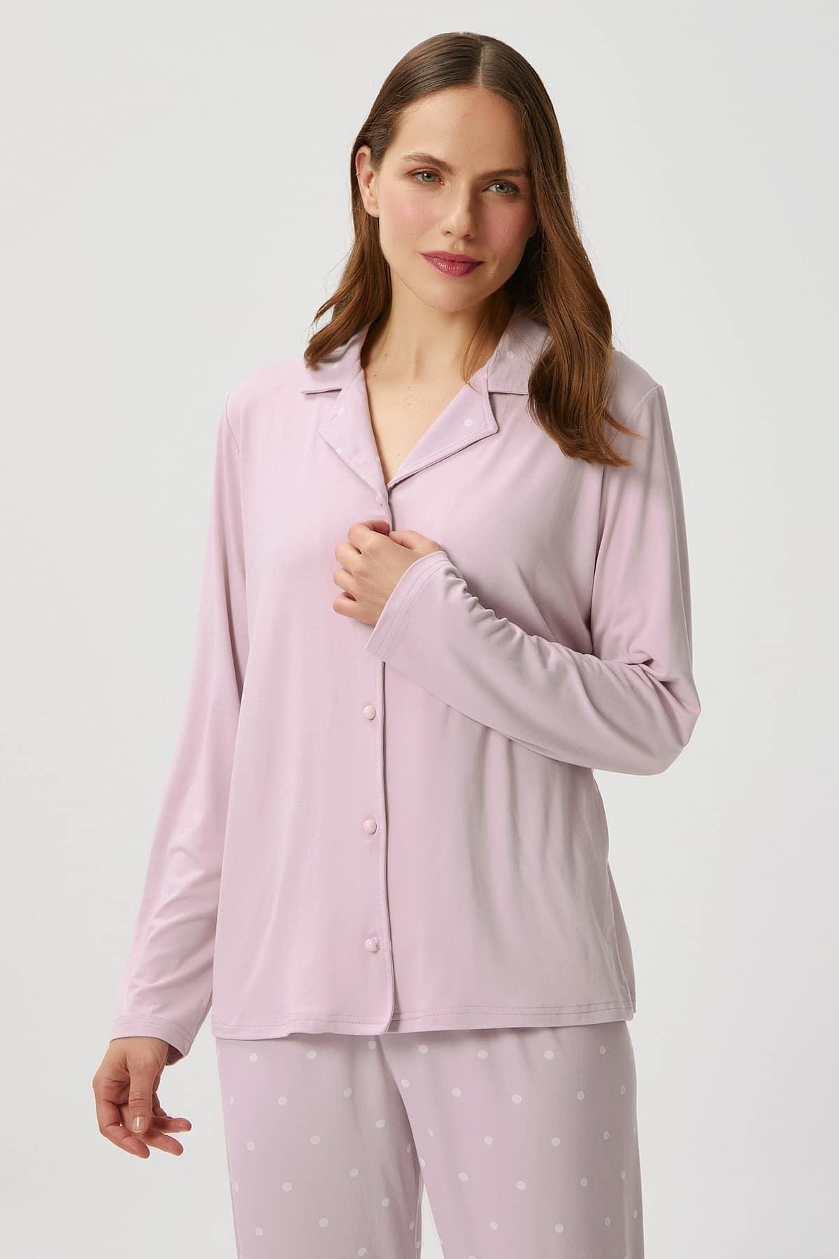 • Kadın Efsa Puantiye Ekstra Soft Lila Pijama Takımı