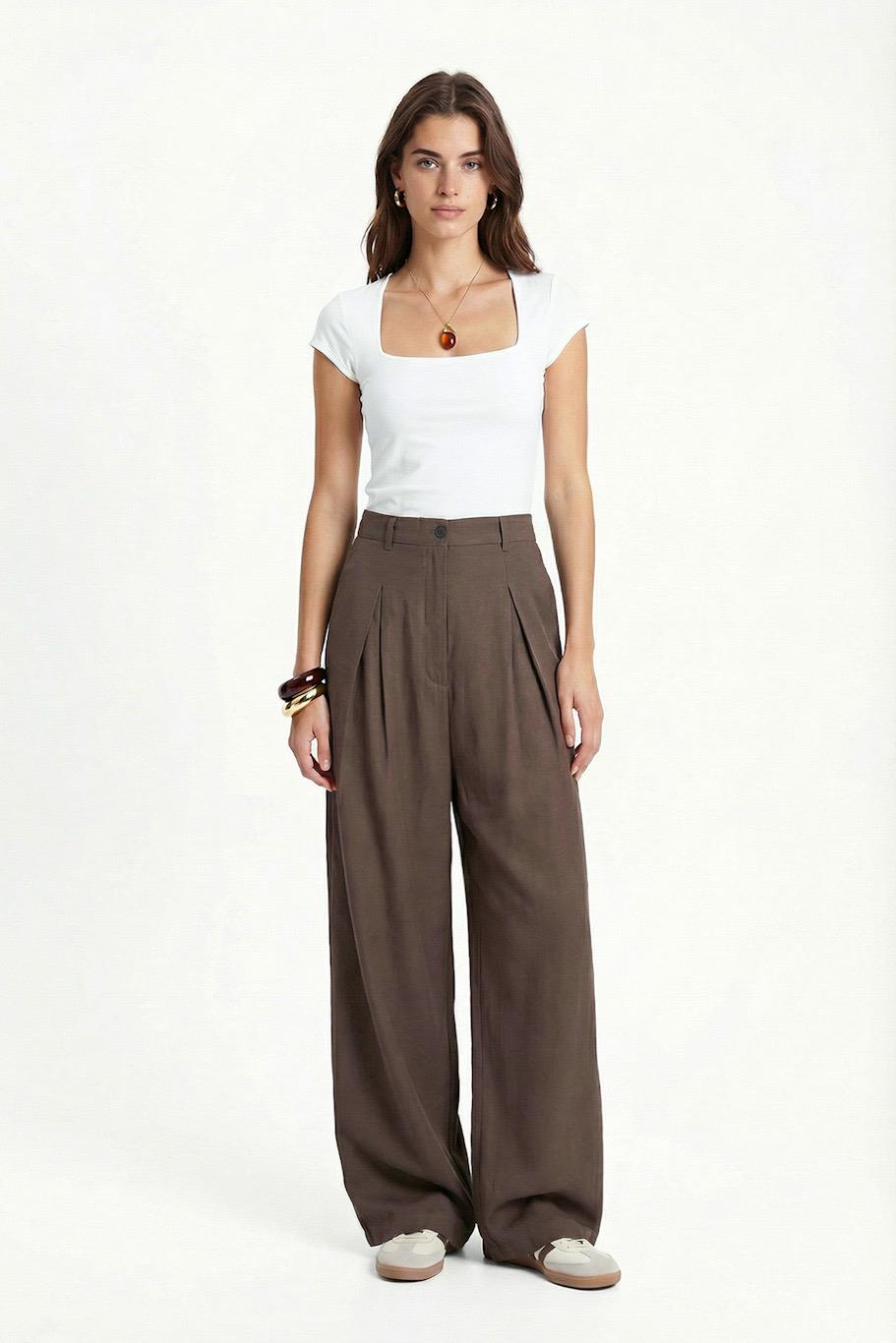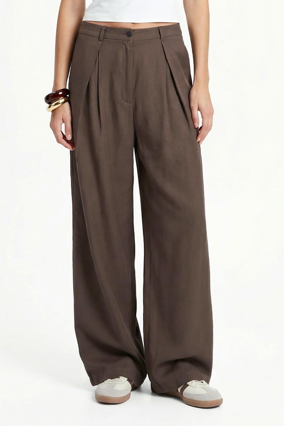 Kadın Eliot Ultra Soft Dokuma Modal Pileli Geniş Paça Haki Palazzo Pantolon