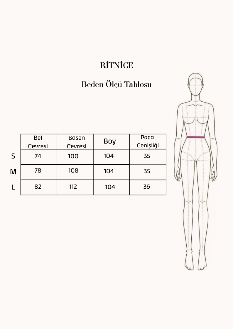 PAÇA GENİŞLİĞİ; S Beden 35, M Beden 35, L Beden 36