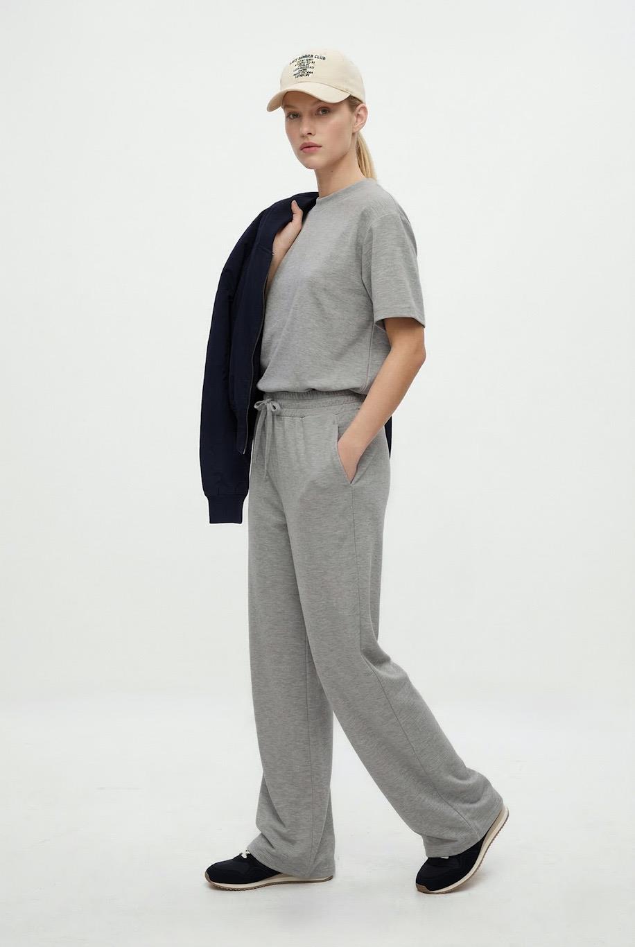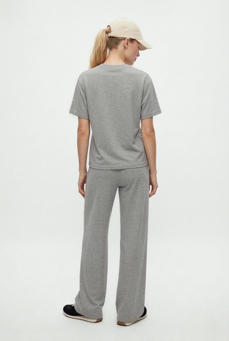 Kadın Elix Modal Touch Bisiklet Yaka Bel Lastikli Cepli Gri Melanj Alt Üst Takım