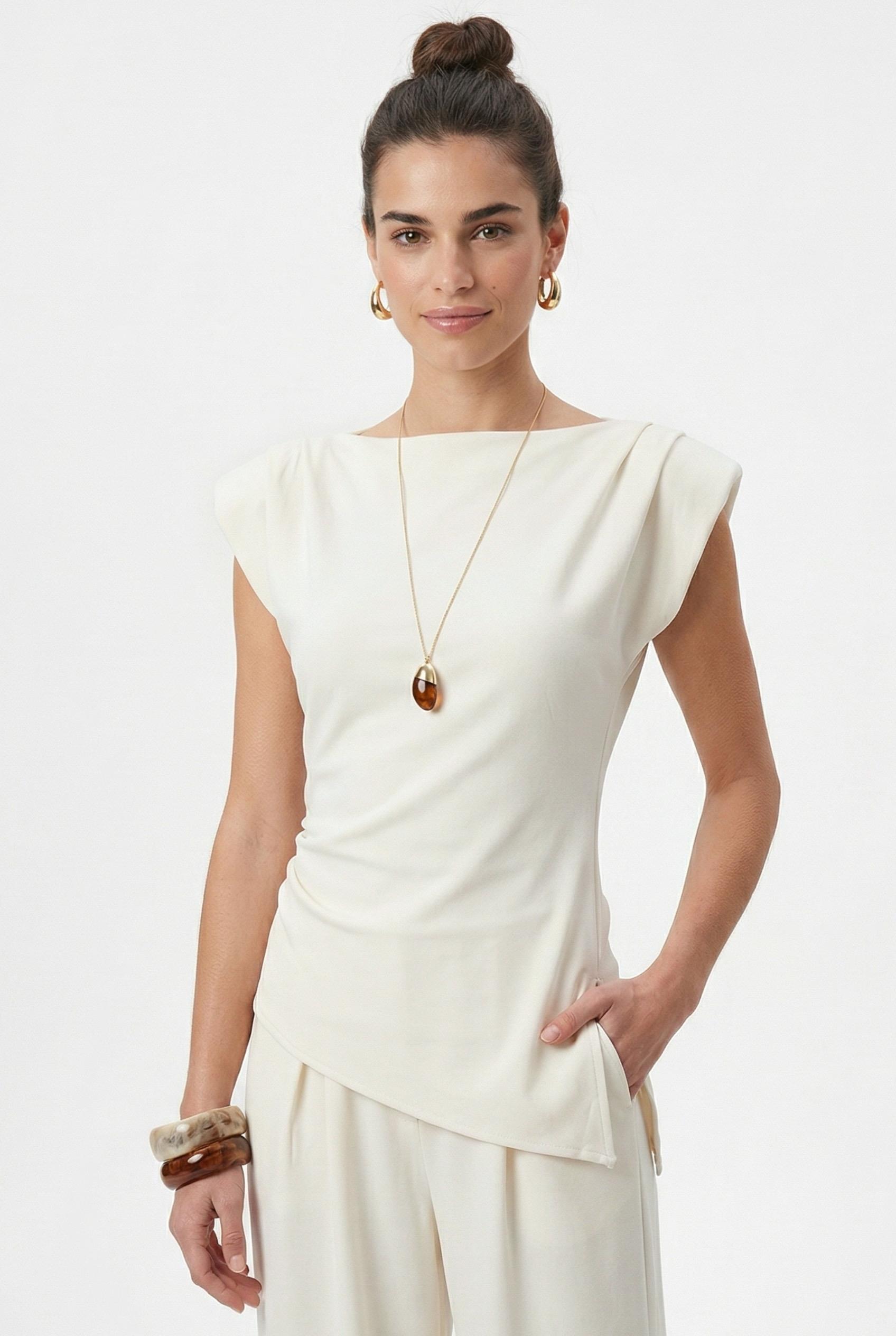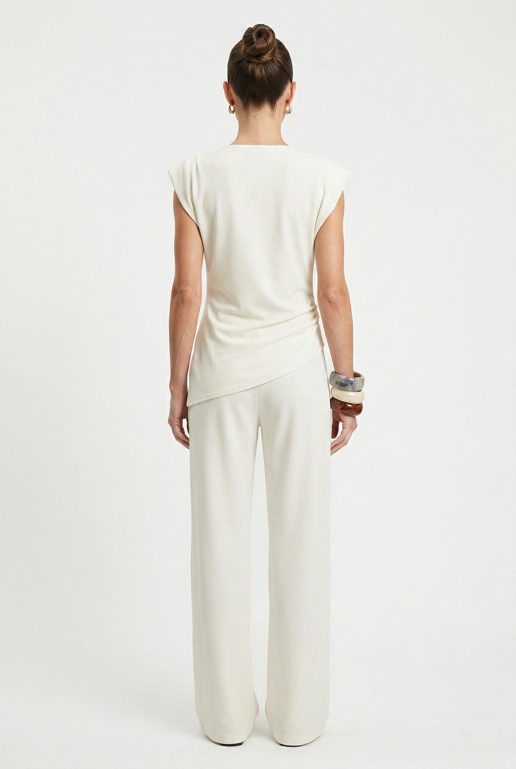 Kadın Elvis Modal Touch Vatkalı Asimetrik Bluz Bel Lastikli Krem Alt Üst Takım