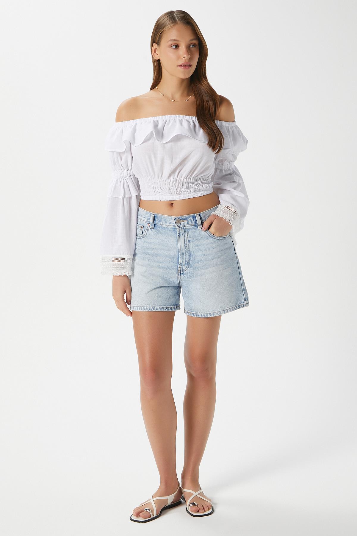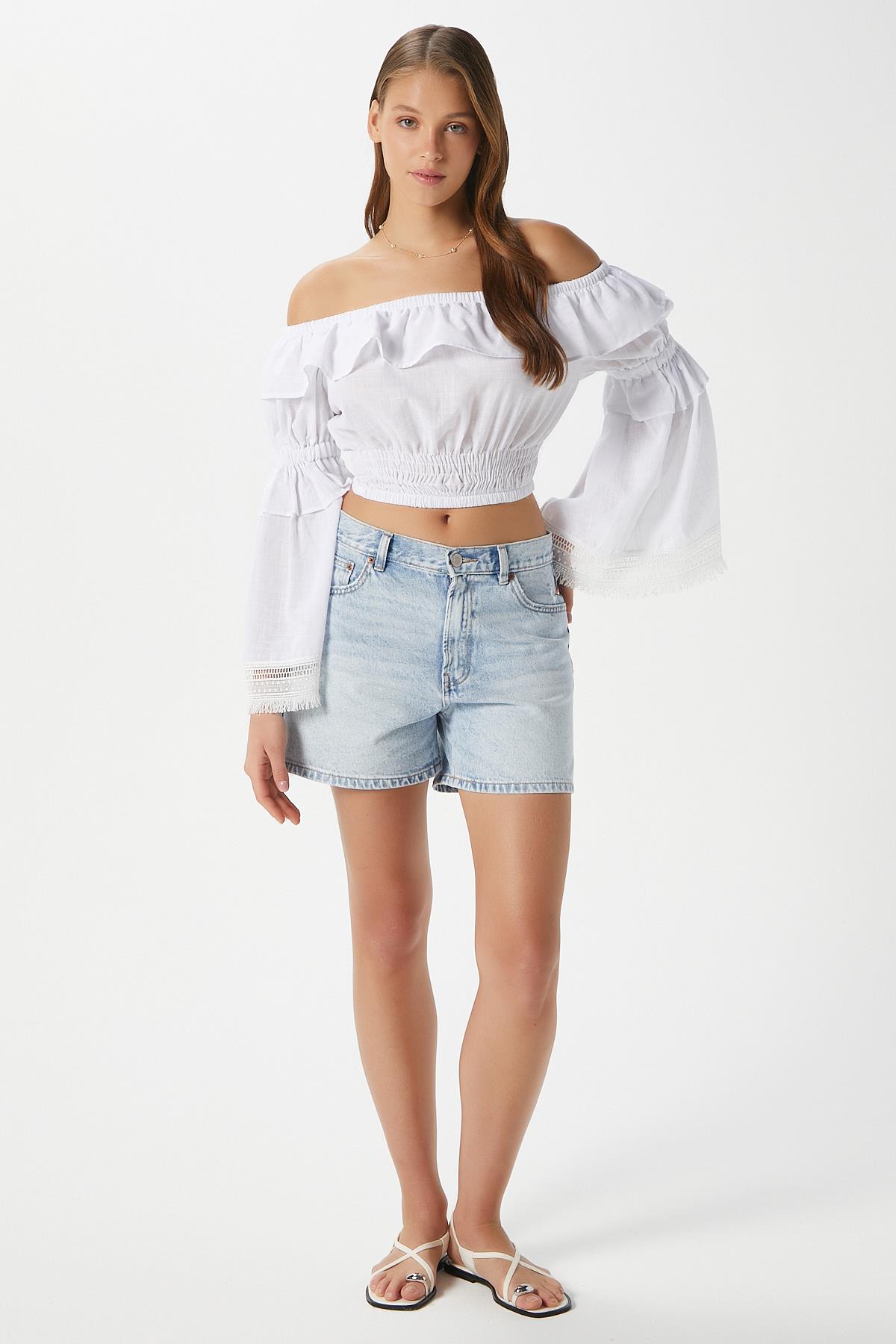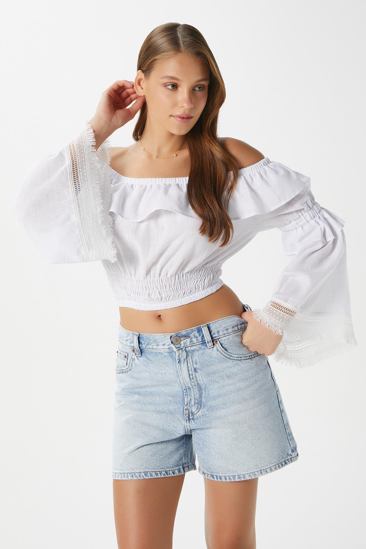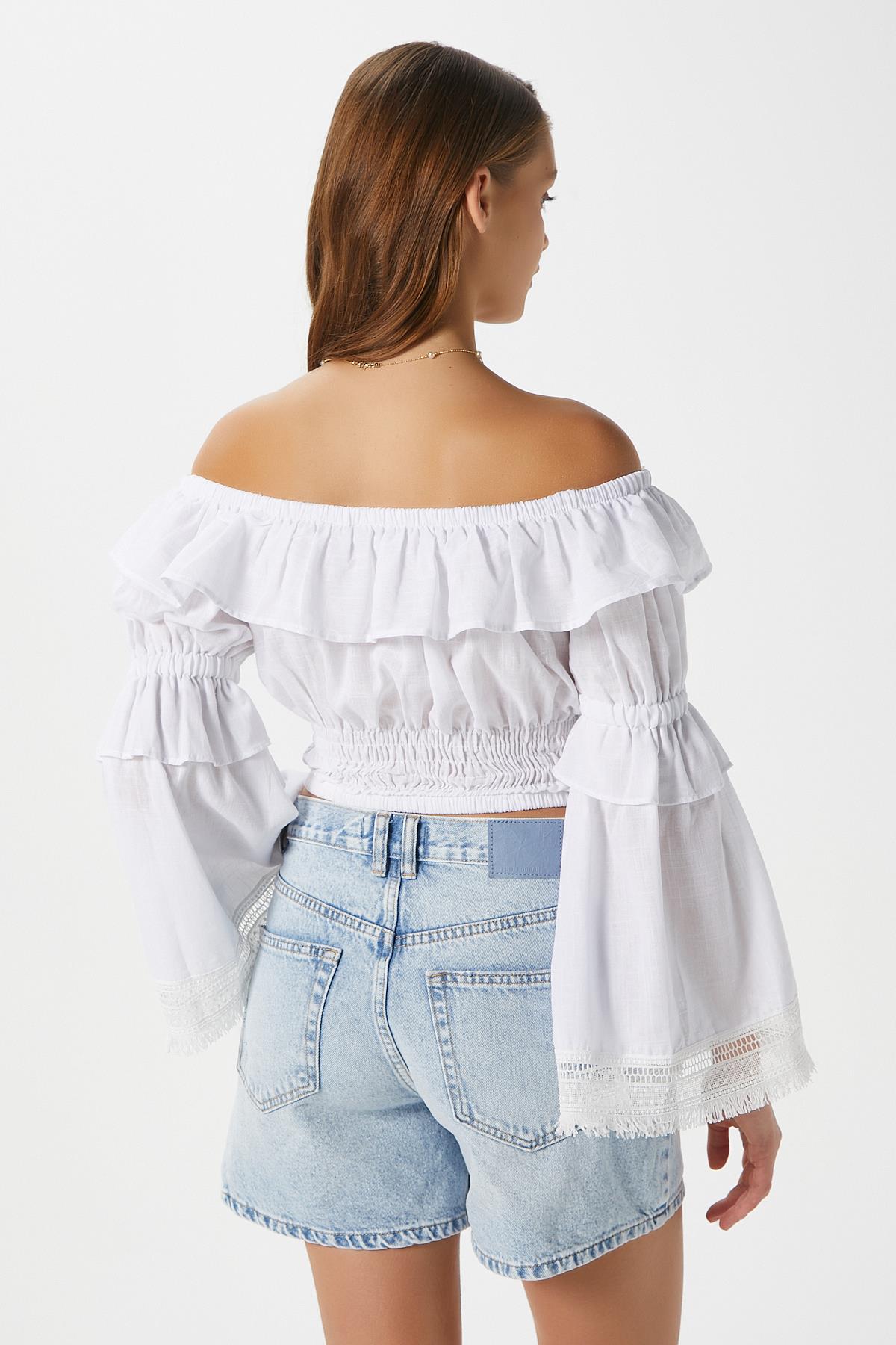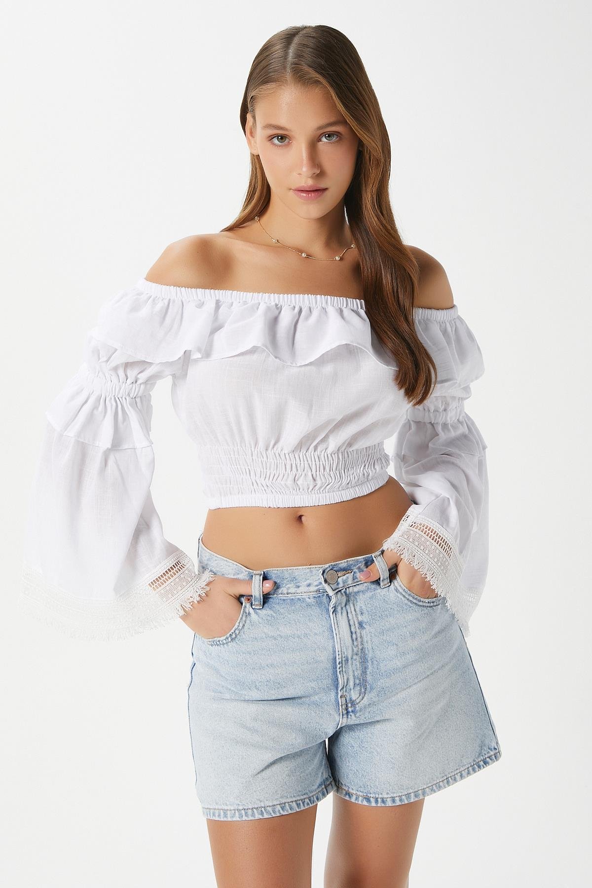 Kadın Emily Beyaz Madonna Yaka Bluz