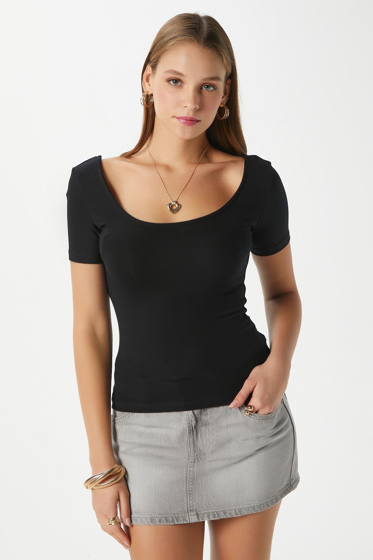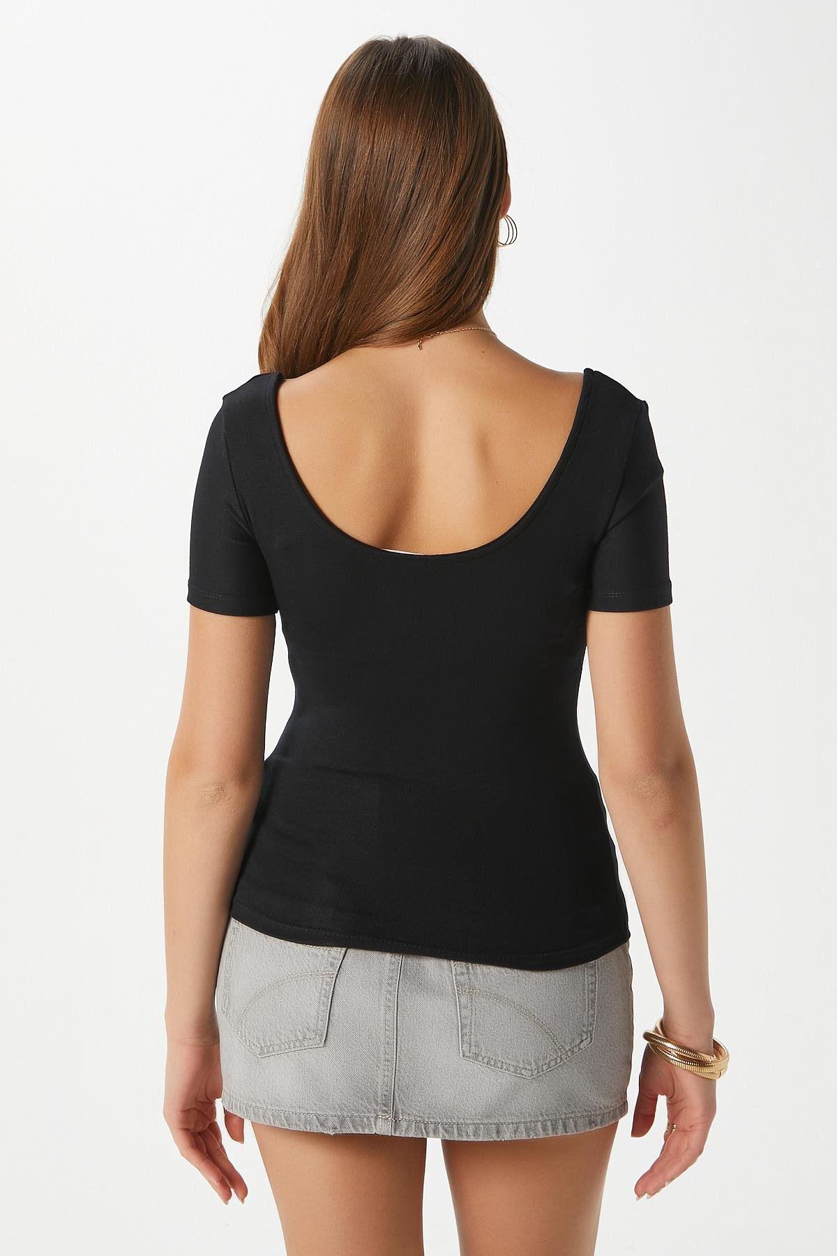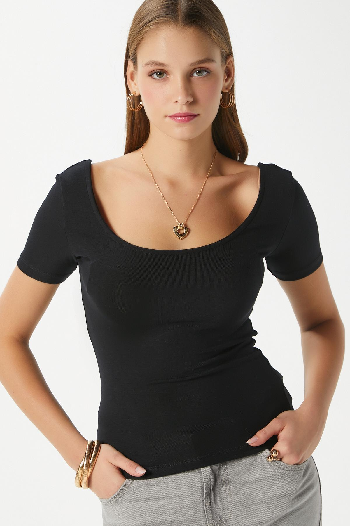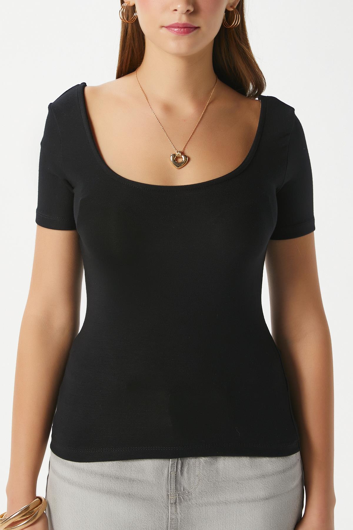Kadın Favor Lux Touch Yumuşak Doku U yaka Siyah Bluz