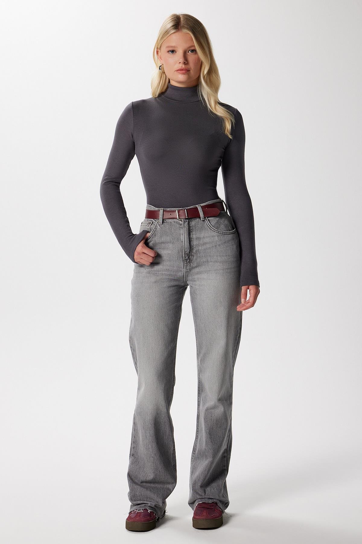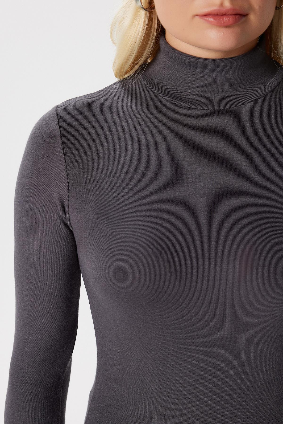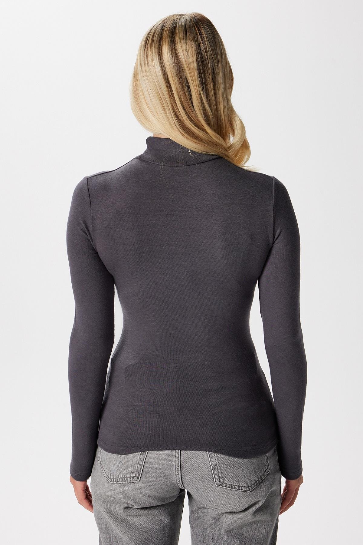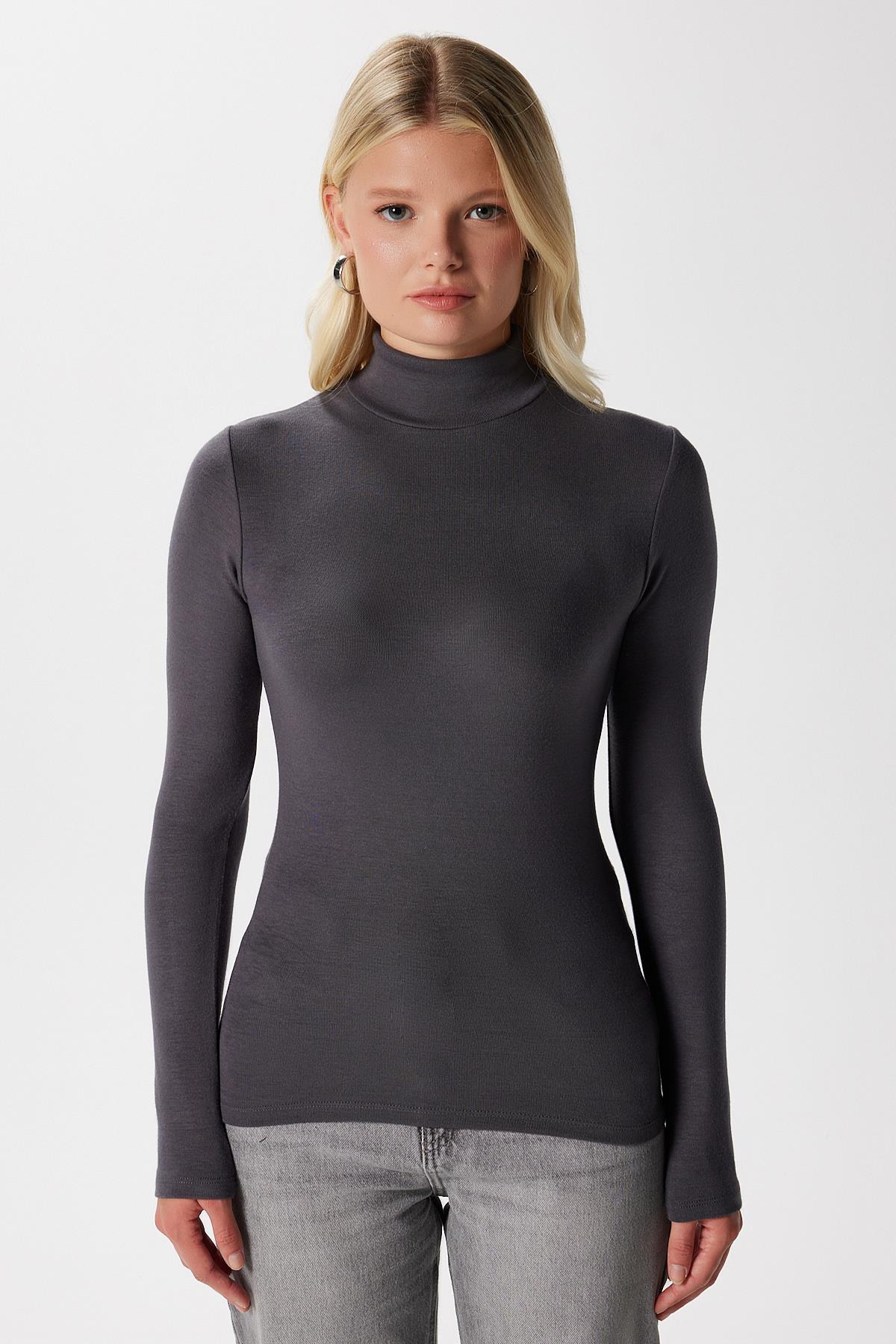 Kadın Feel Lux Touch Dik Yaka Antrasit Uzun Kol Soft Bluz
