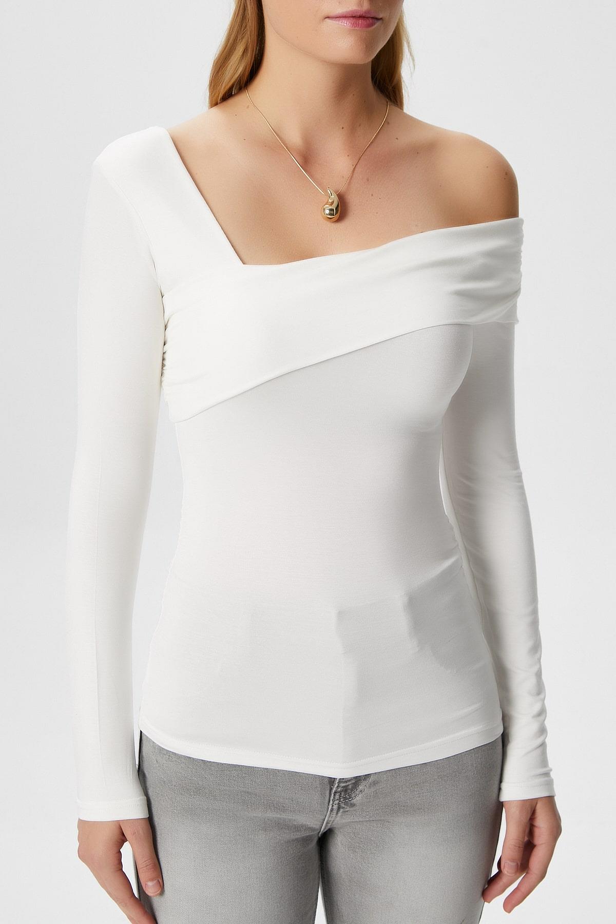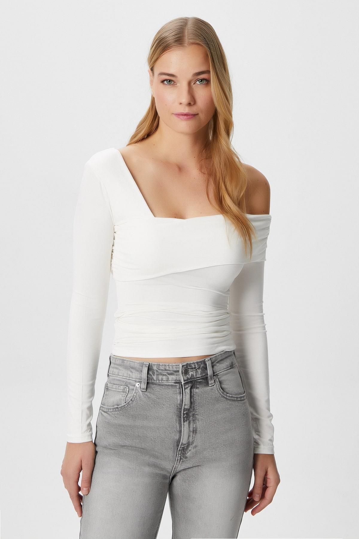 Kadın Fuse Omuz Katlamalı Ekru Bluz
