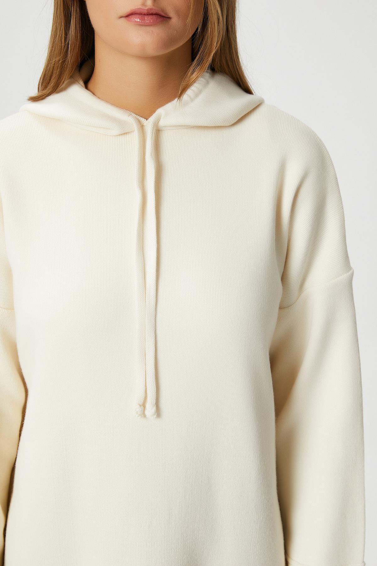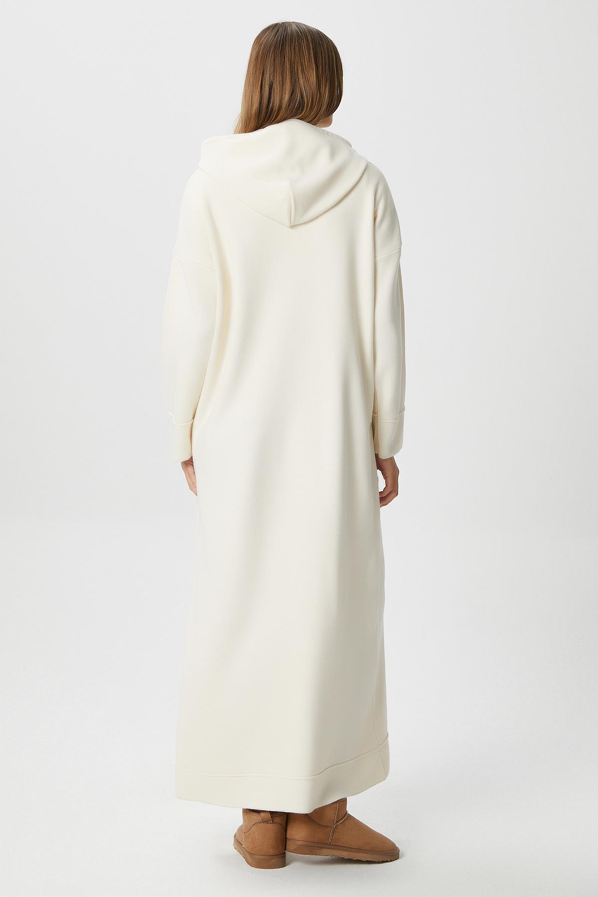 Kadın Fusion Kapüşonlu Krem Uzun Triko Elbise
