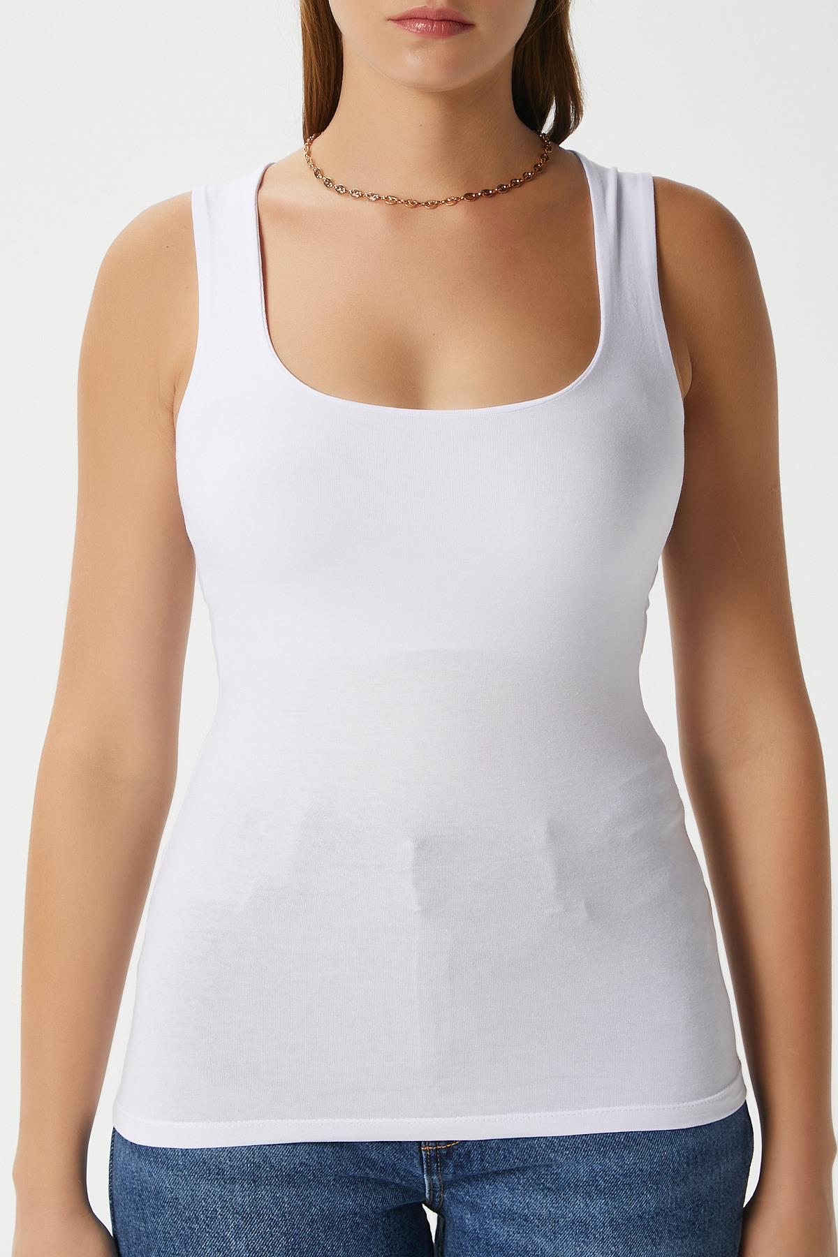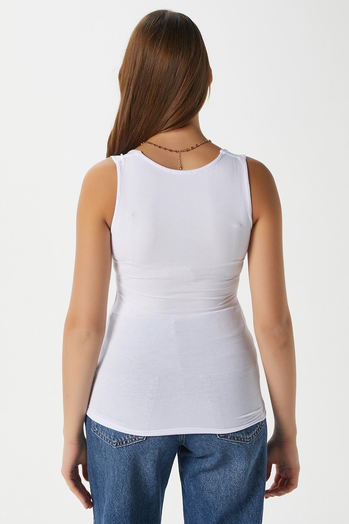 Kadın Glossy %100 Pamuk Beyaz Bluz