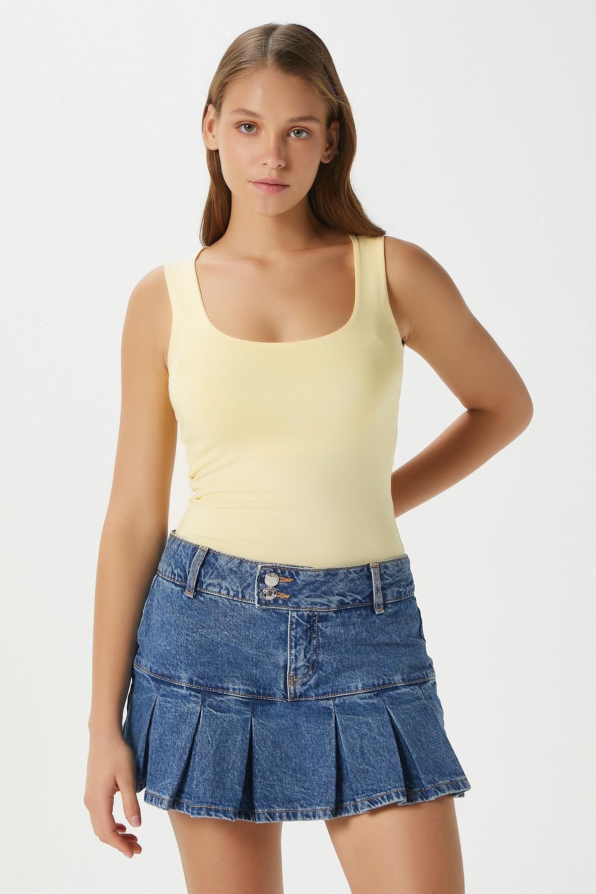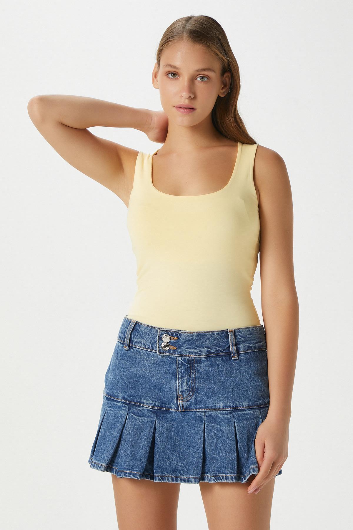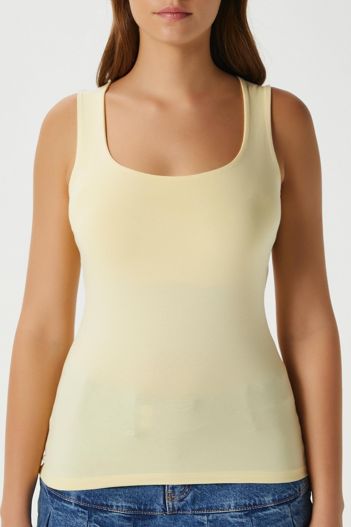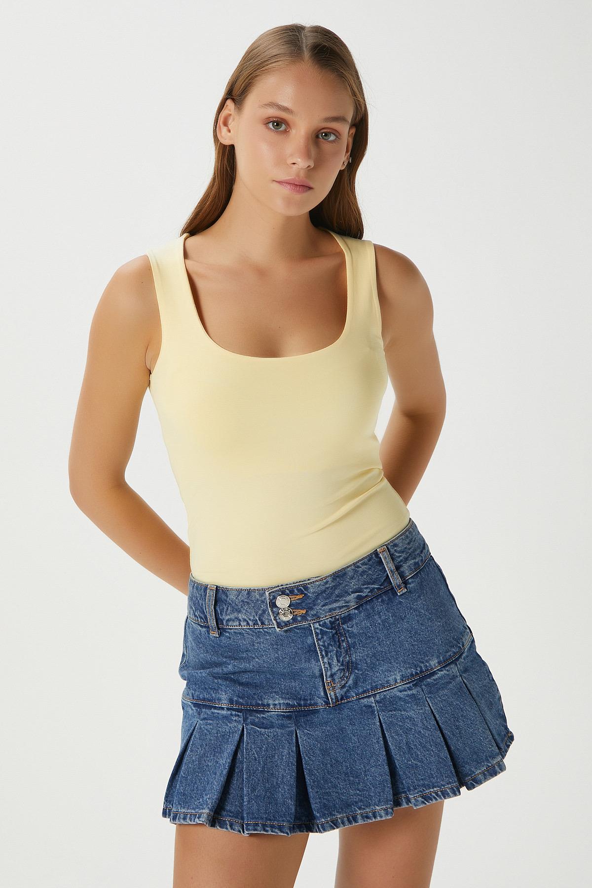 Kadın Glossy %100 Pamuk Tereyağ Sarısı Bluz