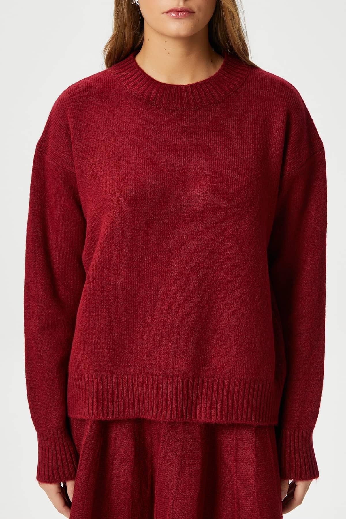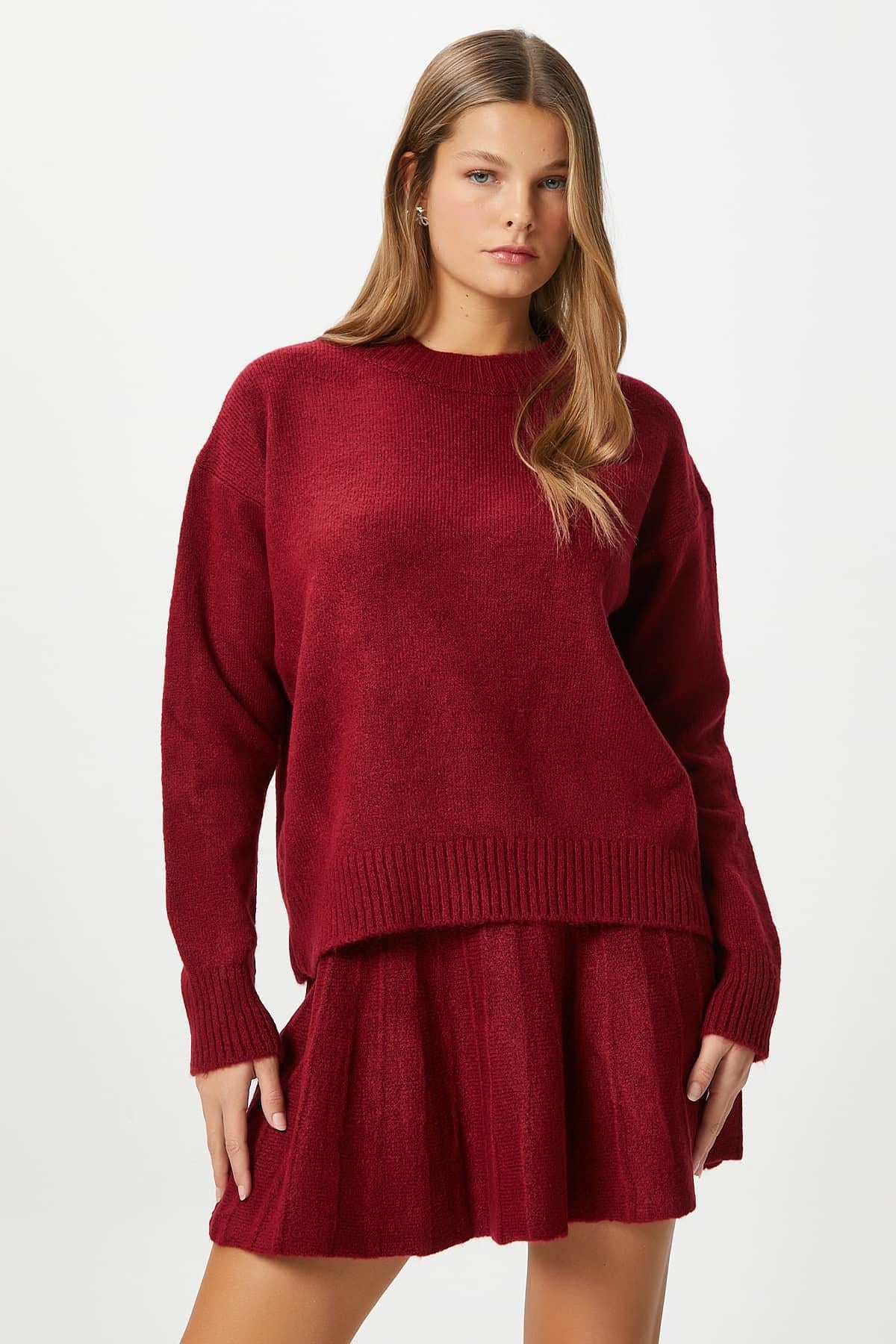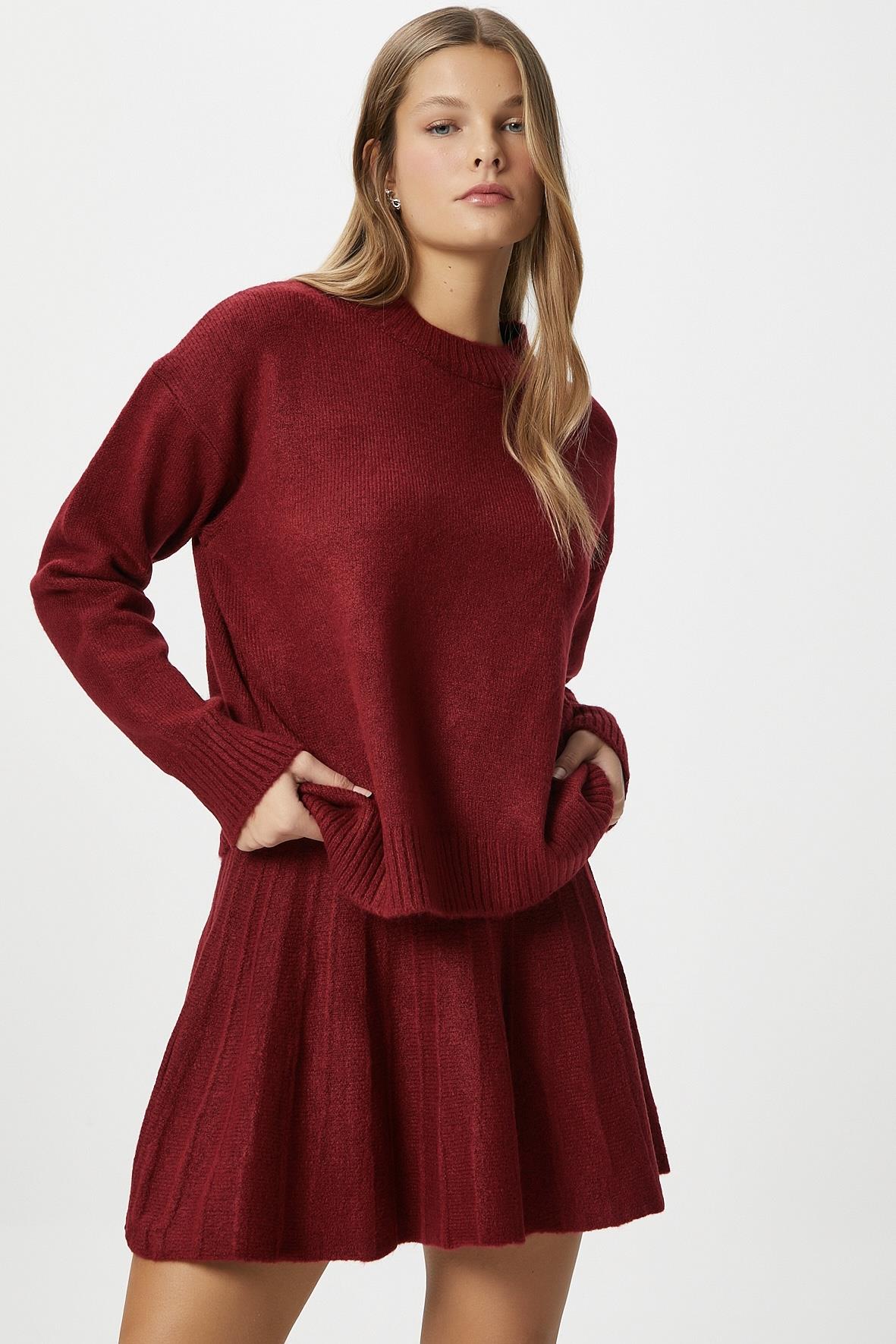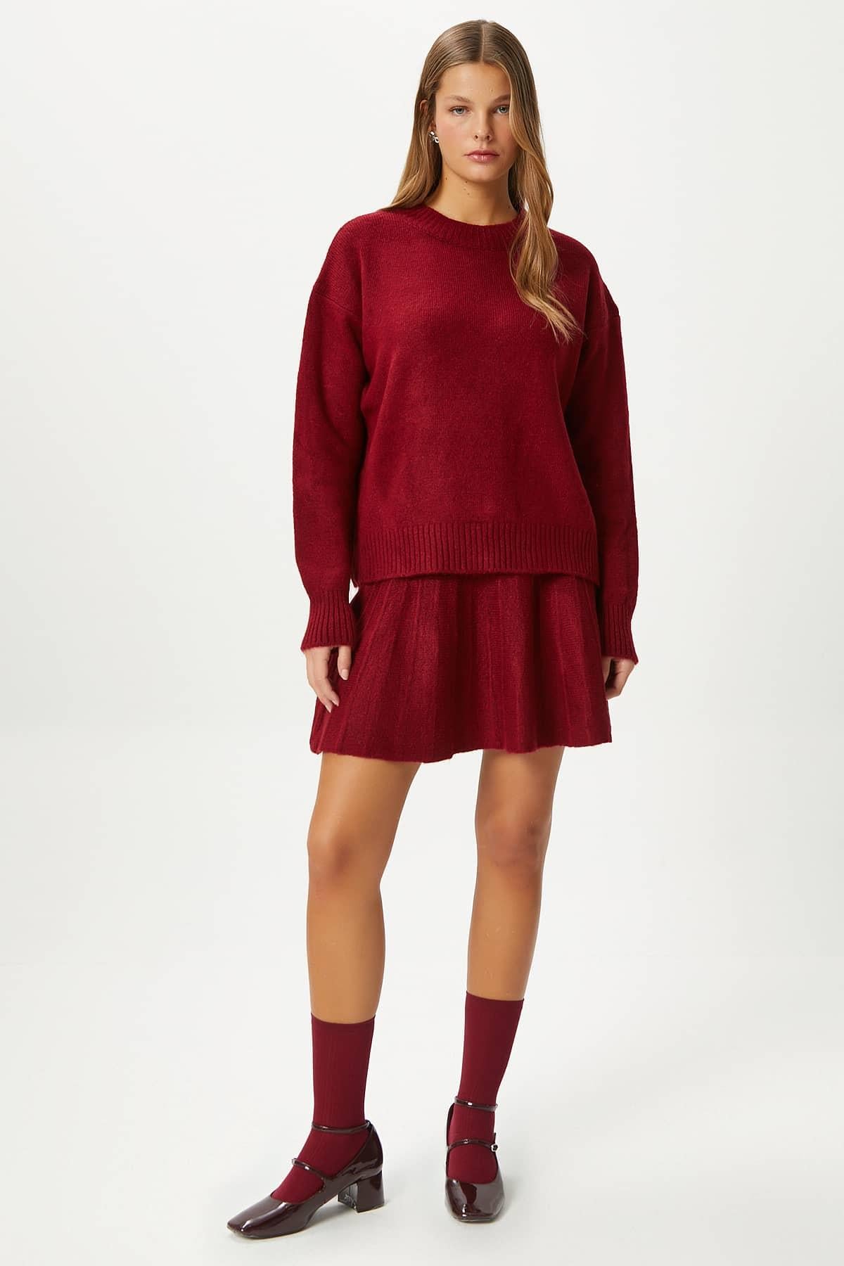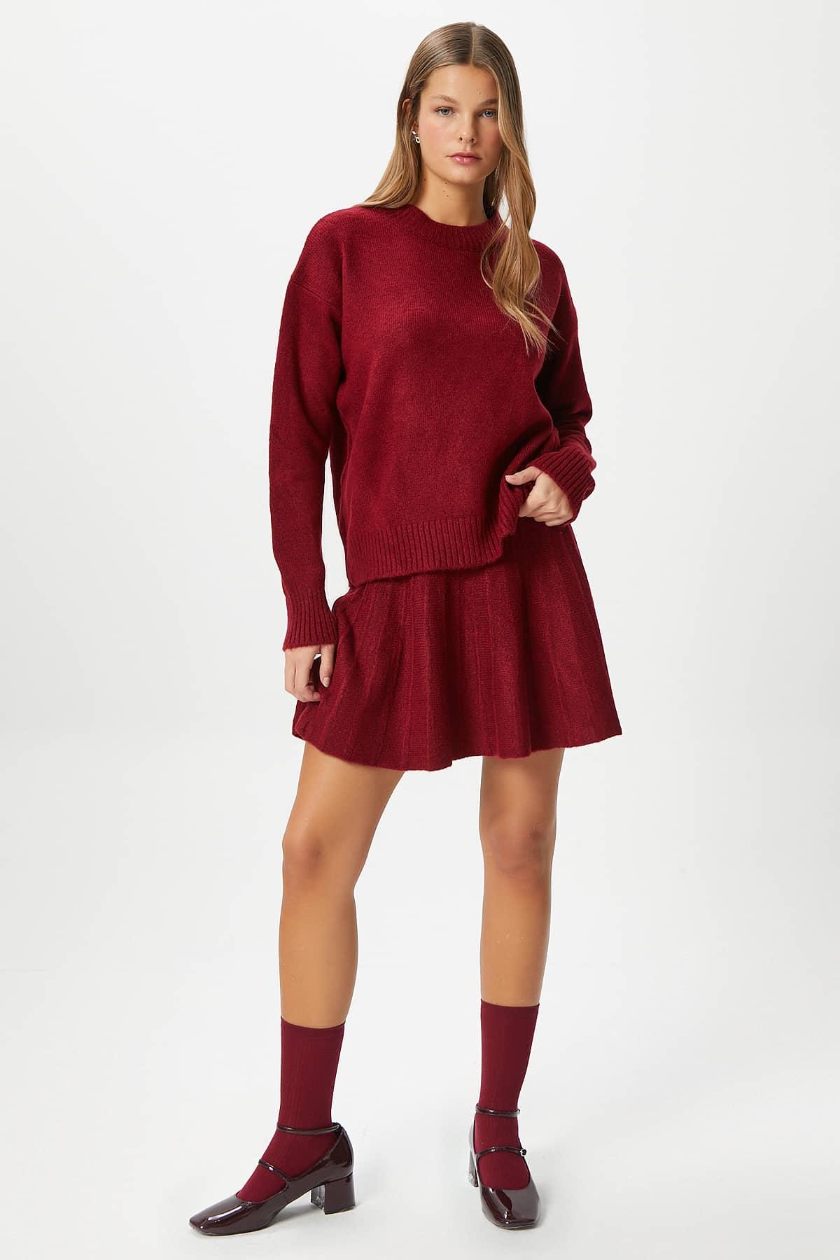 Kadın Hope Kazak Etek Alt Üst Bordo Triko Takım