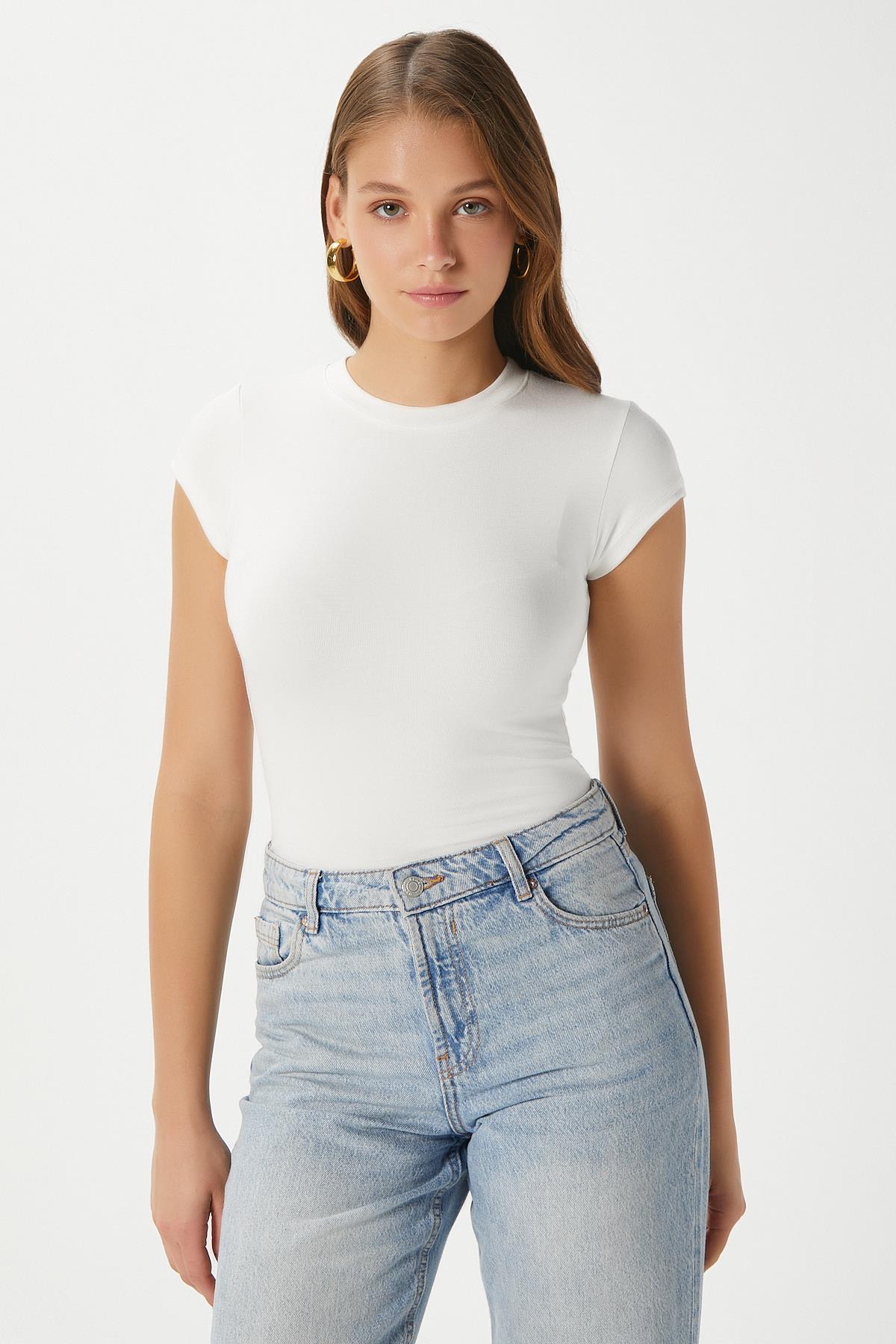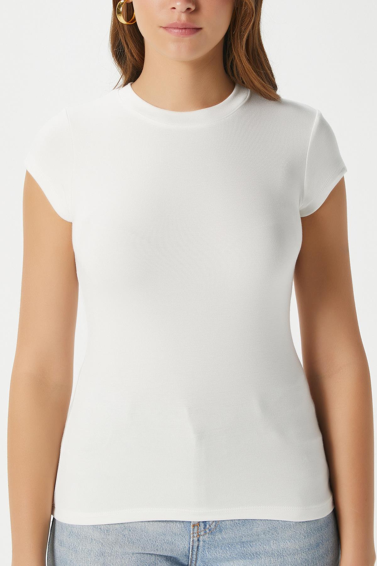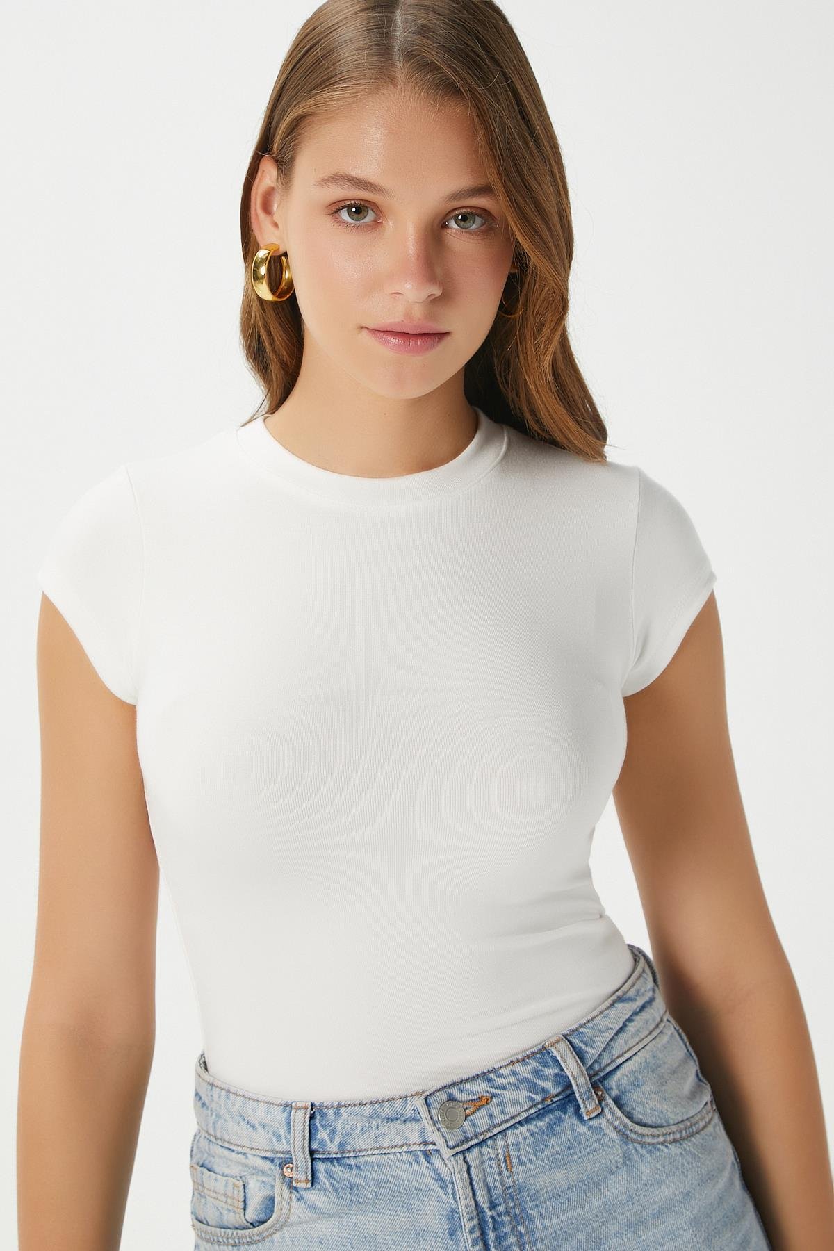 Kadın İnner Lux Touch Yumuşak Doku Bisiklet Yaka Kısa Kol Beyaz Bluz