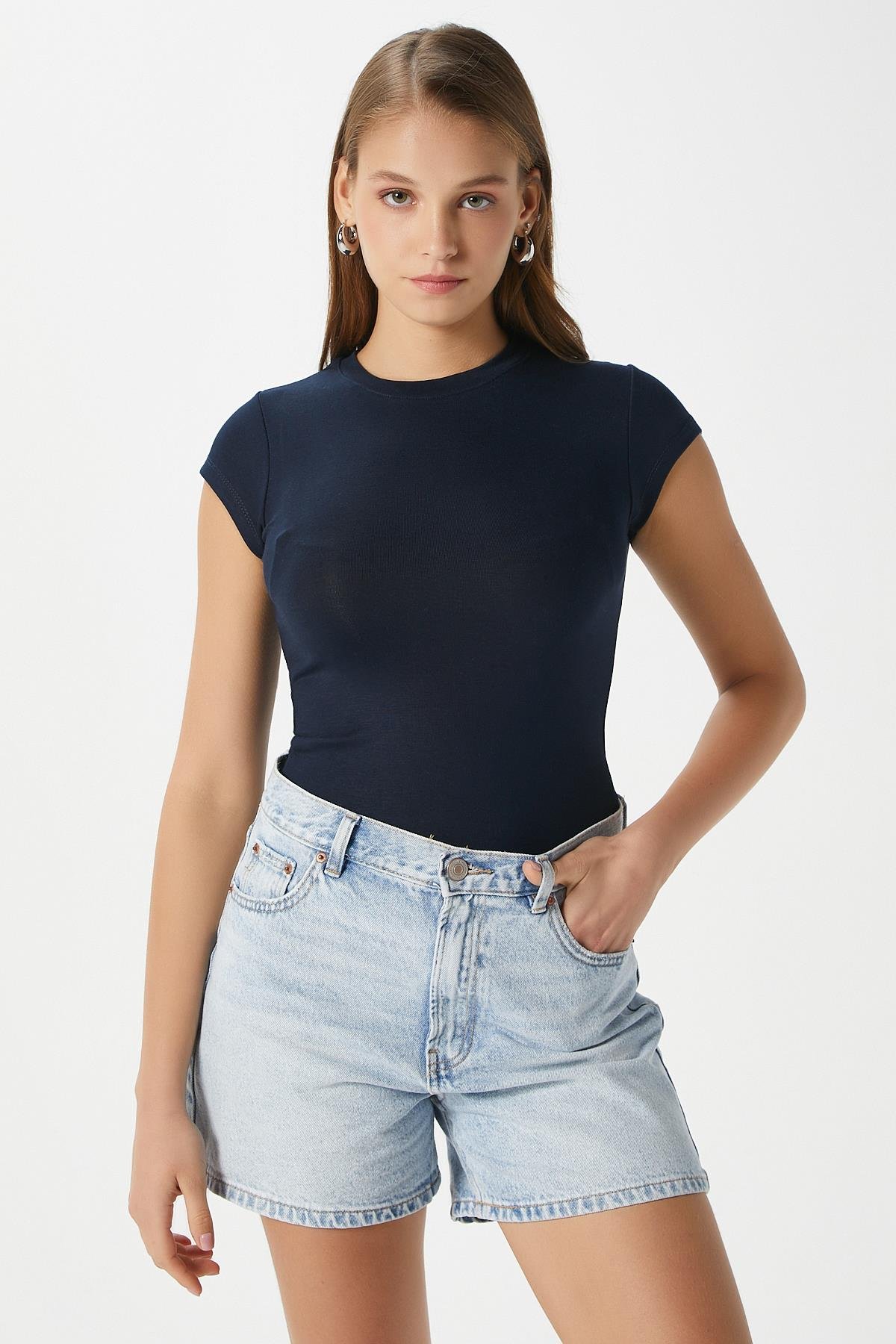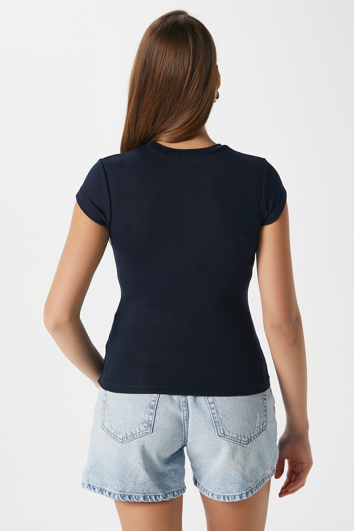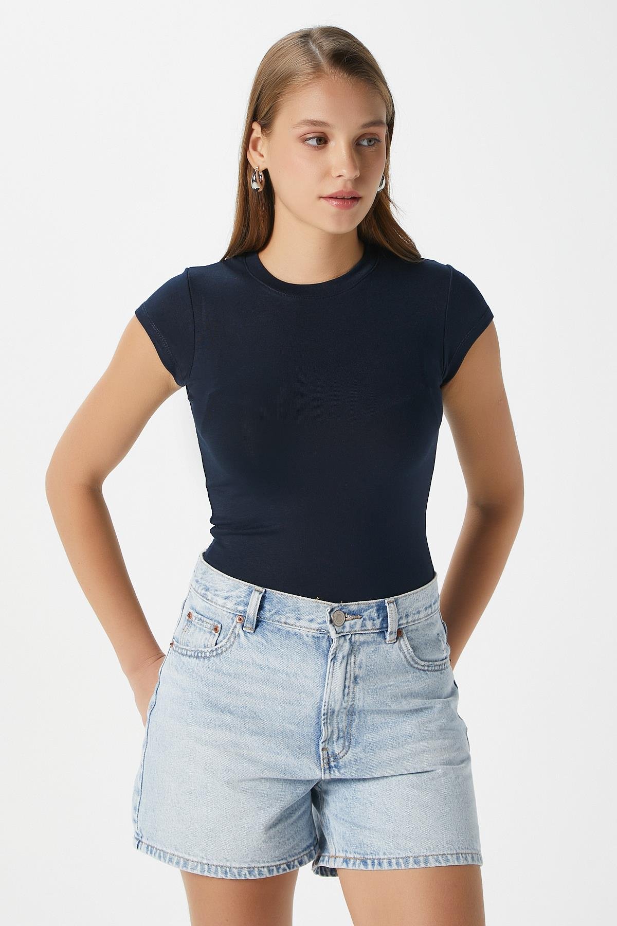 Kadın İnner Lux Touch Yumuşak Doku Bisiklet Yaka Kısa Kol Lacivert Bluz