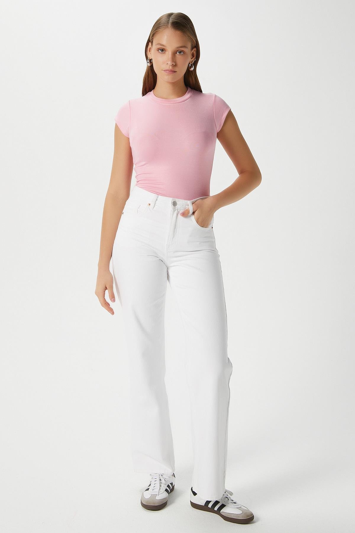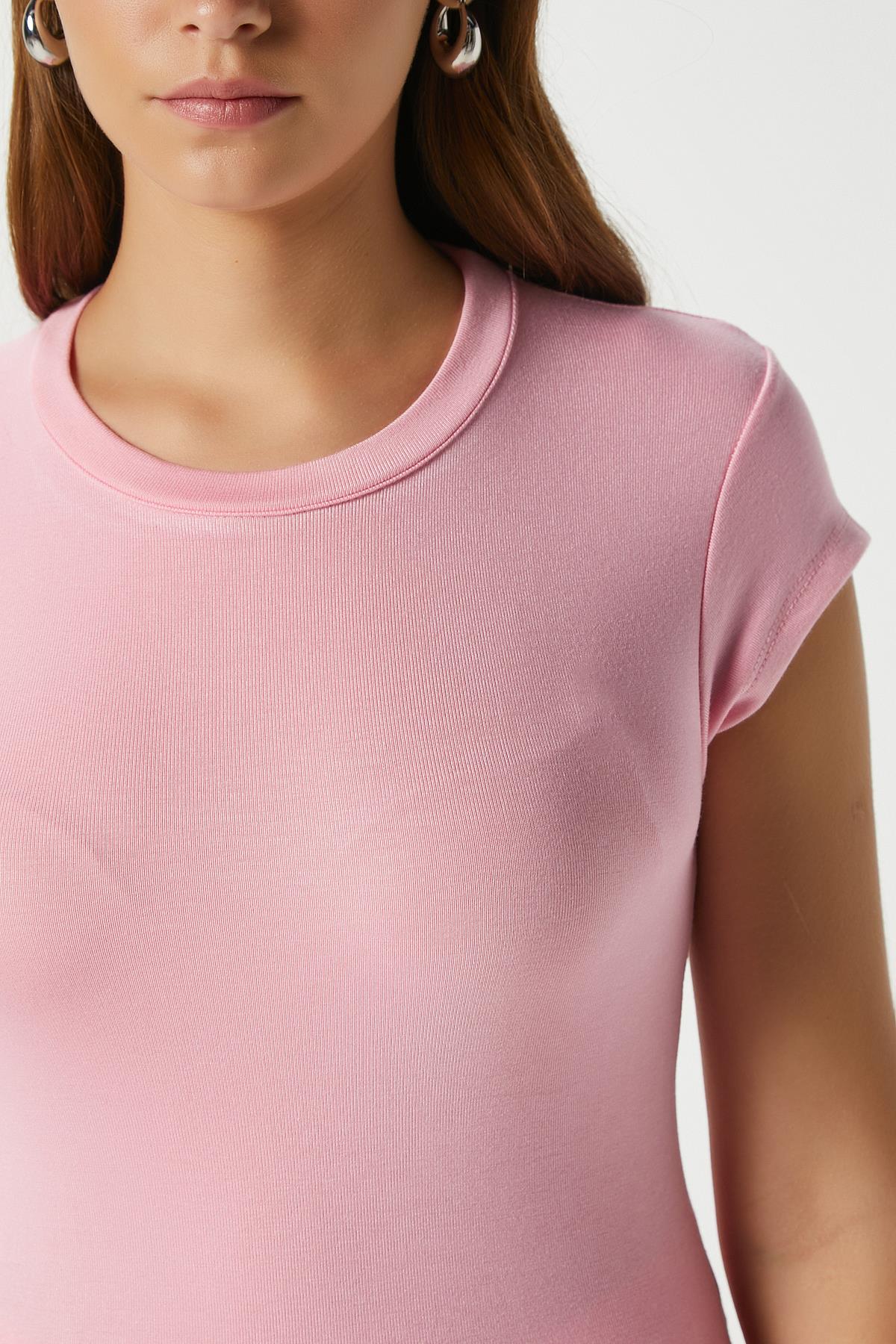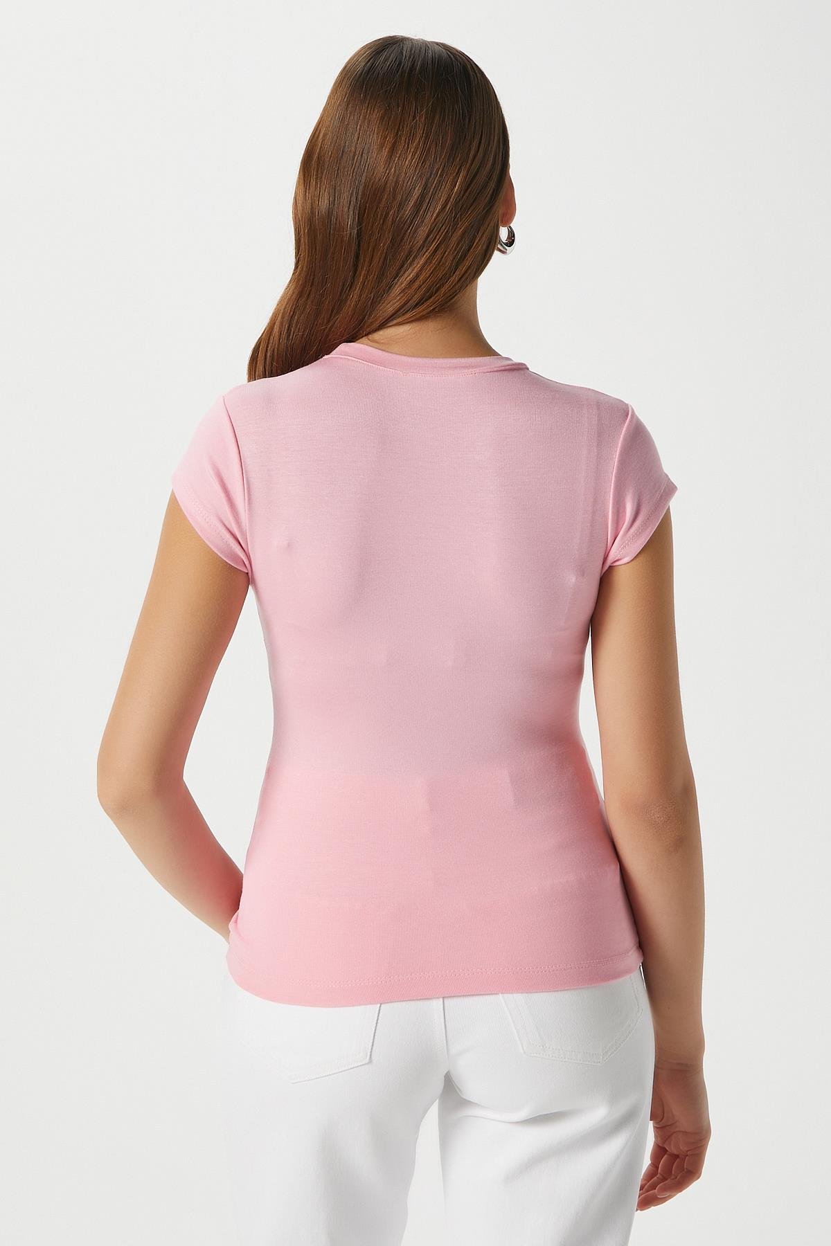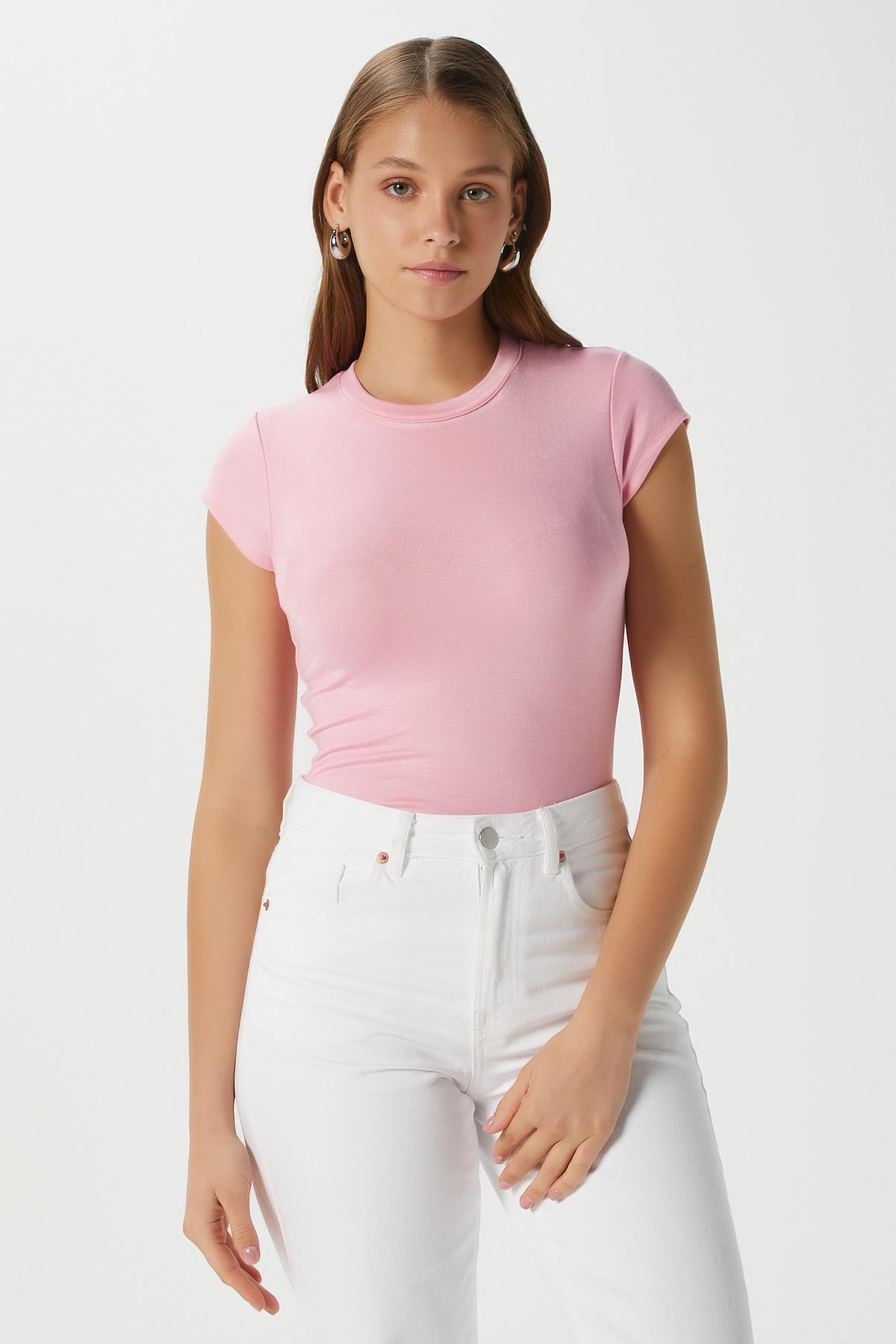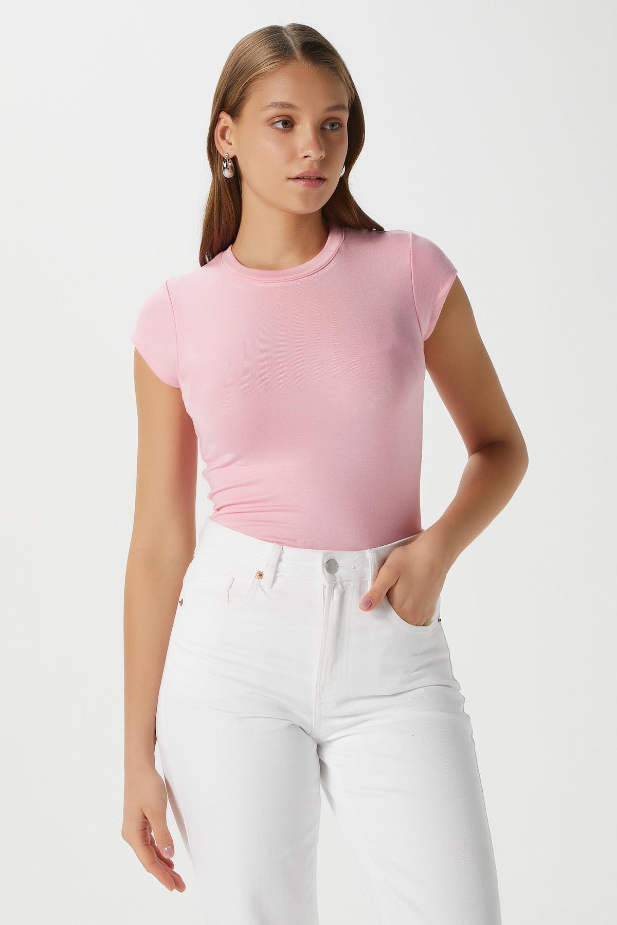 Kadın İnner Lux Touch Yumuşak Doku Bisiklet Yaka Kısa Kol Pembe Bluz