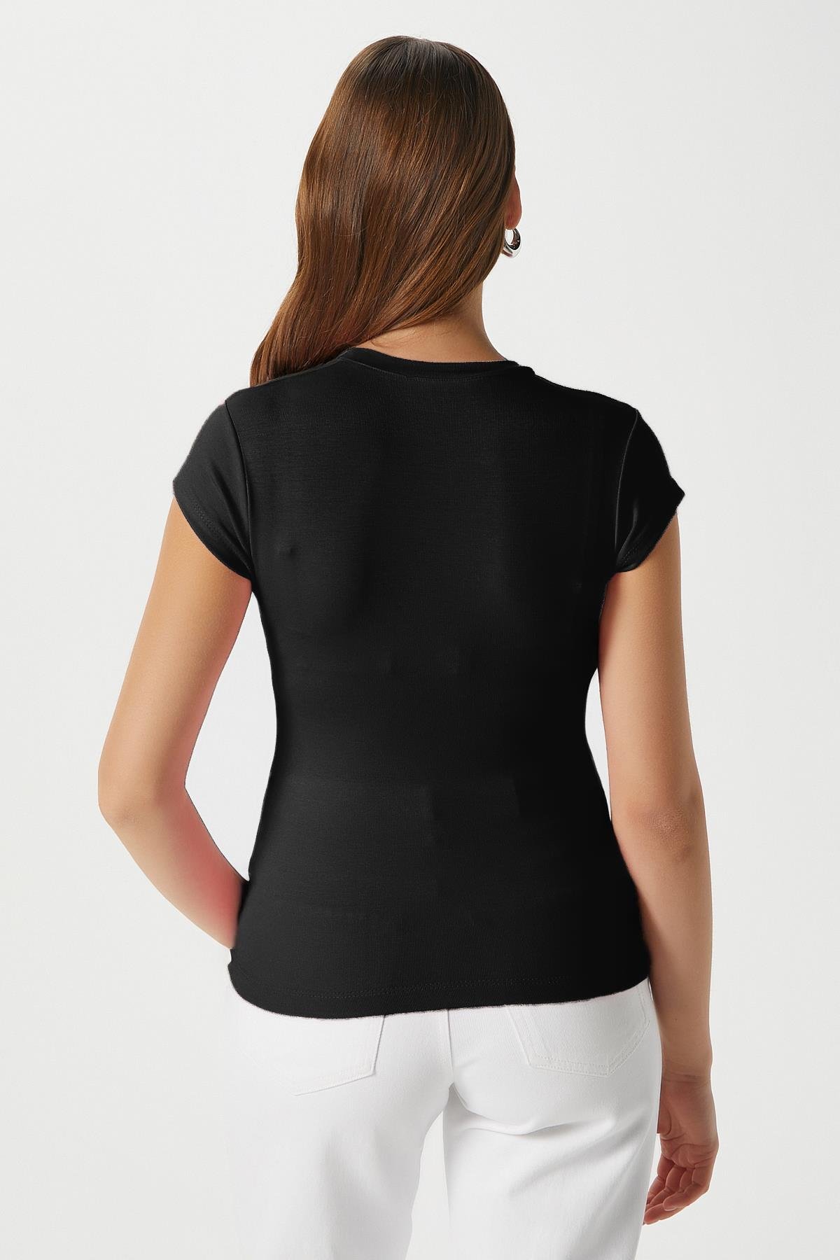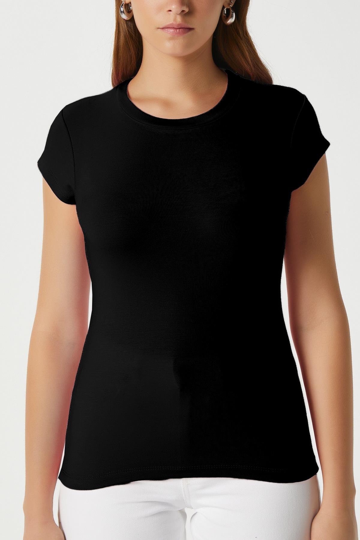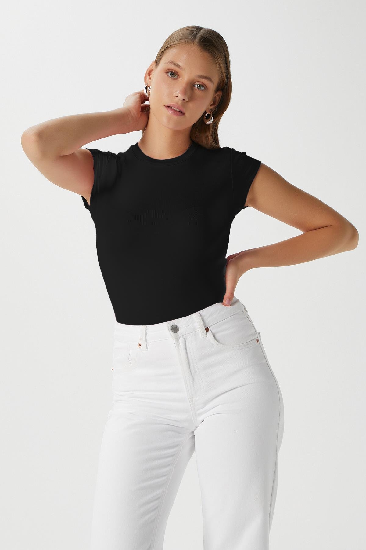 Kadın İnner Lux Touch Yumuşak Doku Bisiklet Yaka Kısa Kol Siyah Bluz