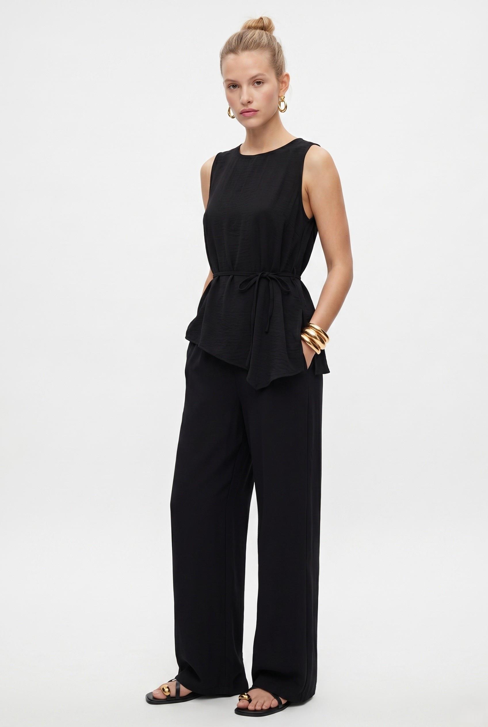 Kadın Joe Asimetrik Bluz Pantolon Dokuma Siyah Alt Üst Takım