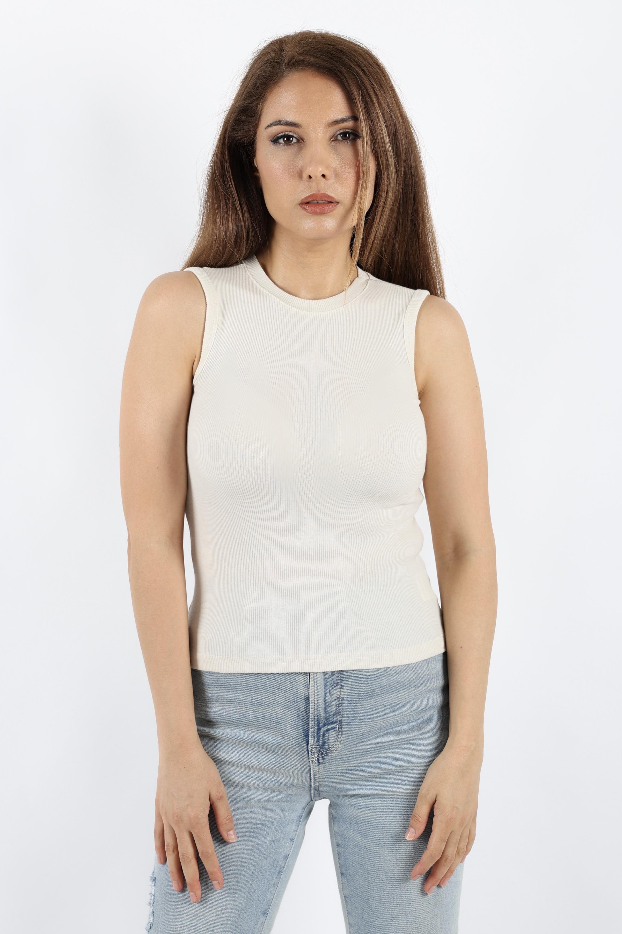 Kadın Kapalı Yaka 3’lü Pamuk Siyah Beyaz Krem Düz Kol Fitilli Atlet