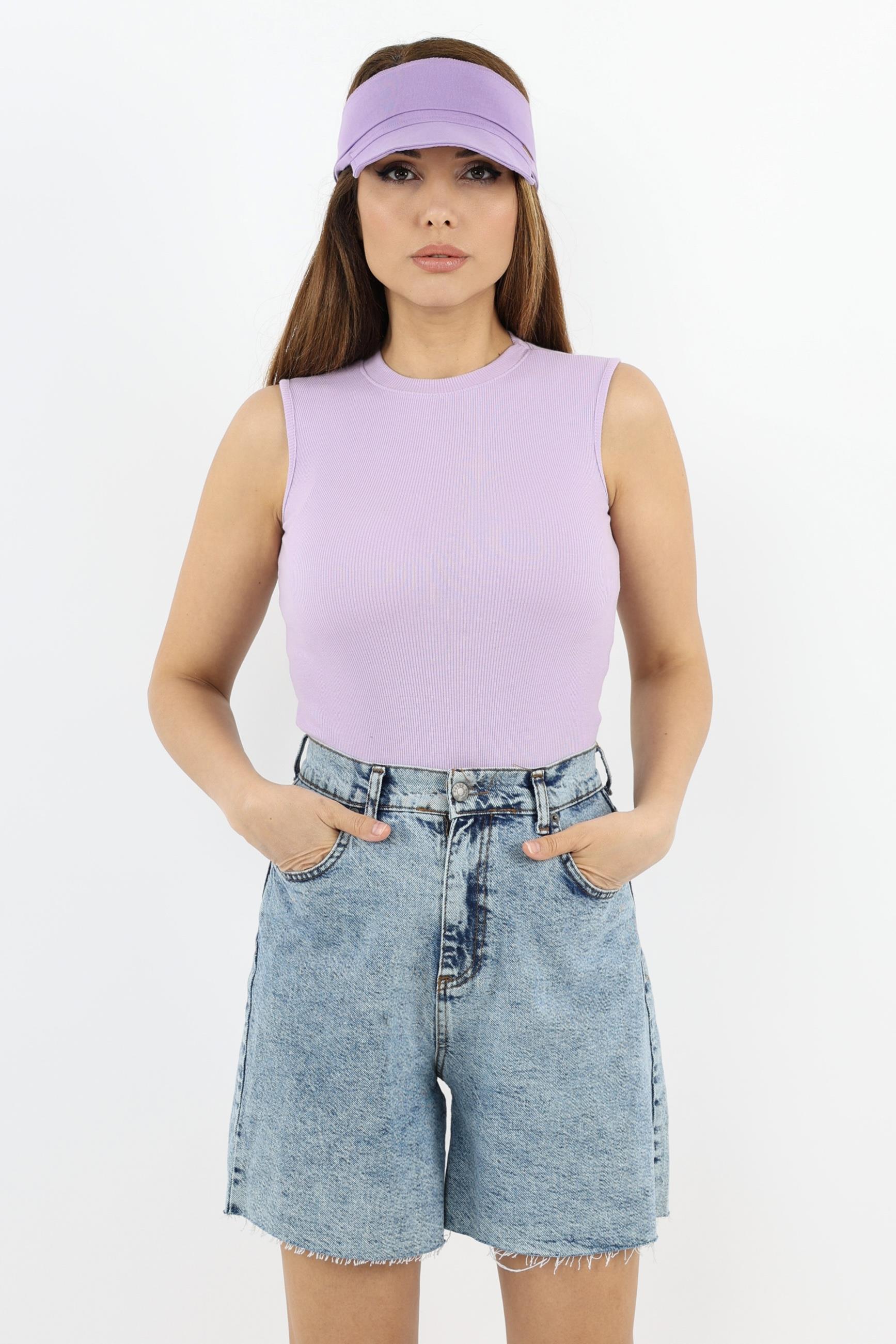 Kadın Kapalı Yaka 4’lü Pamuk Lila, Pembe, Sarı, Çağla Yeşili Düz Kol Fitilli Atlet