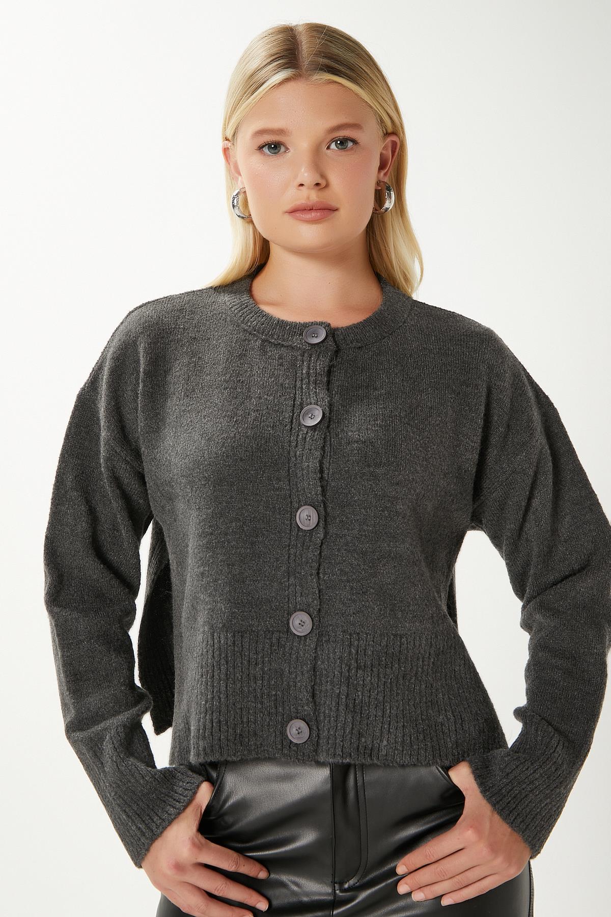 Kadın Keep Yan Yırtmaçlı Yumuşak Dokulu Antrasit Basic Triko Hırka,