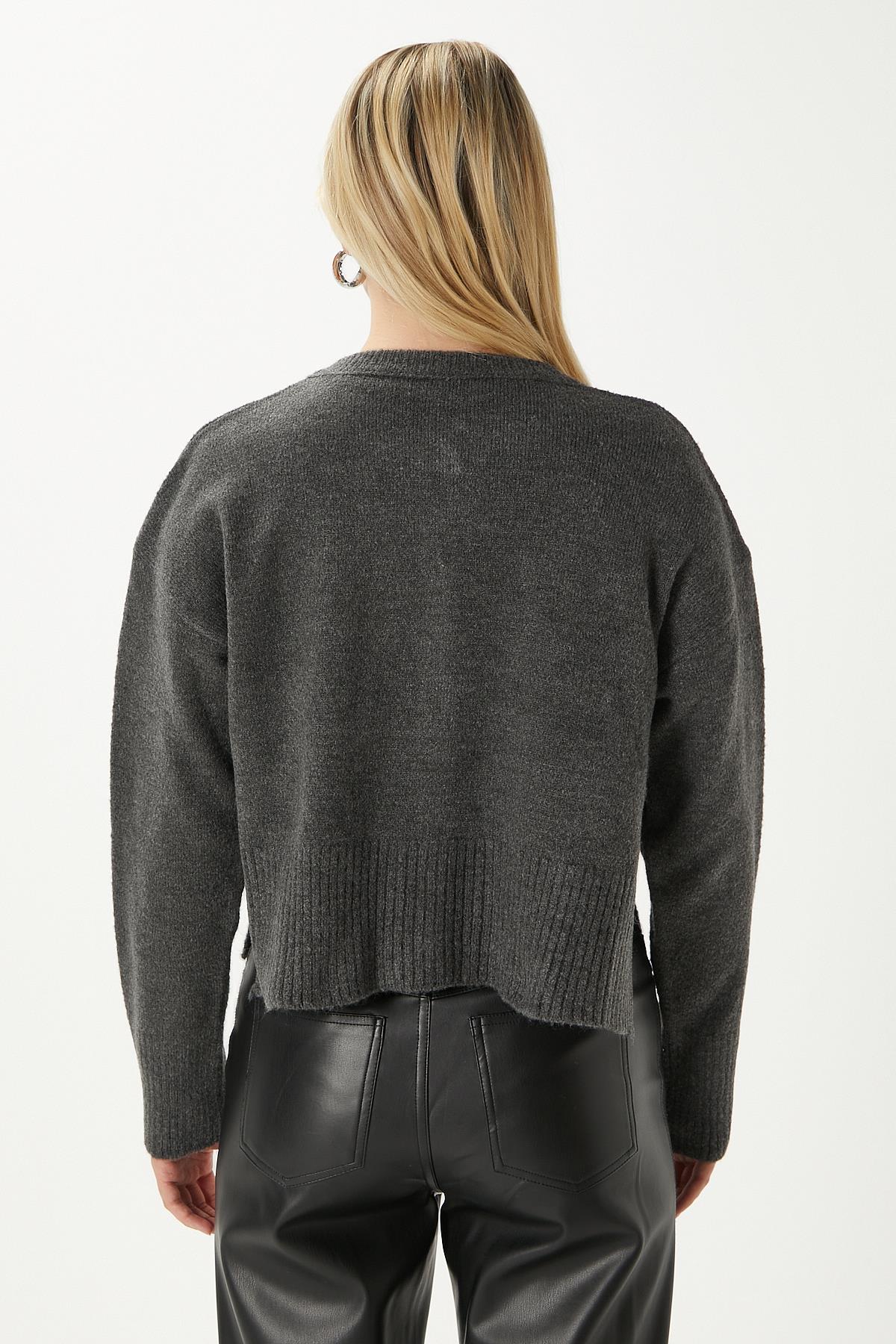 Kadın Keep Yan Yırtmaçlı Yumuşak Dokulu Antrasit Basic Triko Hırka 70145