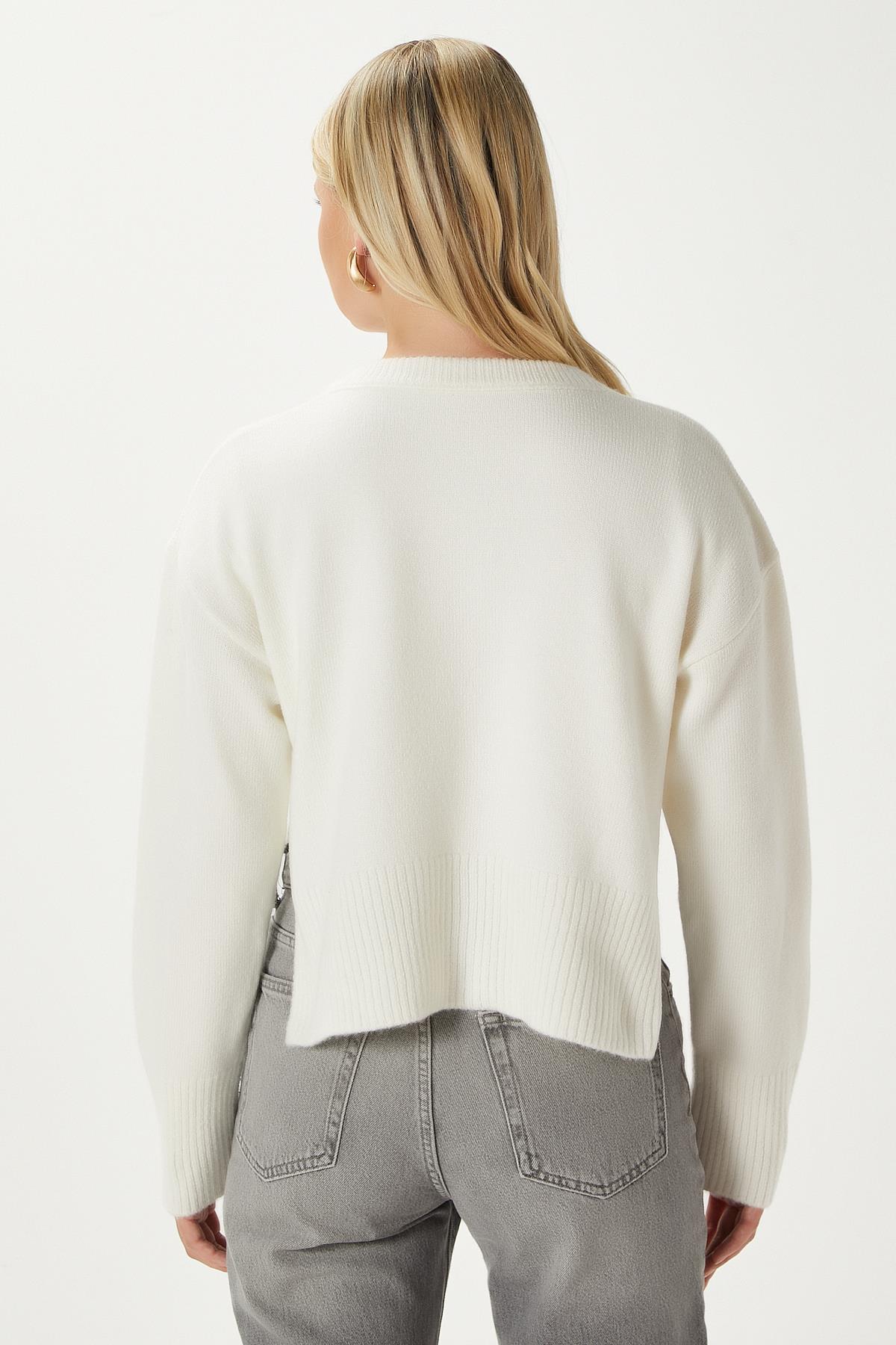 Kadın Keep Yan Yırtmaçlı Yumuşak Dokulu Ekru Basic Triko Hırka,