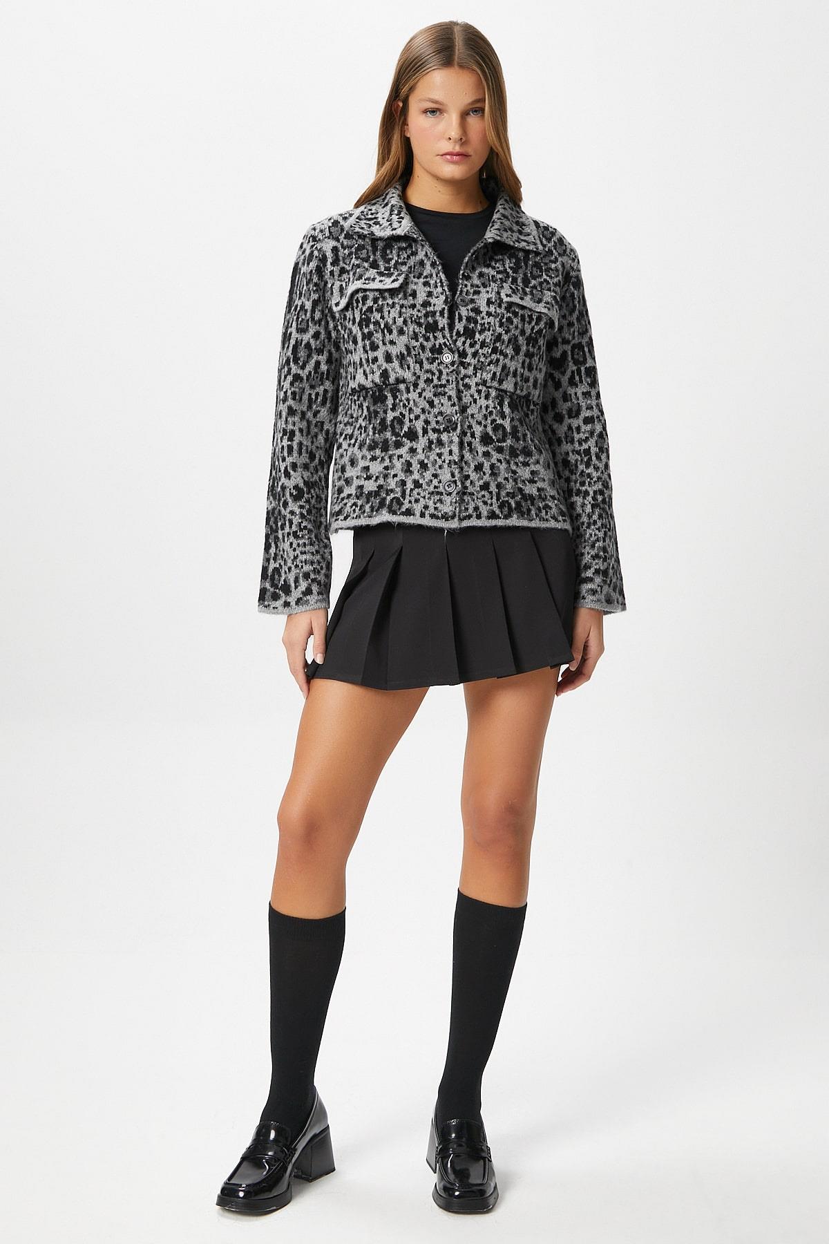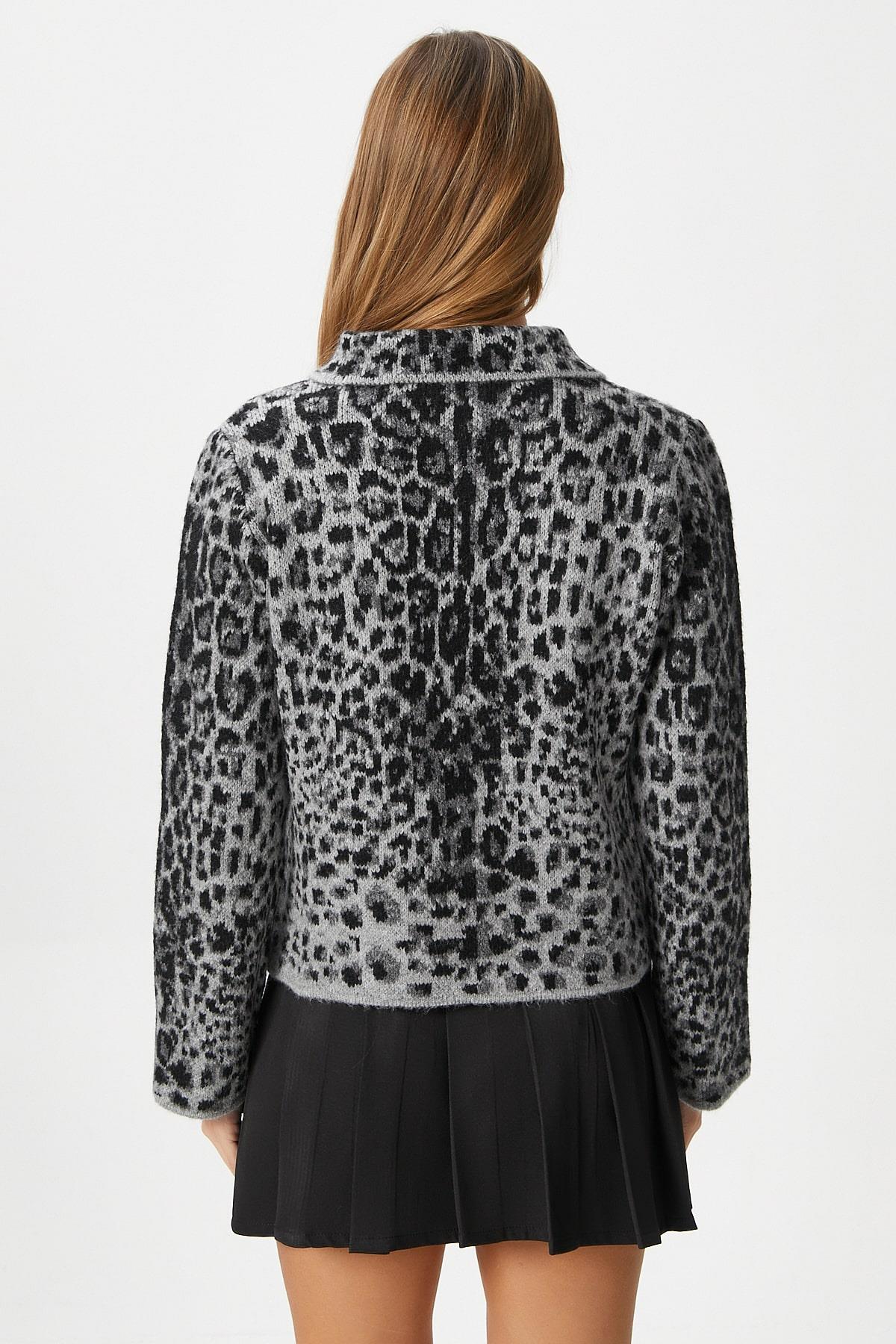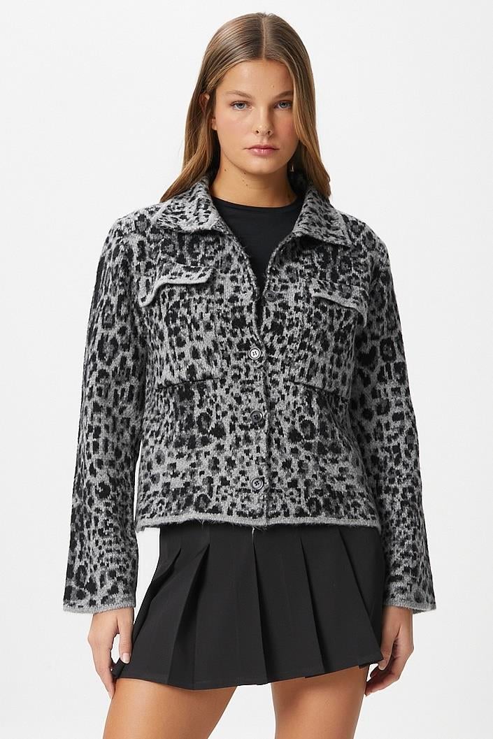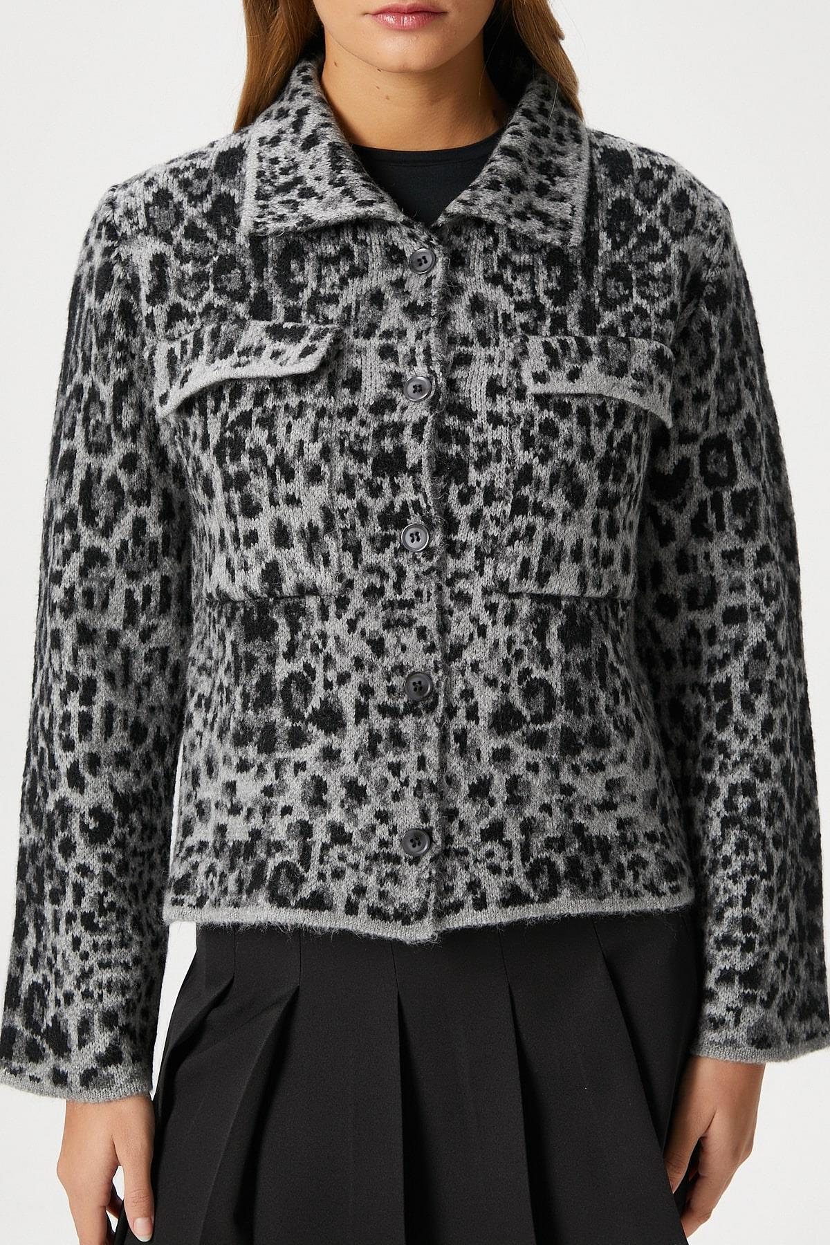 Kadın Laura Yumuşak Doku Gri Polo Yaka Cepli Triko Ceket Hırka