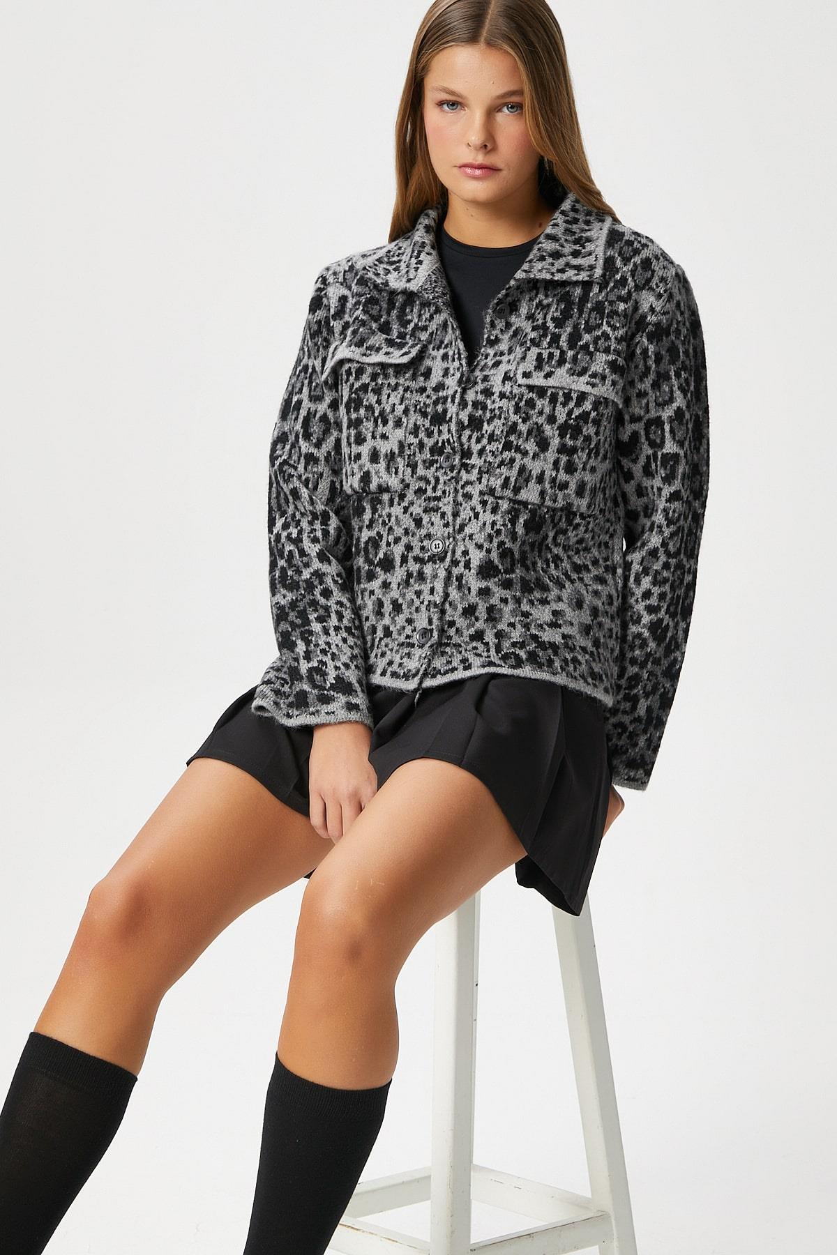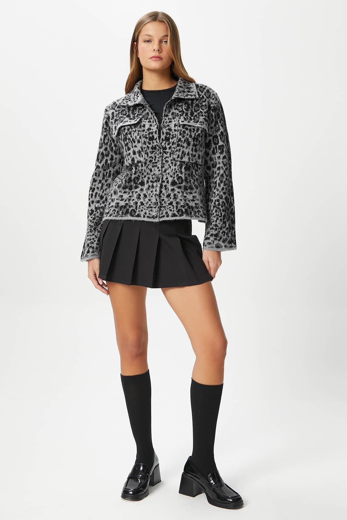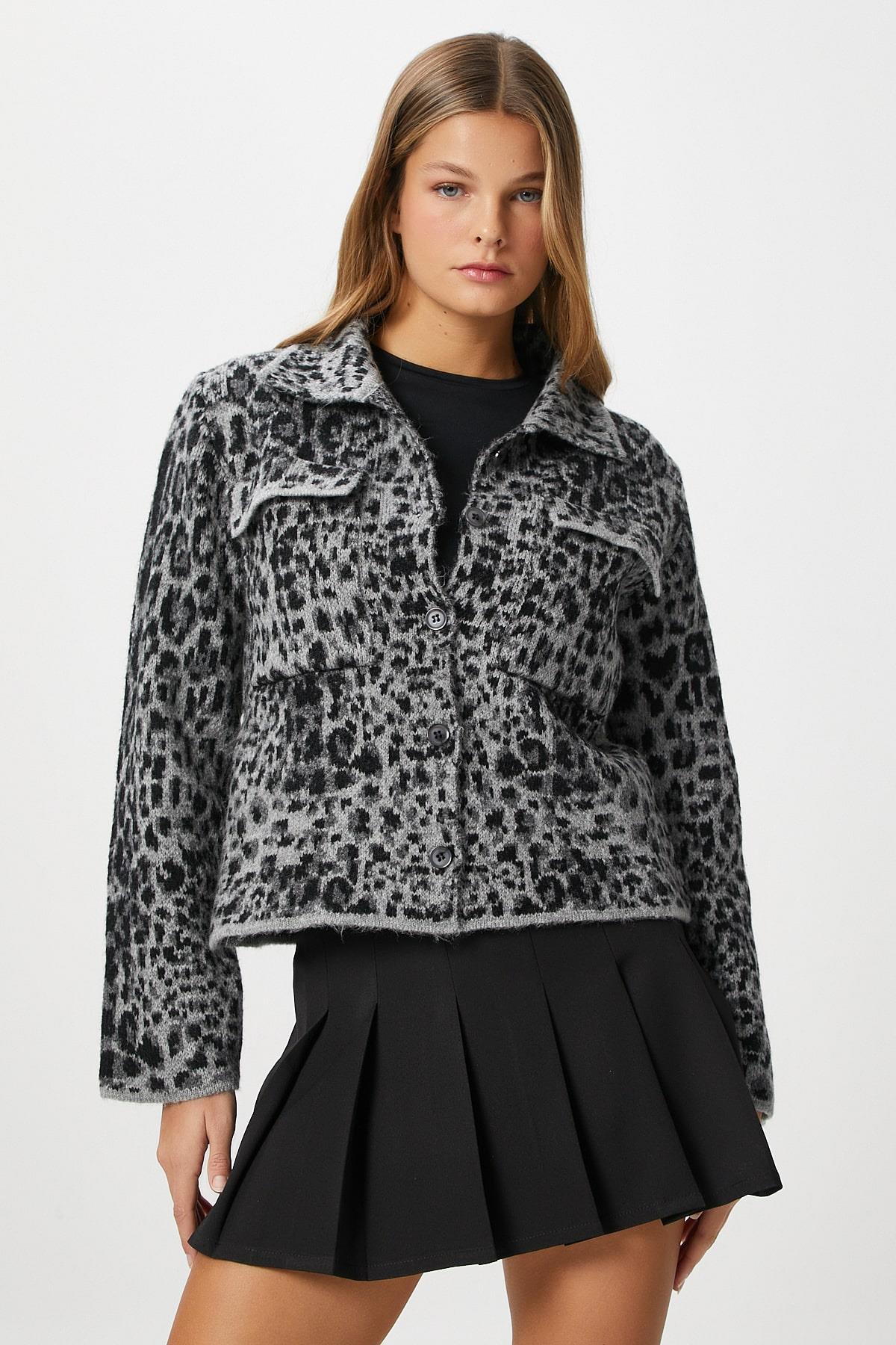 Kadın Laura Yumuşak Doku Gri Polo Yaka Cepli Triko Ceket Hırka