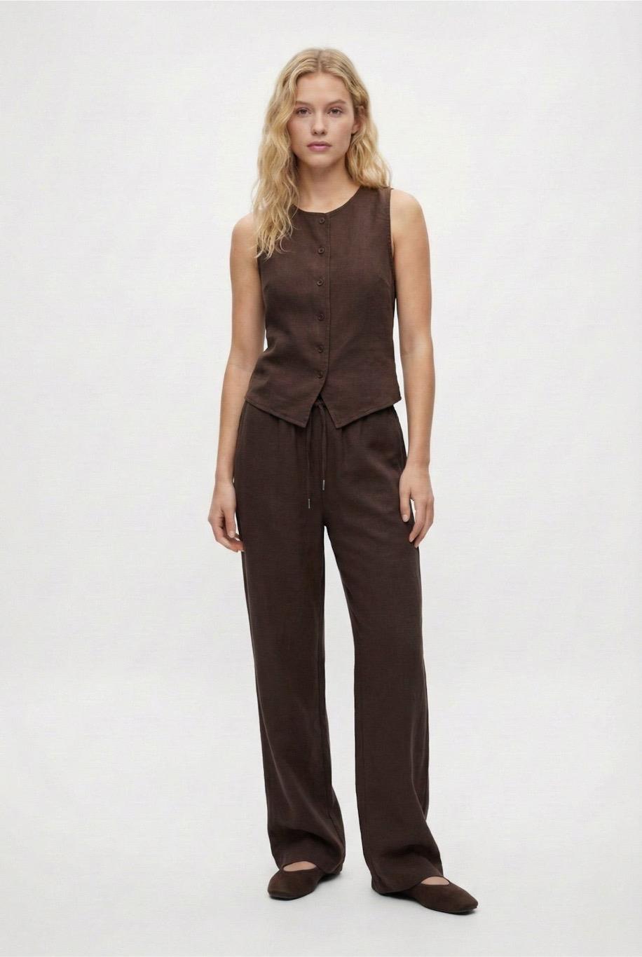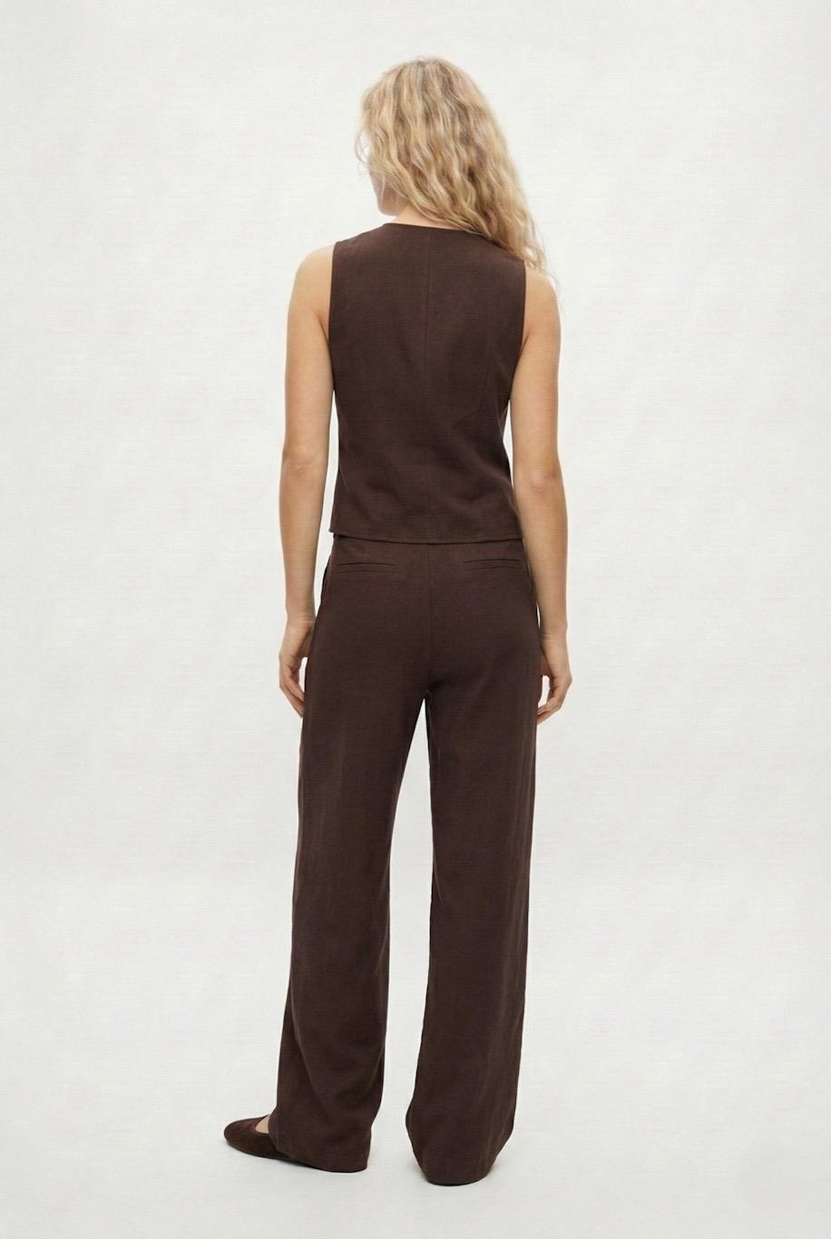 Kadın Leya Premium Dokuma Yelek Pantolon Kahverengi Alt Üst Takım