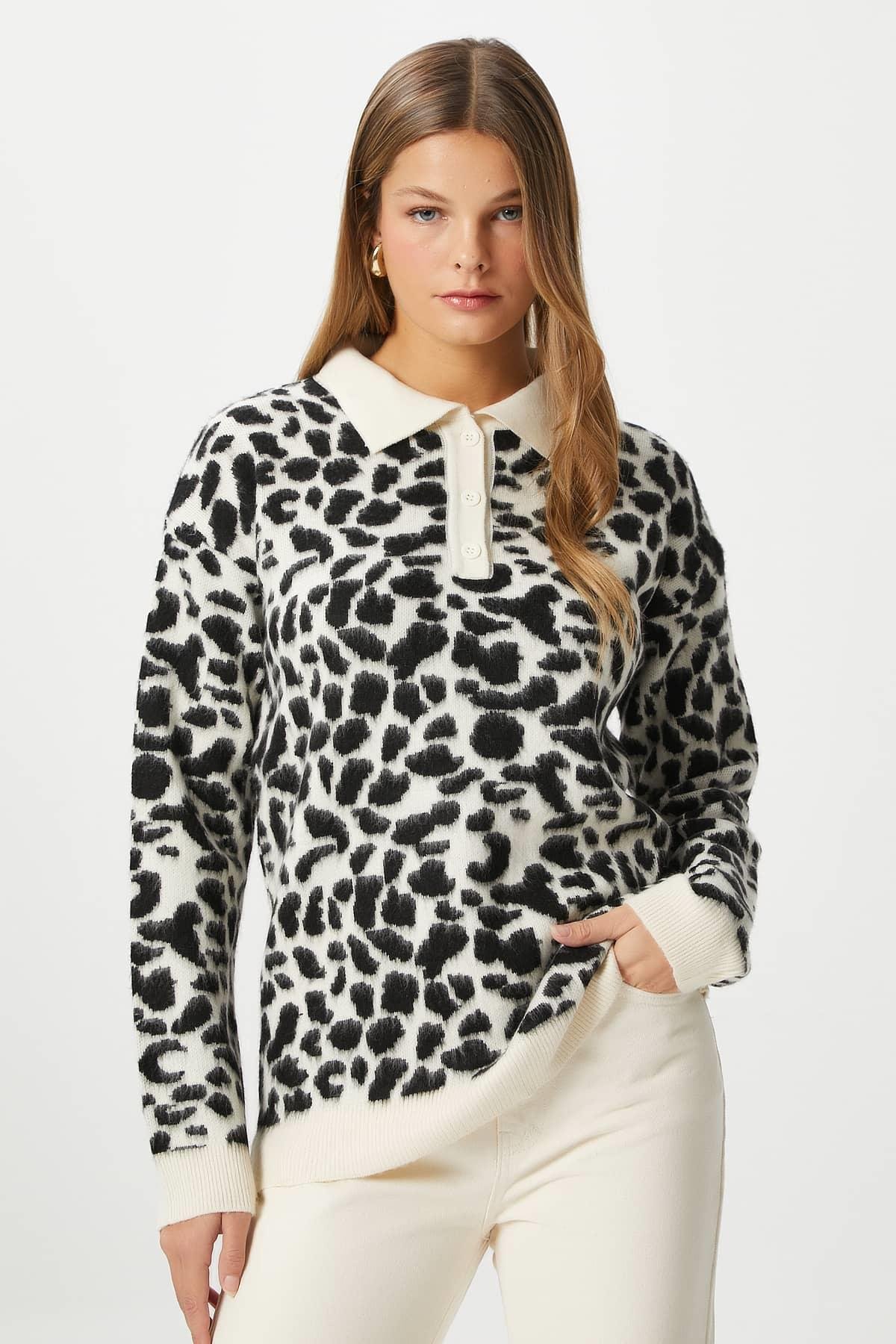 Kadın Luca Polo Yaka Şardonlu Triko Kazak
