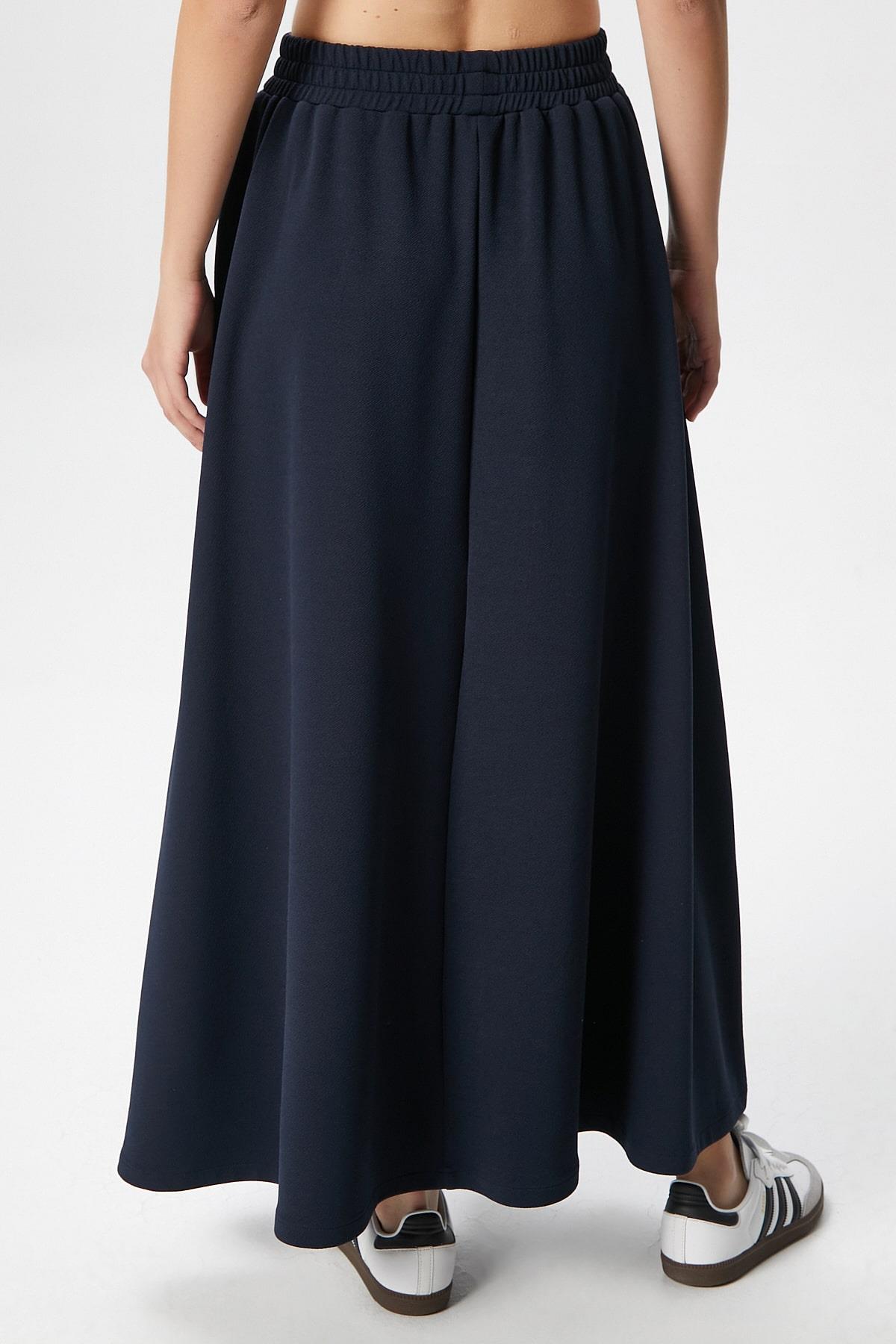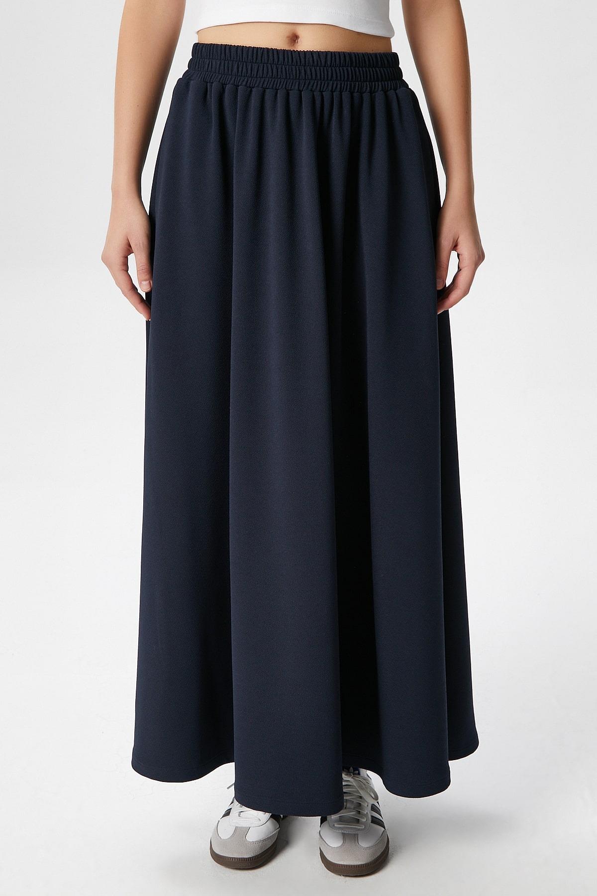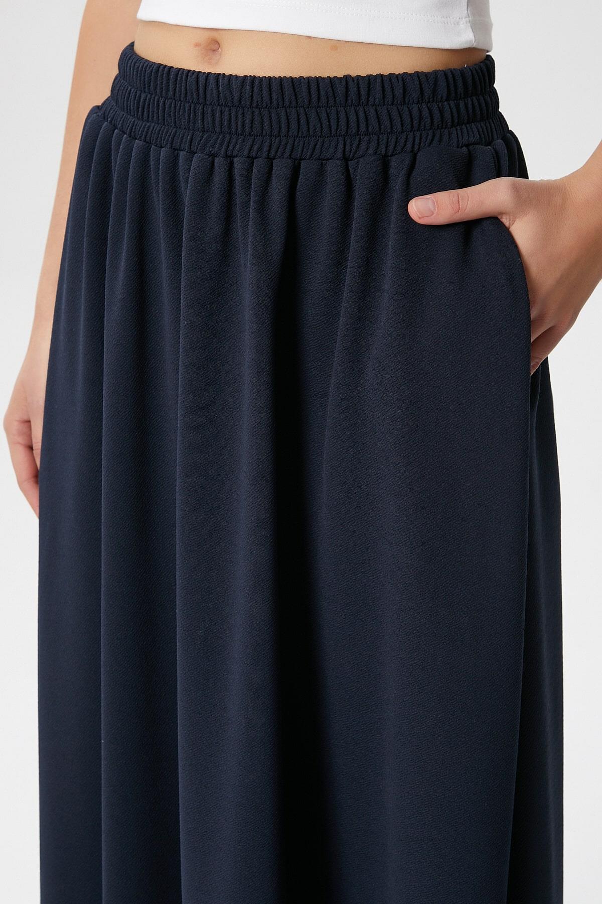 Kadın Luna Bel Lastikli Cepli Lacivert Uzun Maxi Boy Etek,
