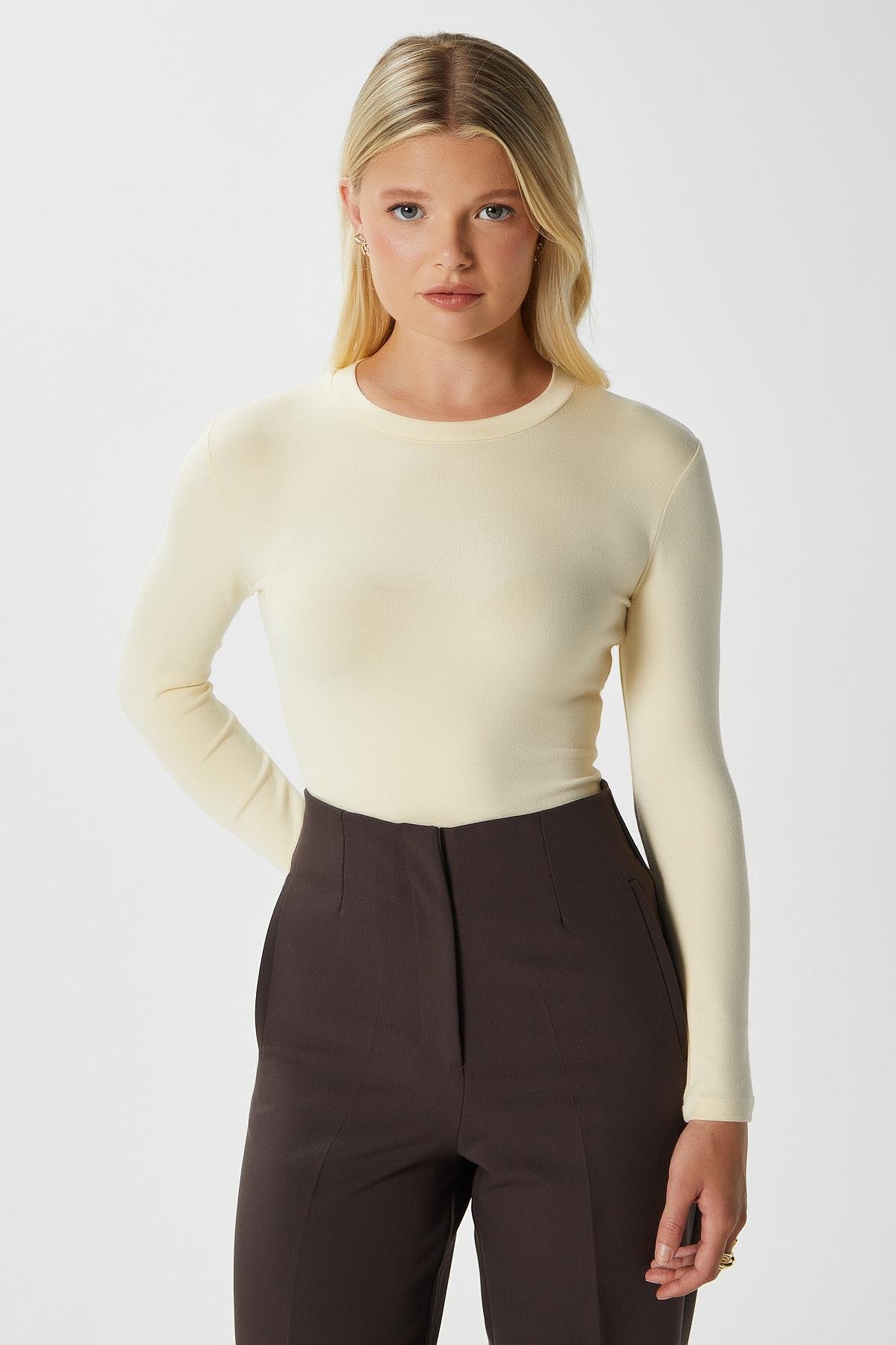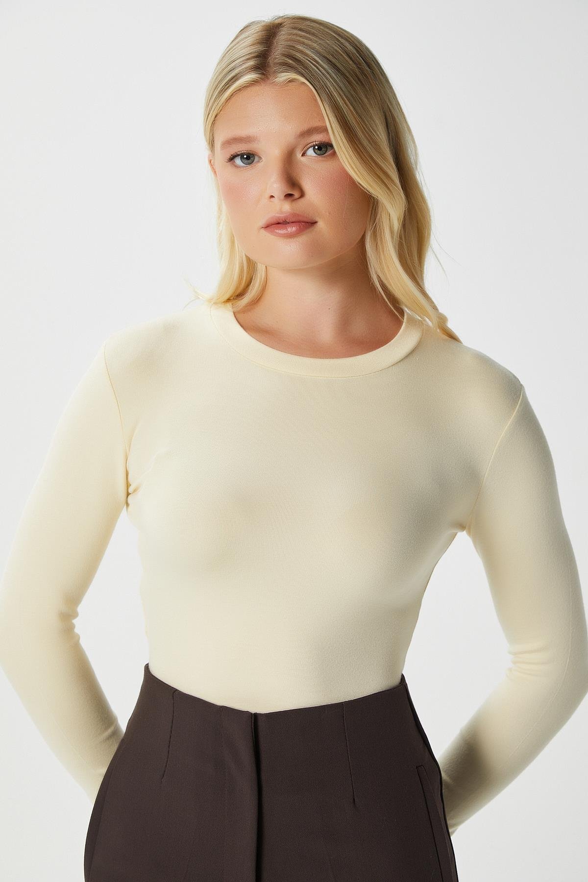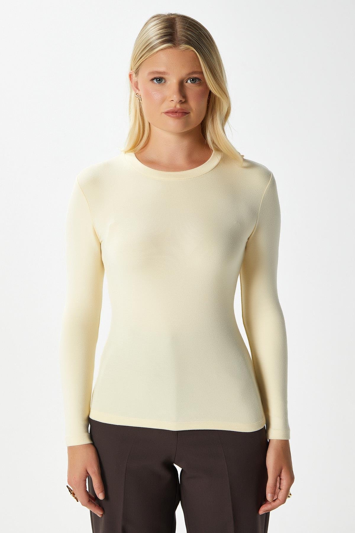 • Kadın Lux Touch Yumuşak Doku Tereyağı Sarısı Bluz,