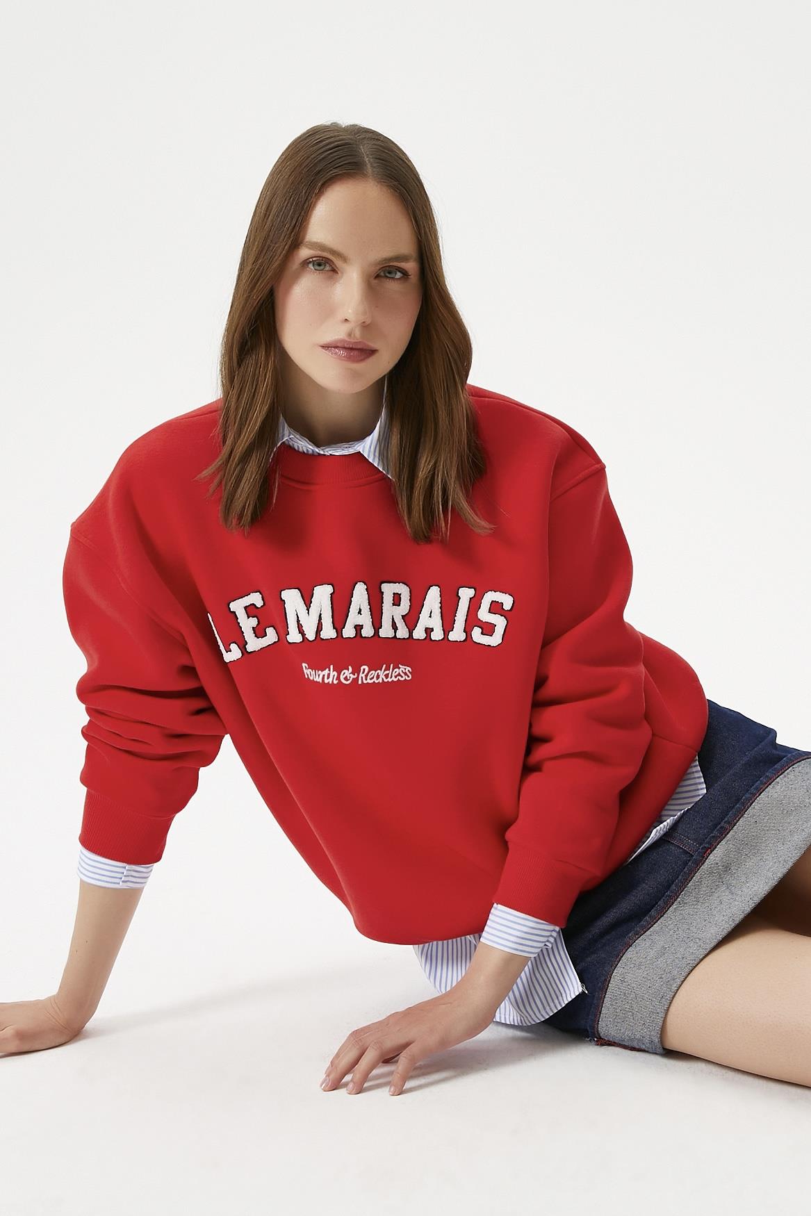 Kadın Marais Kırmızı Nakışlı Oversize Sweatshirt