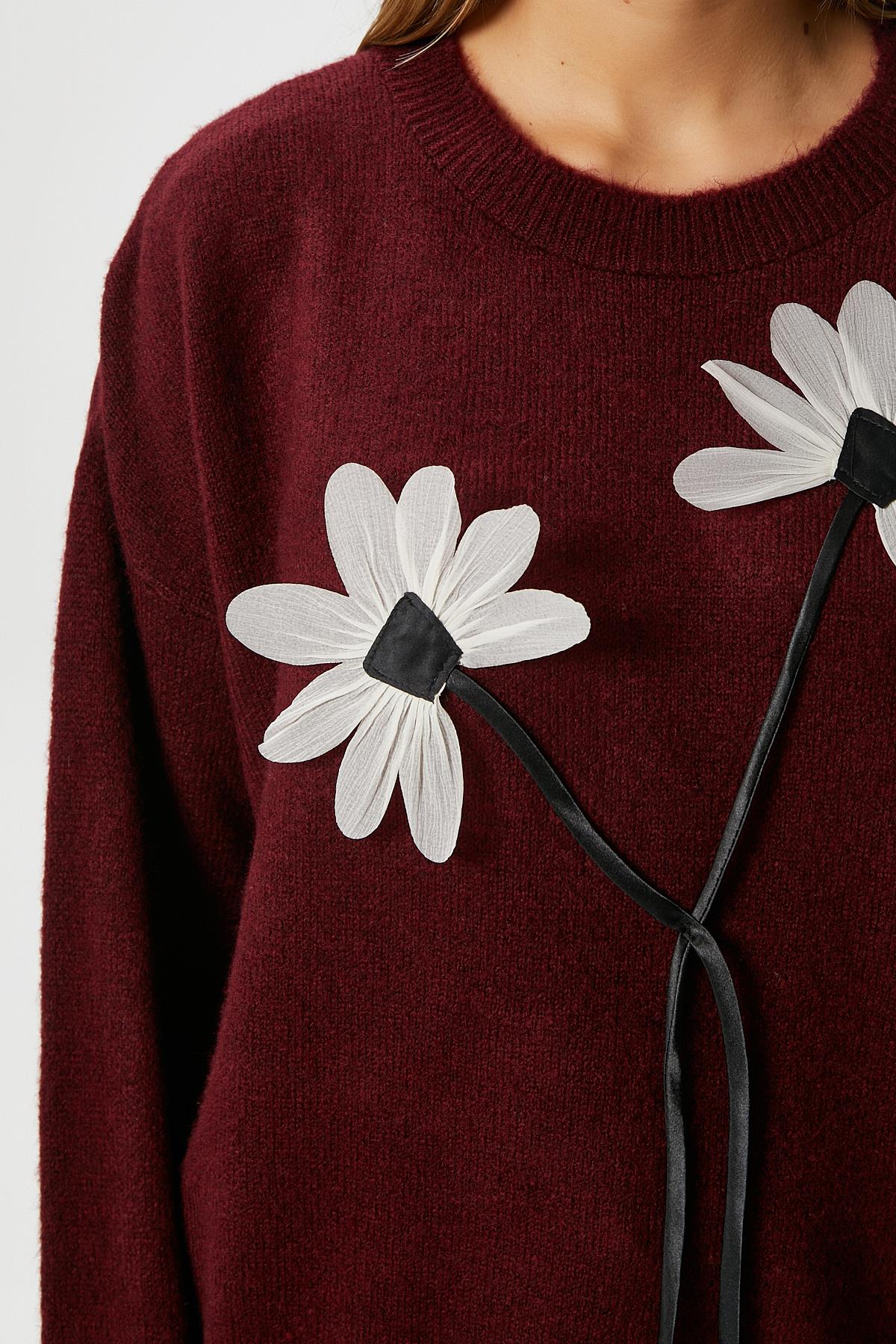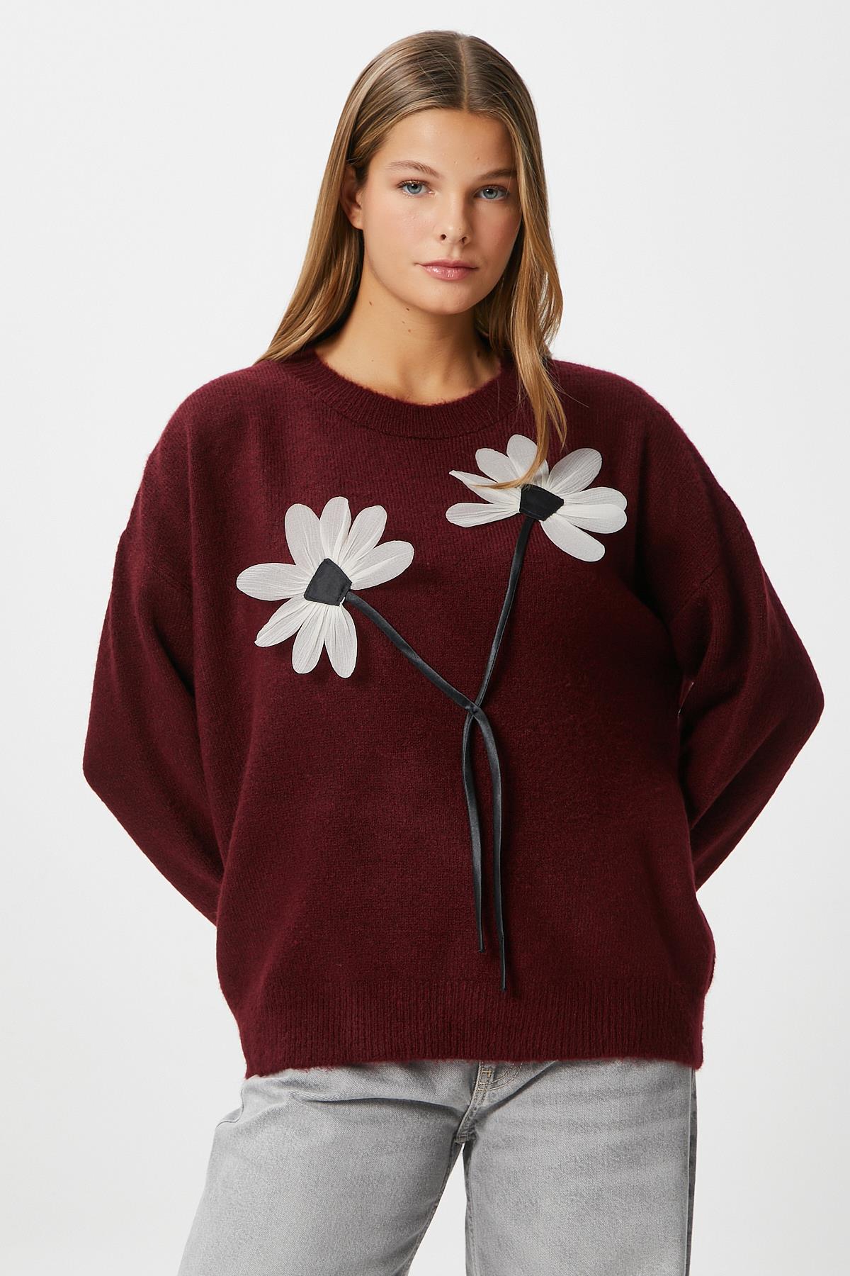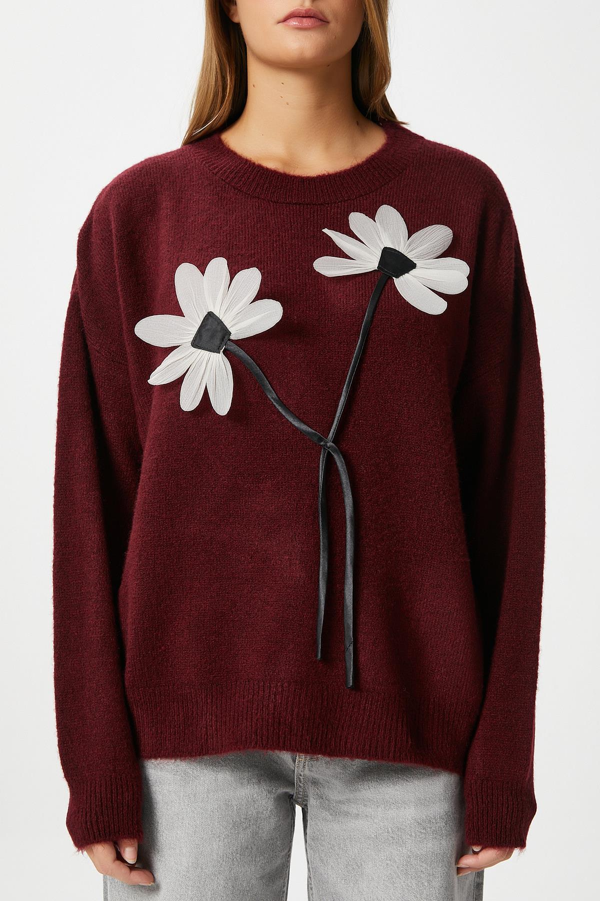 Kadın Miranda Çiçek Detay Bordo Triko KazakModel Boy 176 cm Göğüs 88 , Bel 62, Basen 93 cm