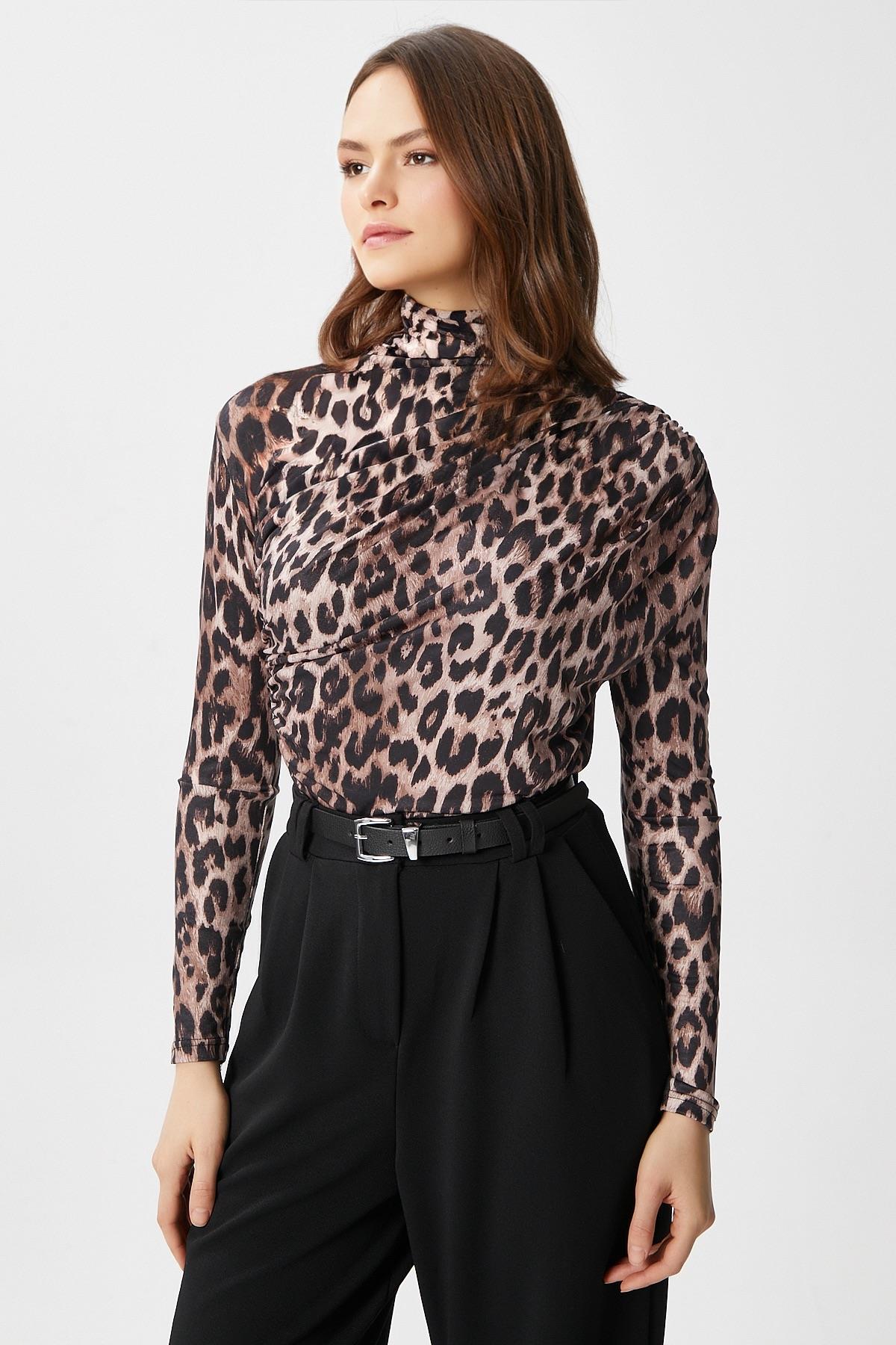Kadın Moon Büzgülü Leopar Sandy Bluz