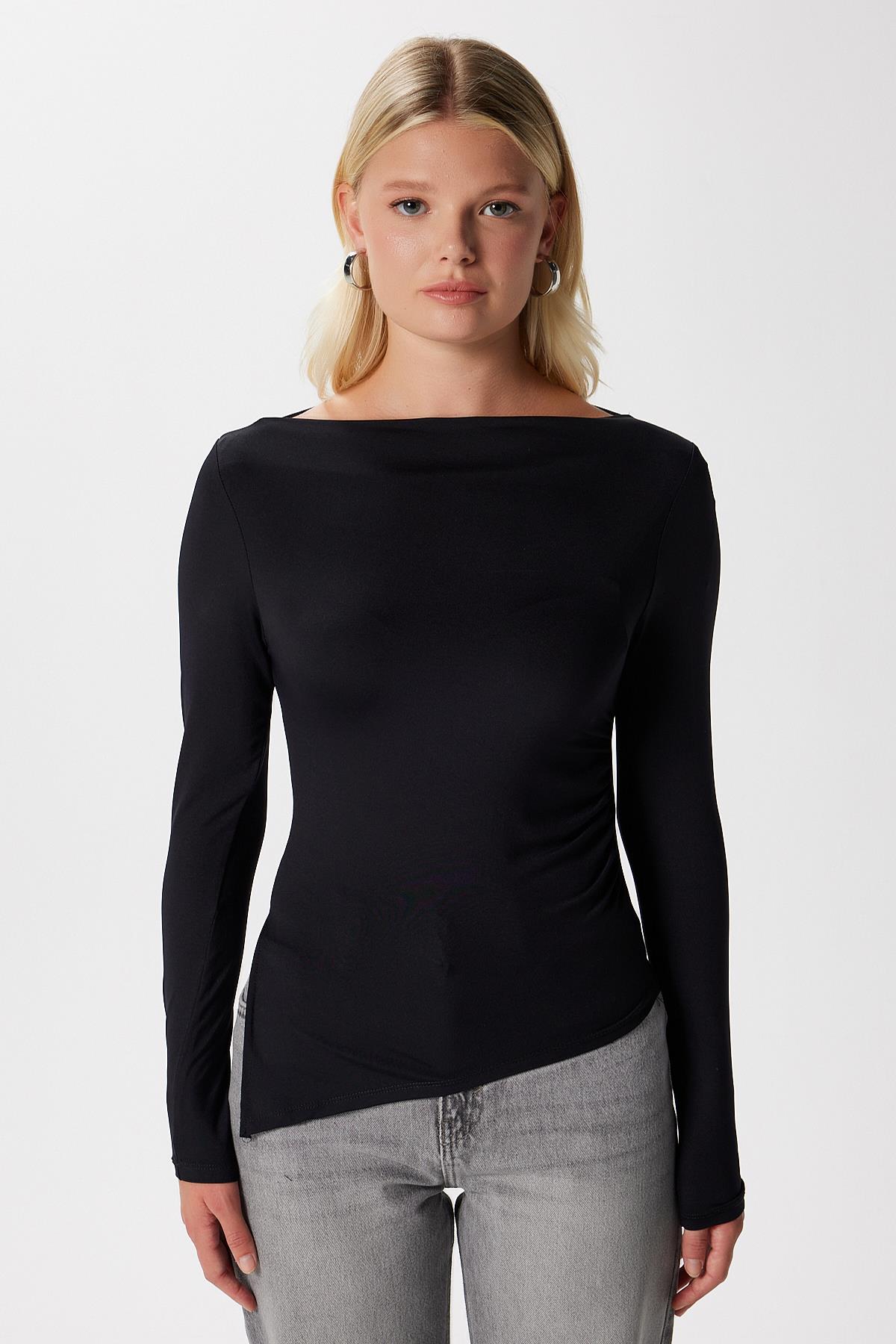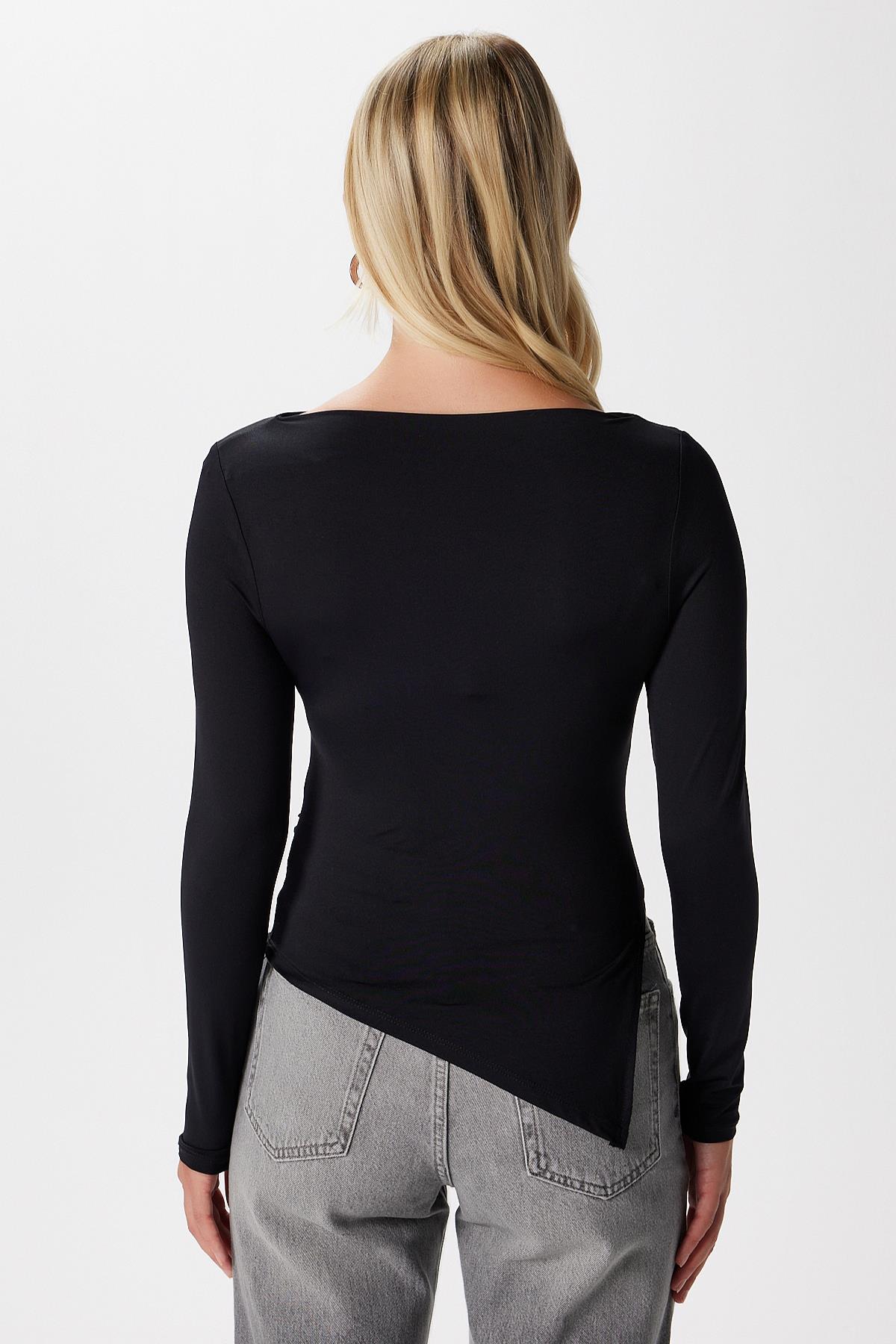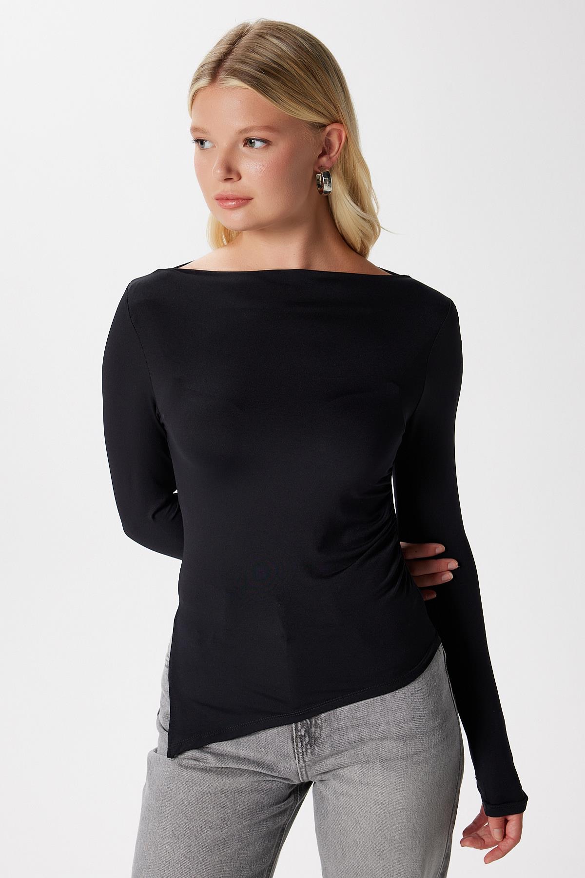 Kadın Most Poliamid Asimetrik Siyah Uzun Kol Bluz