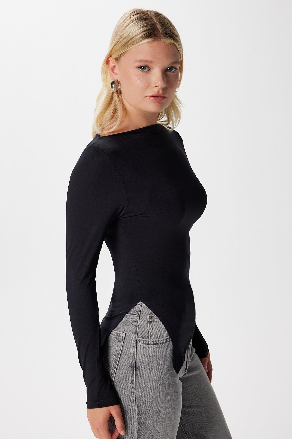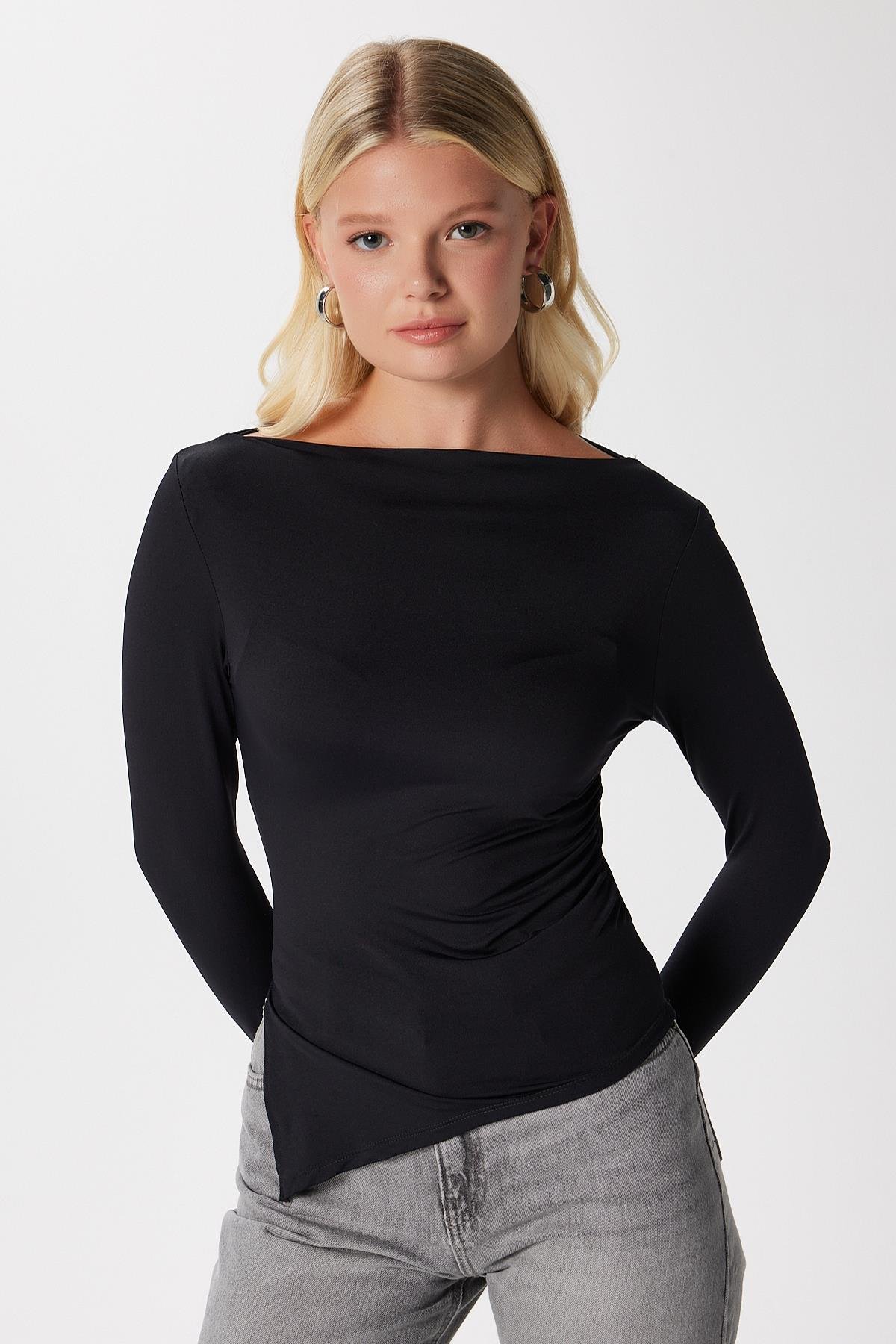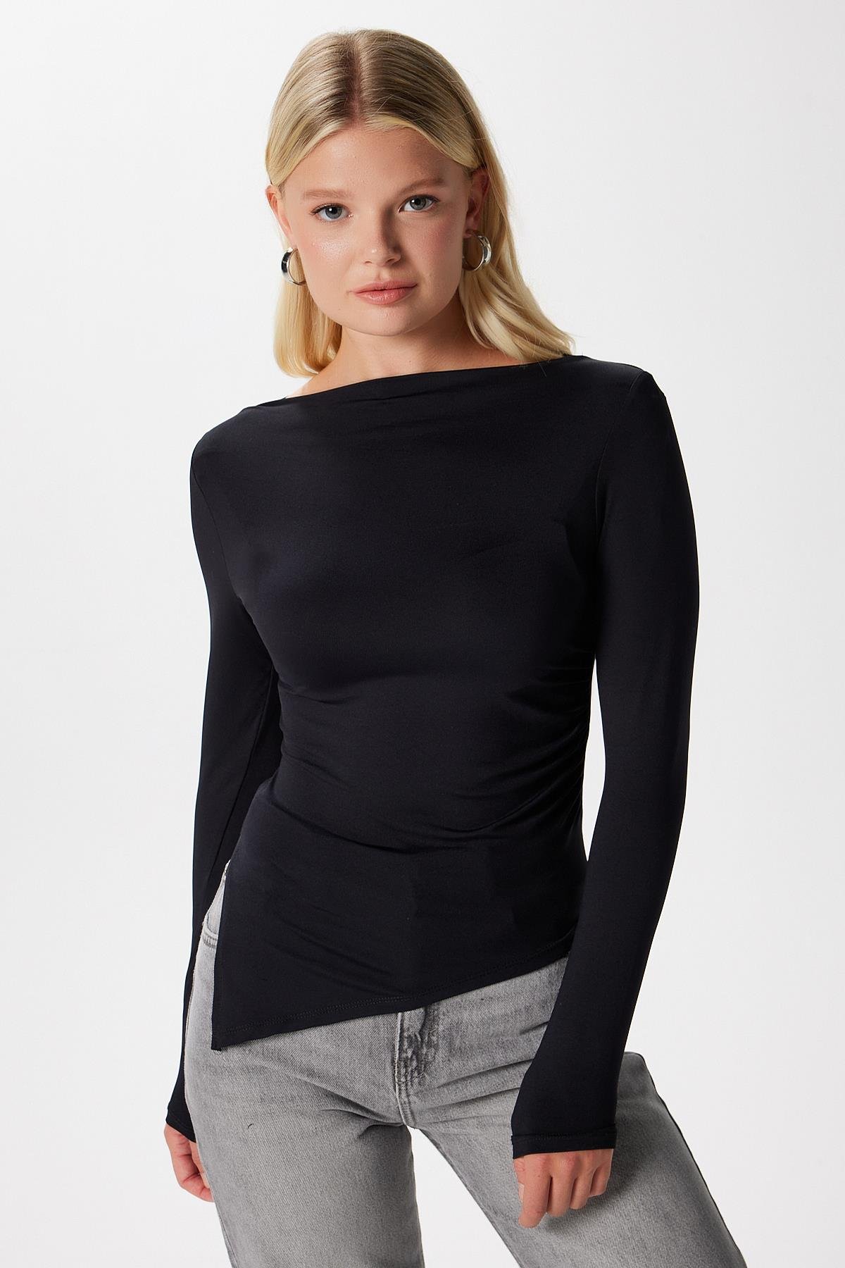 Kadın Most Poliamid Asimetrik Siyah Uzun Kol Bluz