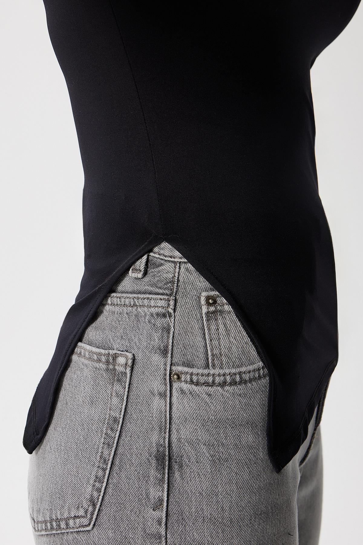 - Modern ve şık tasarımıyla dikkat çeken siyah poliamid bluz, günlük kullanım için idealdir.
